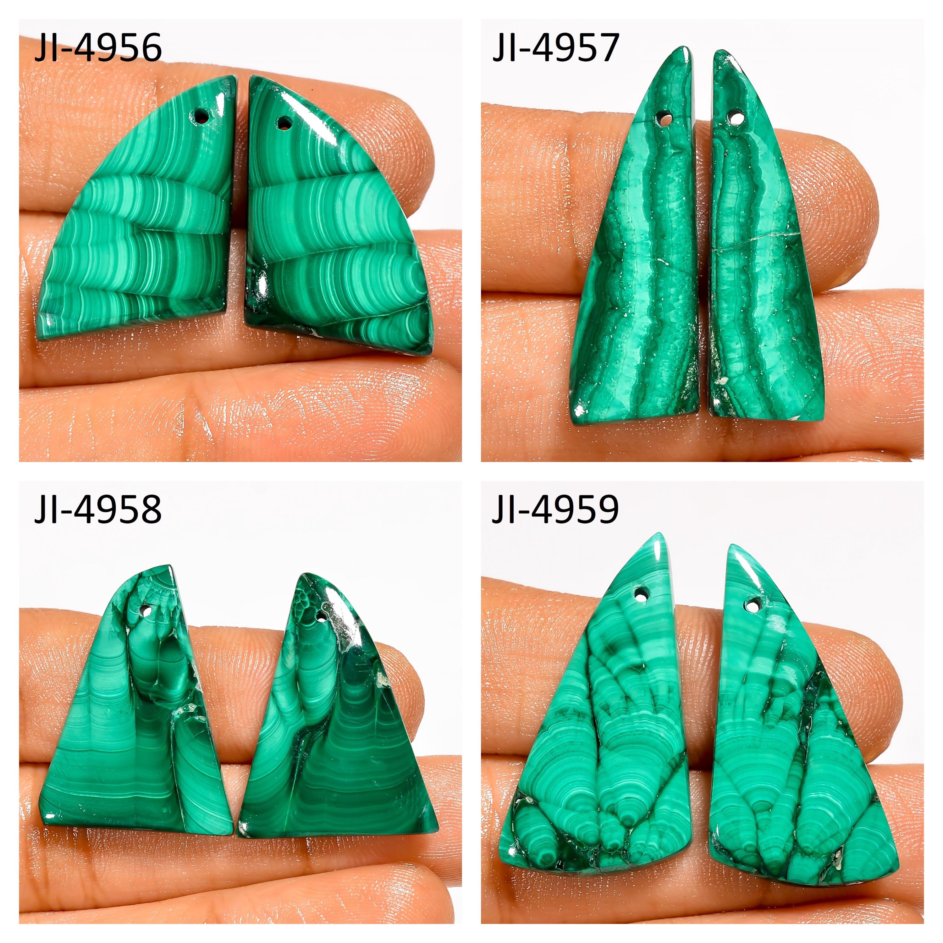 -Malachite fancy shape drilled cabochon matching pairs-this listing is for a set of two cabochons-stones are flat on the back-Malachite is a natural stone, no treatment