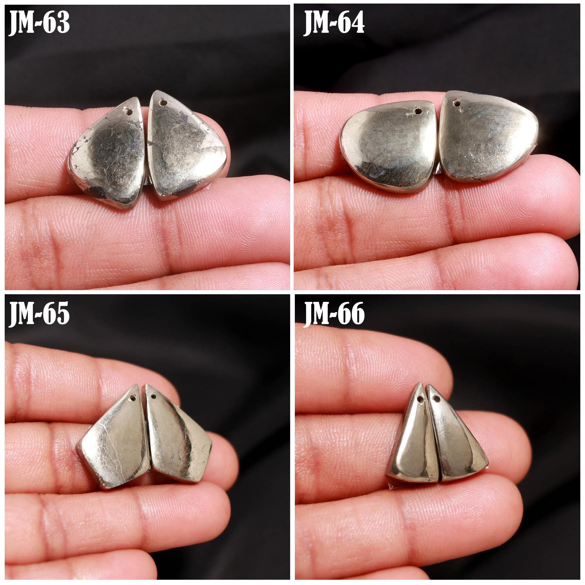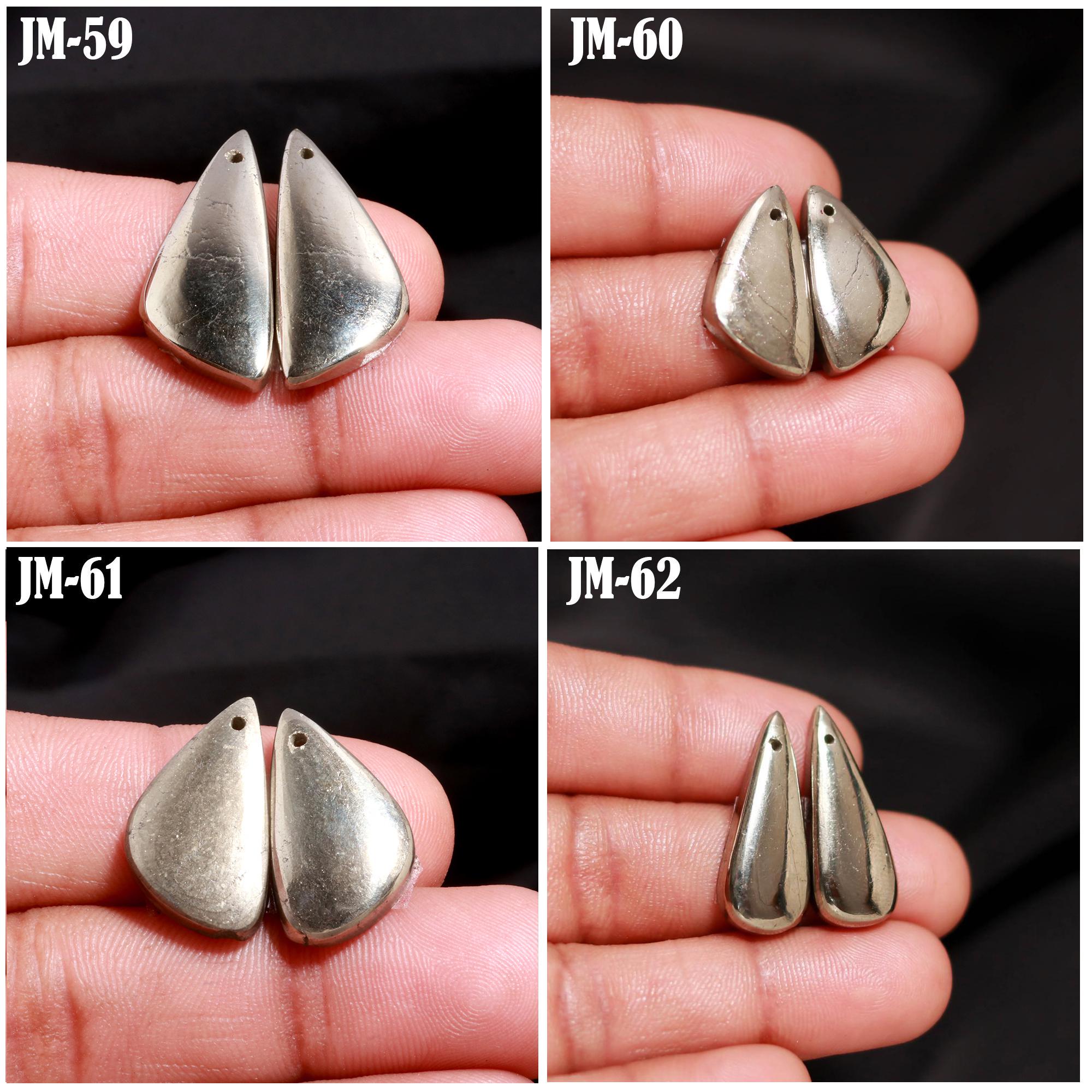 -Pyrite fancy shape drilled cabochon matching pairs-this listing is for a set of two cabochons-stones are flat on the back-Pyrite is a natural stone, no treatment