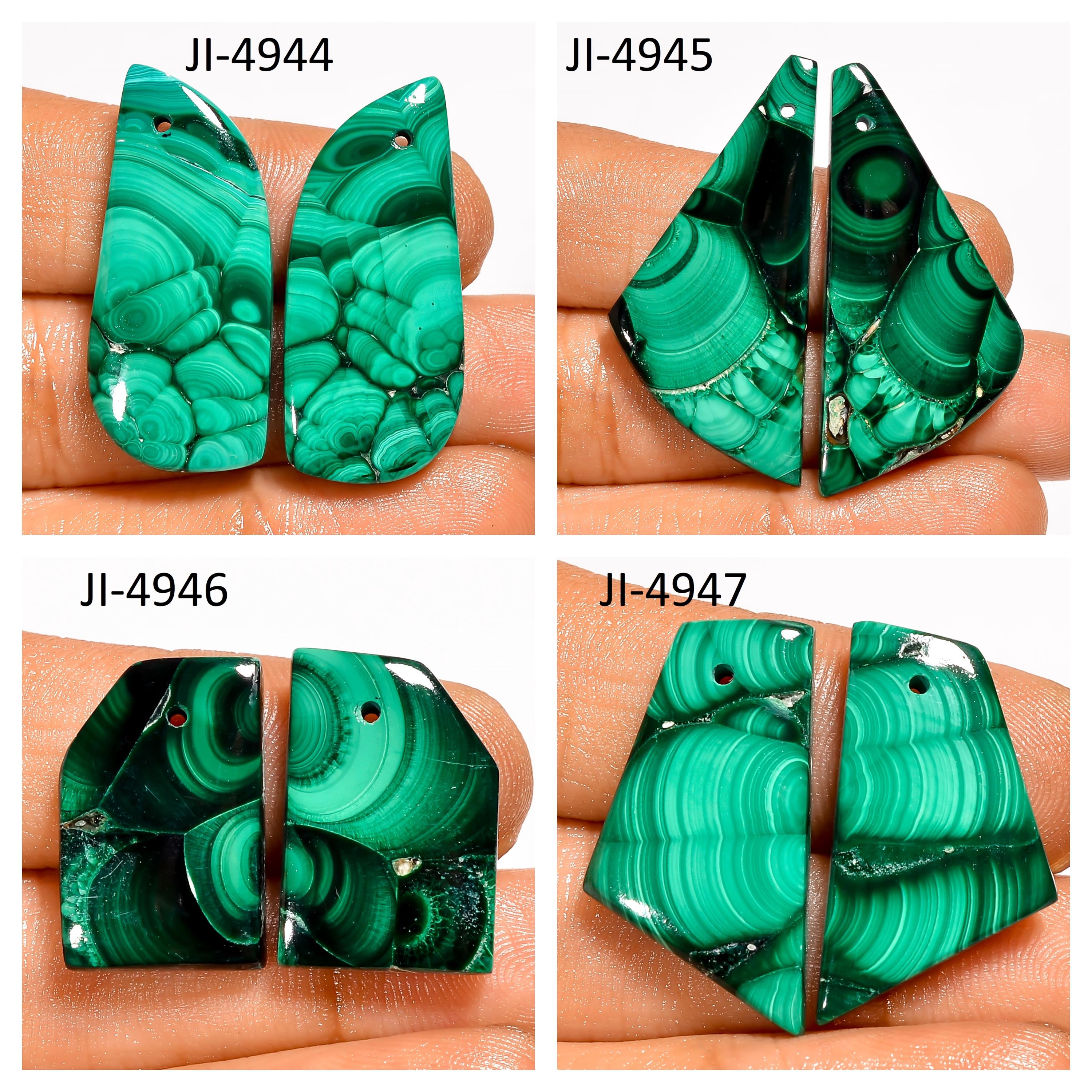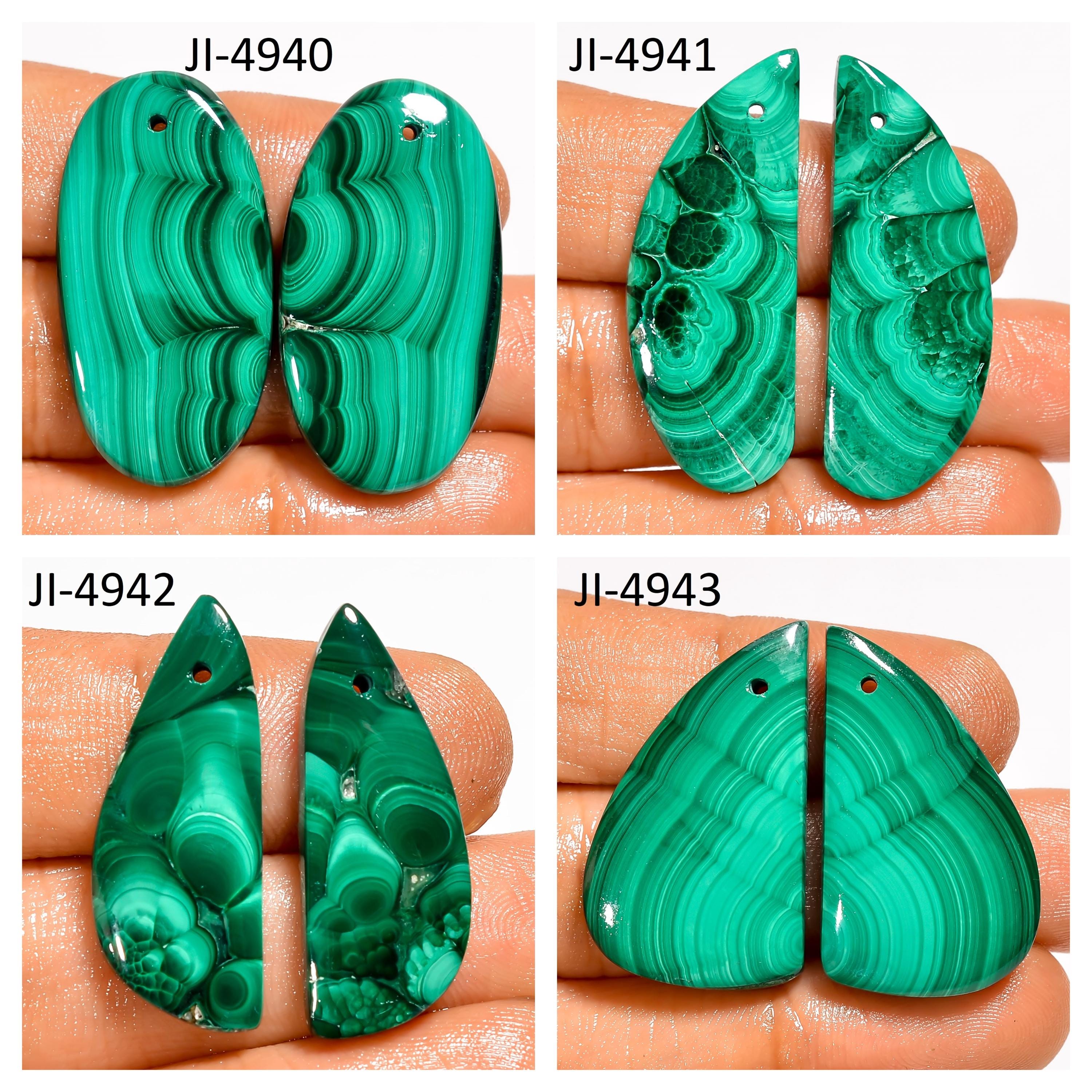 -Malachite fancy shape drilled cabochon matching pairs-this listing is for a set of two cabochons-stones are flat on the back-Malachite is a natural stone, no treatment