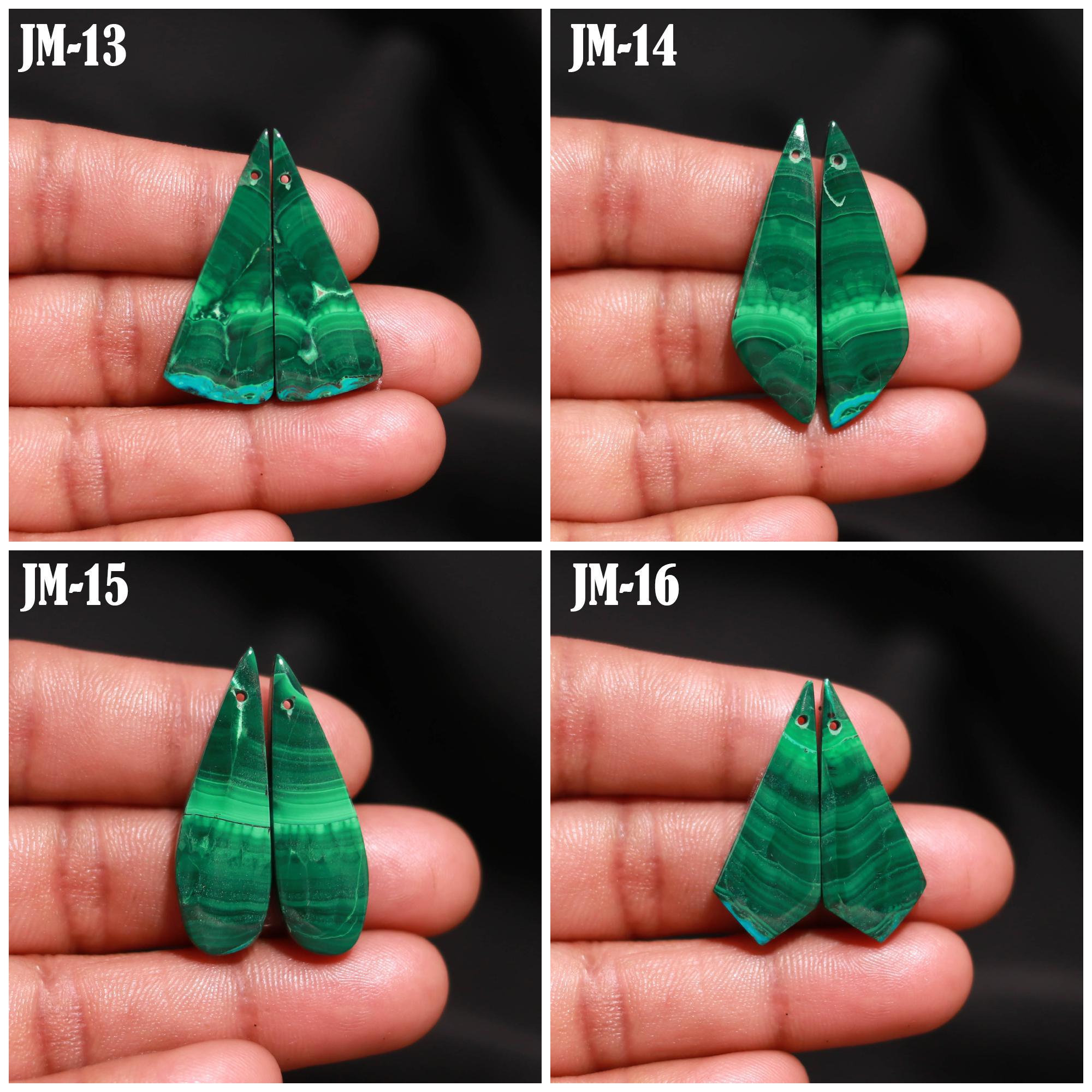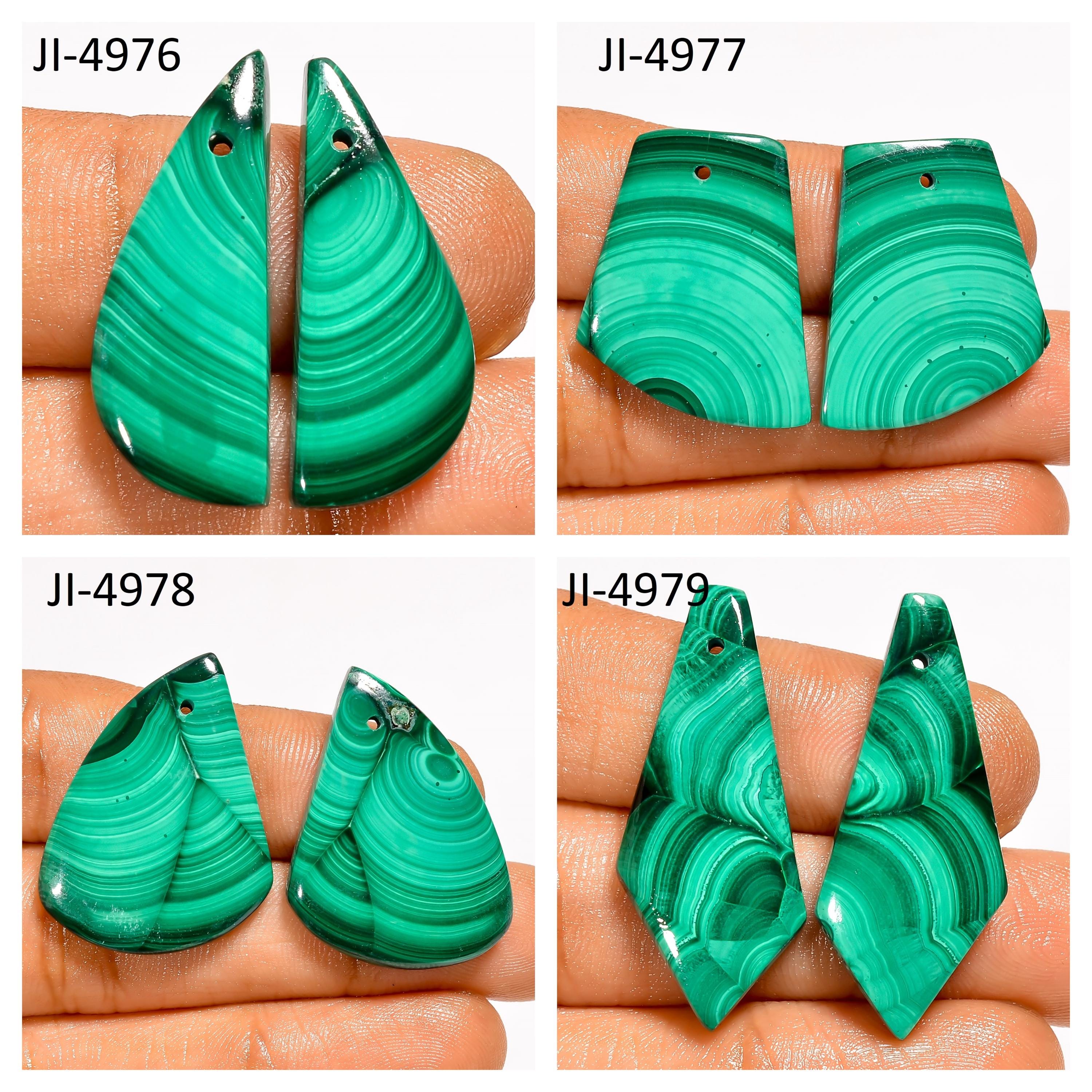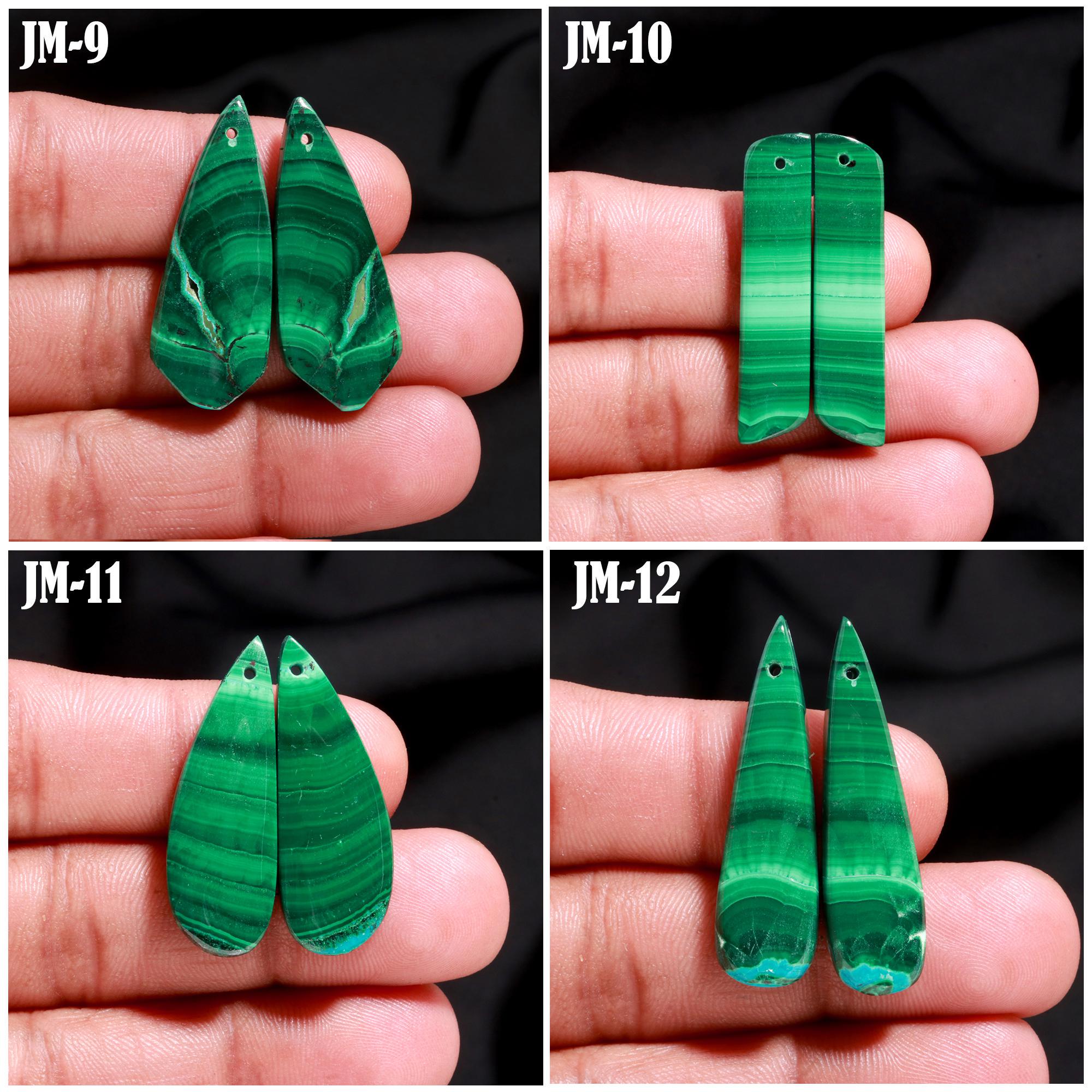 -Malachite fancy shape drilled cabochon matching pairs-this listing is for a set of two cabochons-stones are flat on the back-Malachite is a natural stone, no treatment