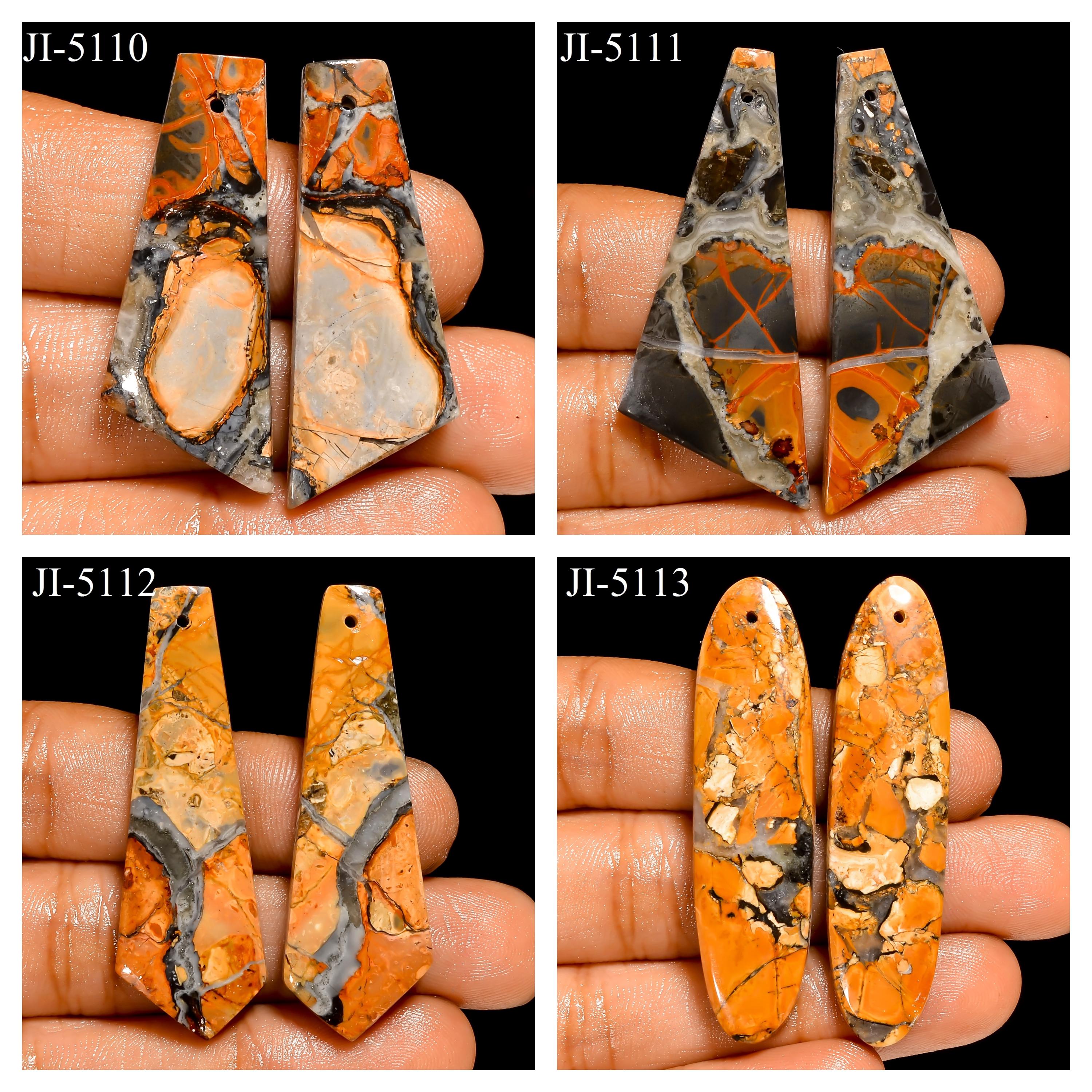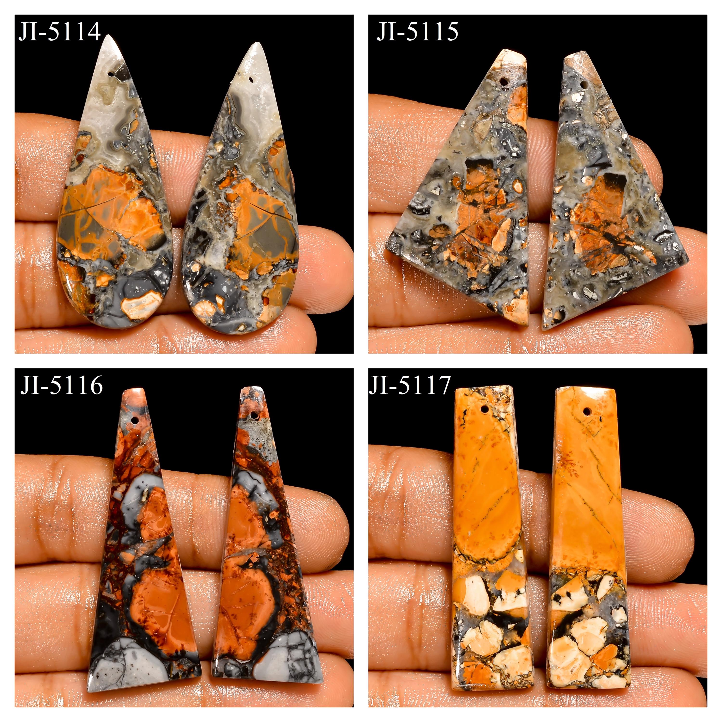 -Maligano Jasper fancy shape drilled cabochon matching pairs-this listing is for a set of two cabochons-stones are flat on the back-Maligano Jasper is a natural stone, no treatment