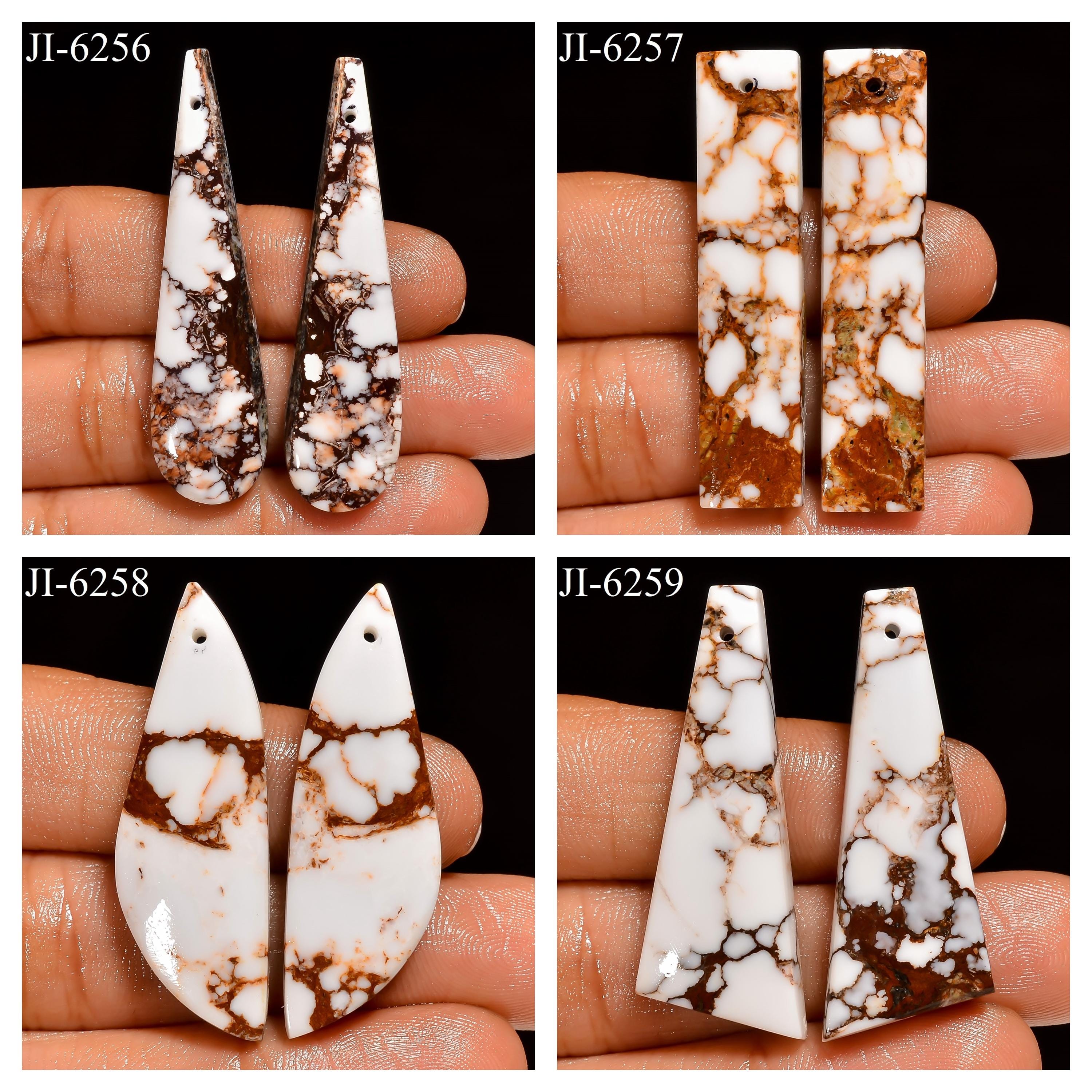 -Wild Horse Jasper fancy shape drilled cabochon matching pairs-this listing is for a set of two cabochons-stones are flat on the back-Wild Horse Jasper is a natural stone, no treatment