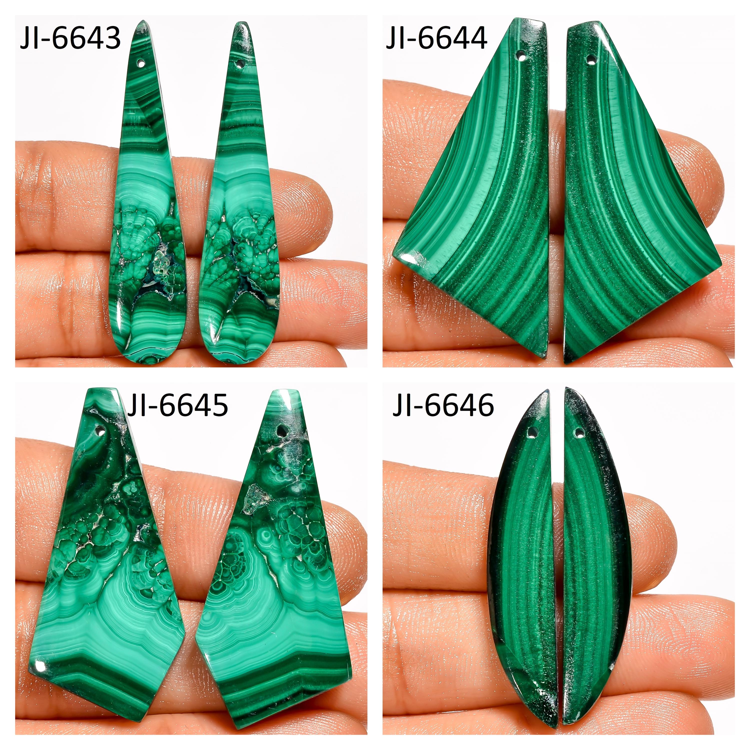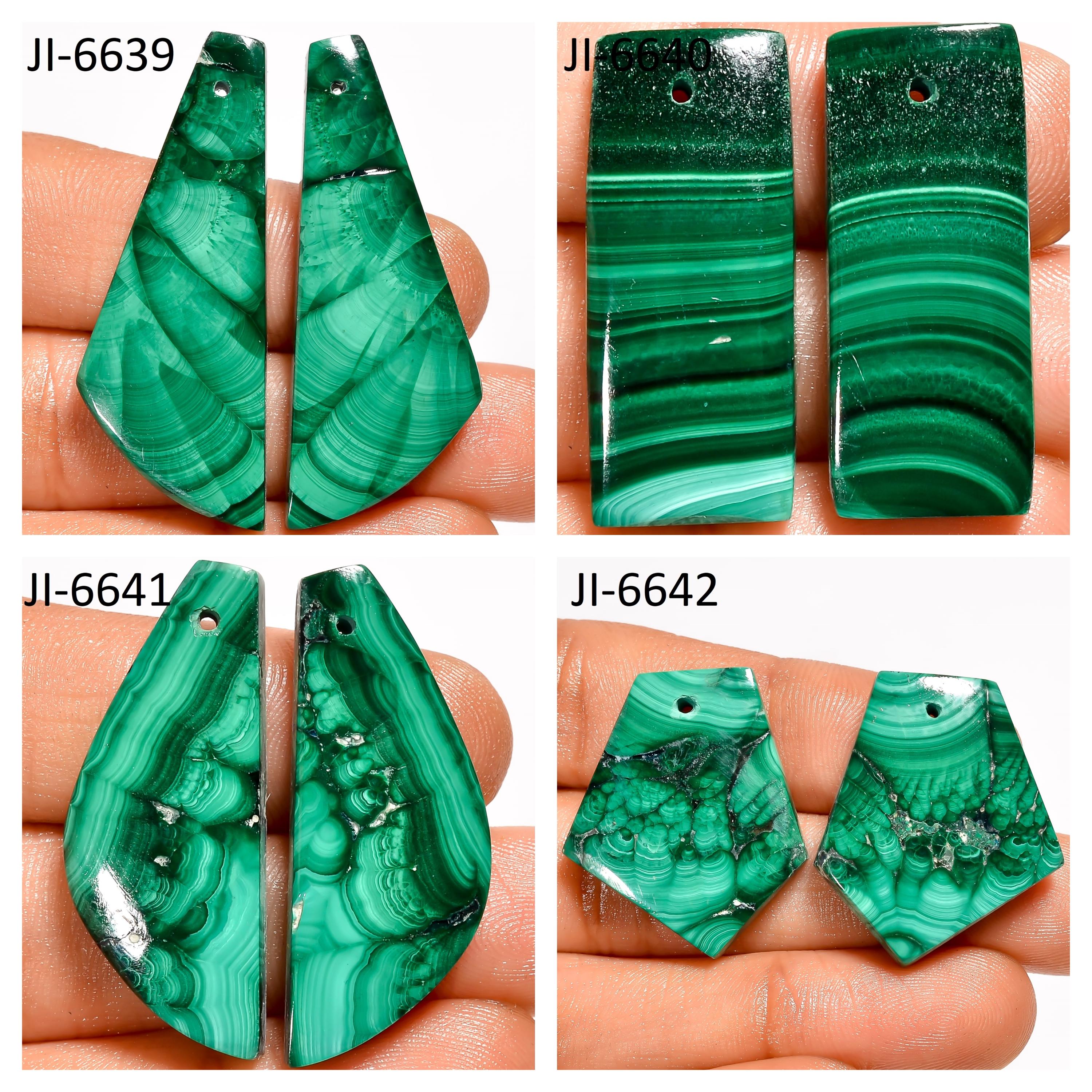 -Malachite fancy shape drilled cabochon matching pairs-this listing is for a set of two cabochons-stones are flat on the back-Malachite is a natural stone, no treatment