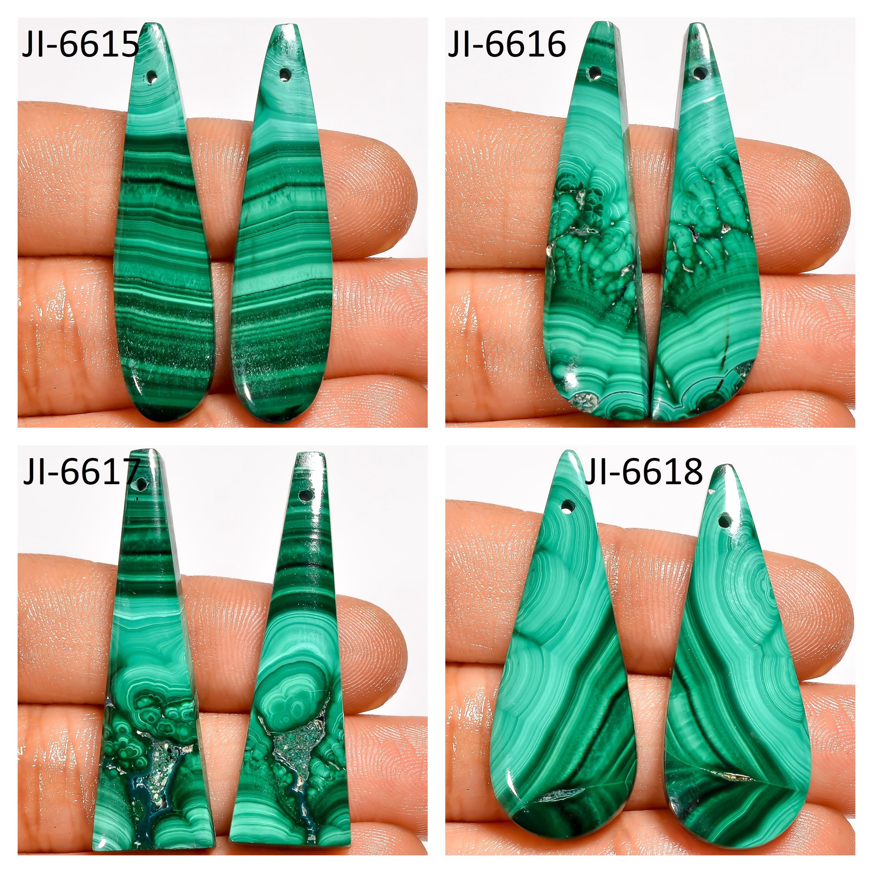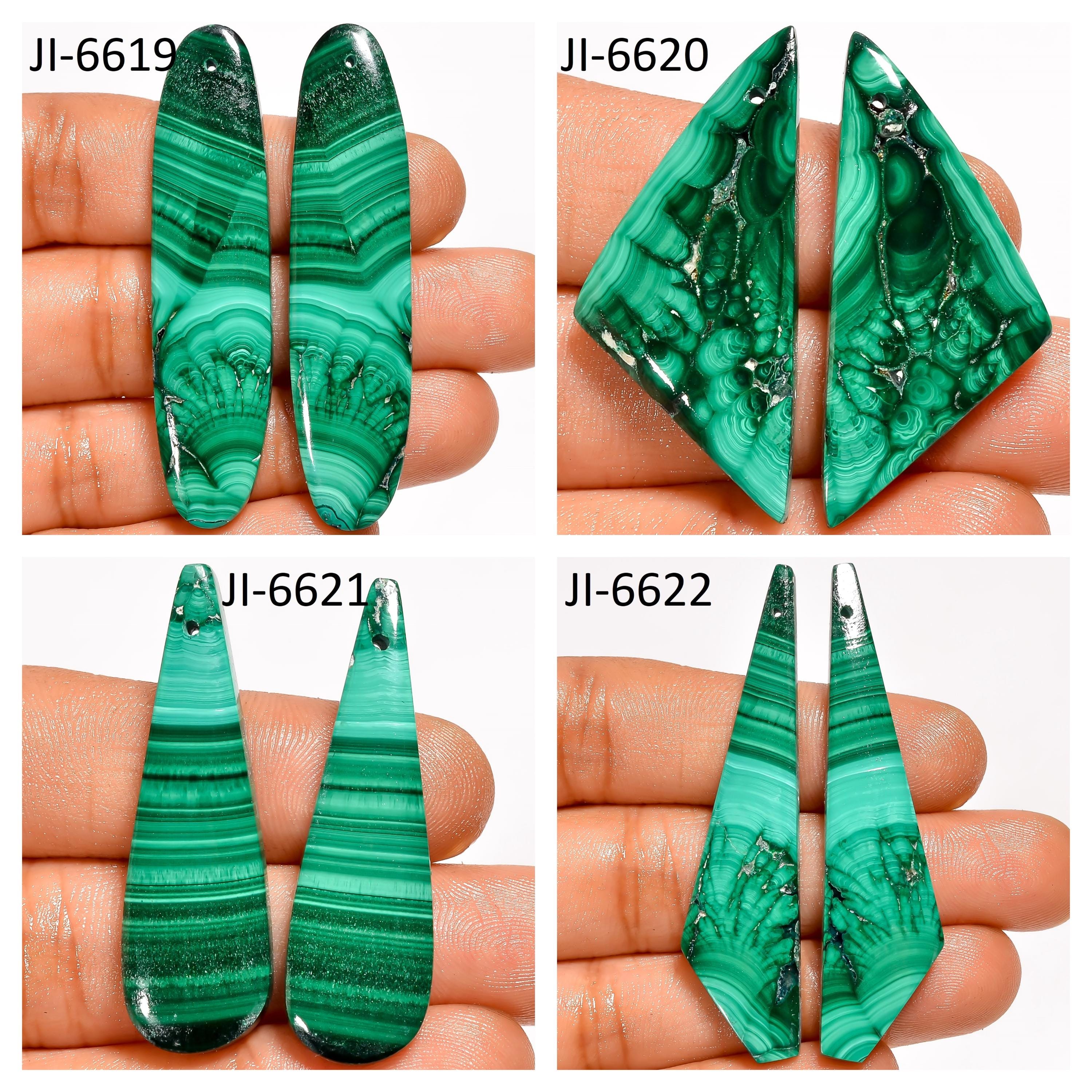 -Malachite fancy shape drilled cabochon matching pairs-this listing is for a set of two stones-stones are flat on the back-Malachite is a natural stone, no treatment-hand cut in India