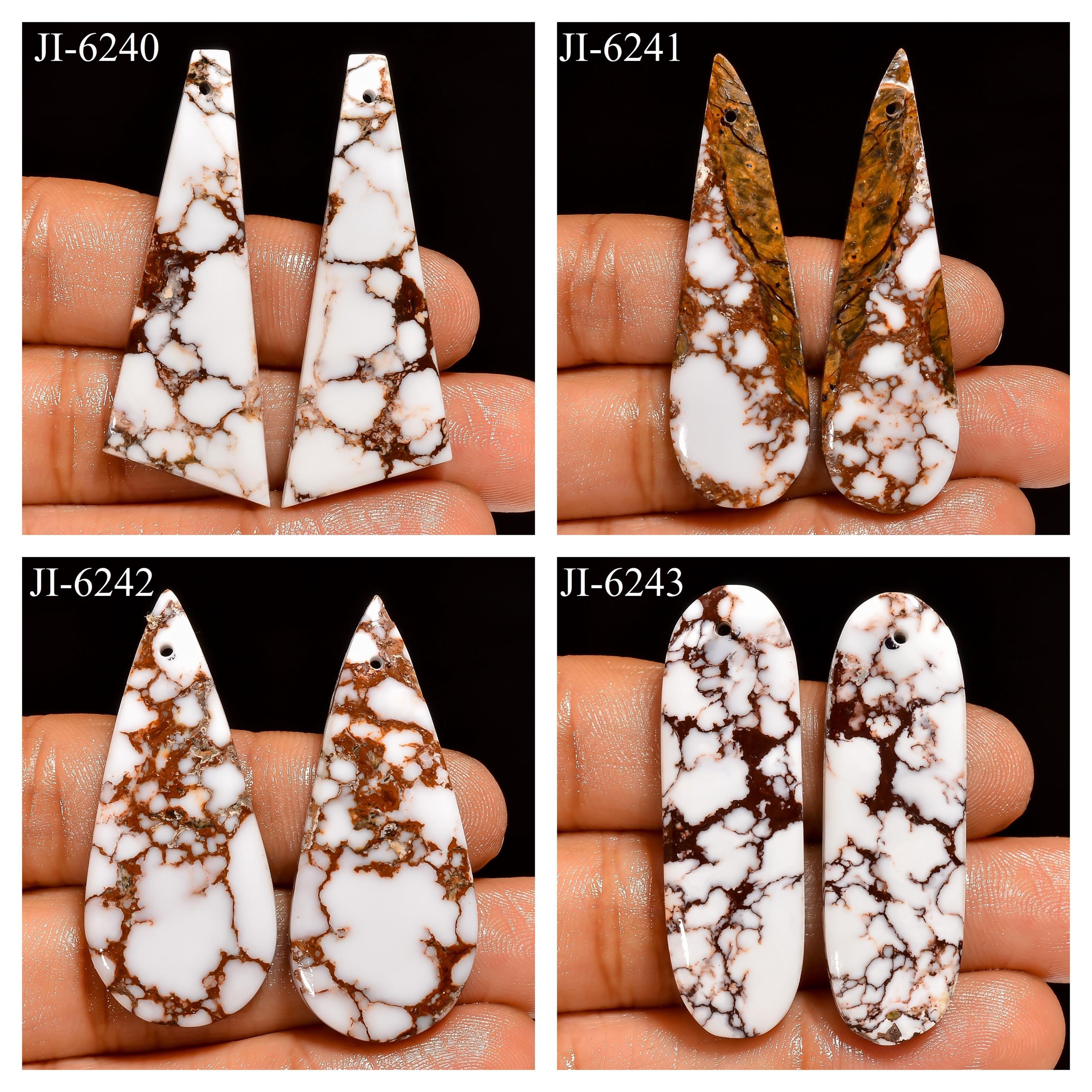 -Wild Horse Jasper fancy shape drilled cabochon matching pairs-this listing is for a set of two cabochons-stones are flat on the back-Wild Horse Jasper is a natural stone, no treatment