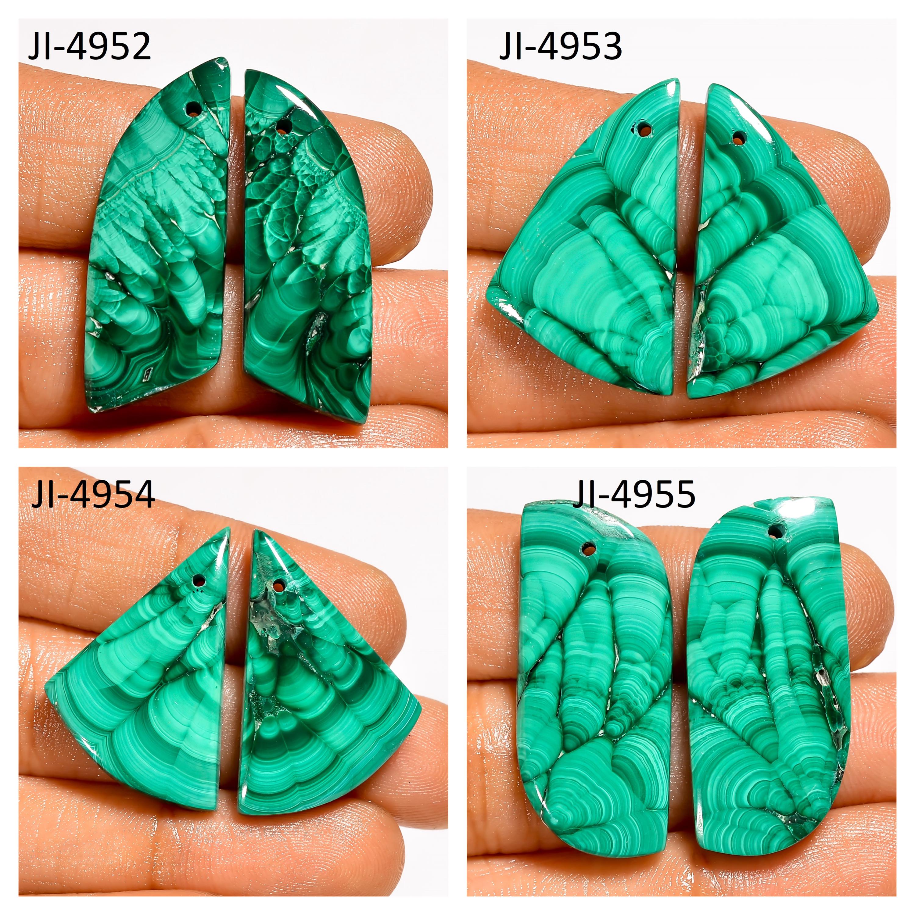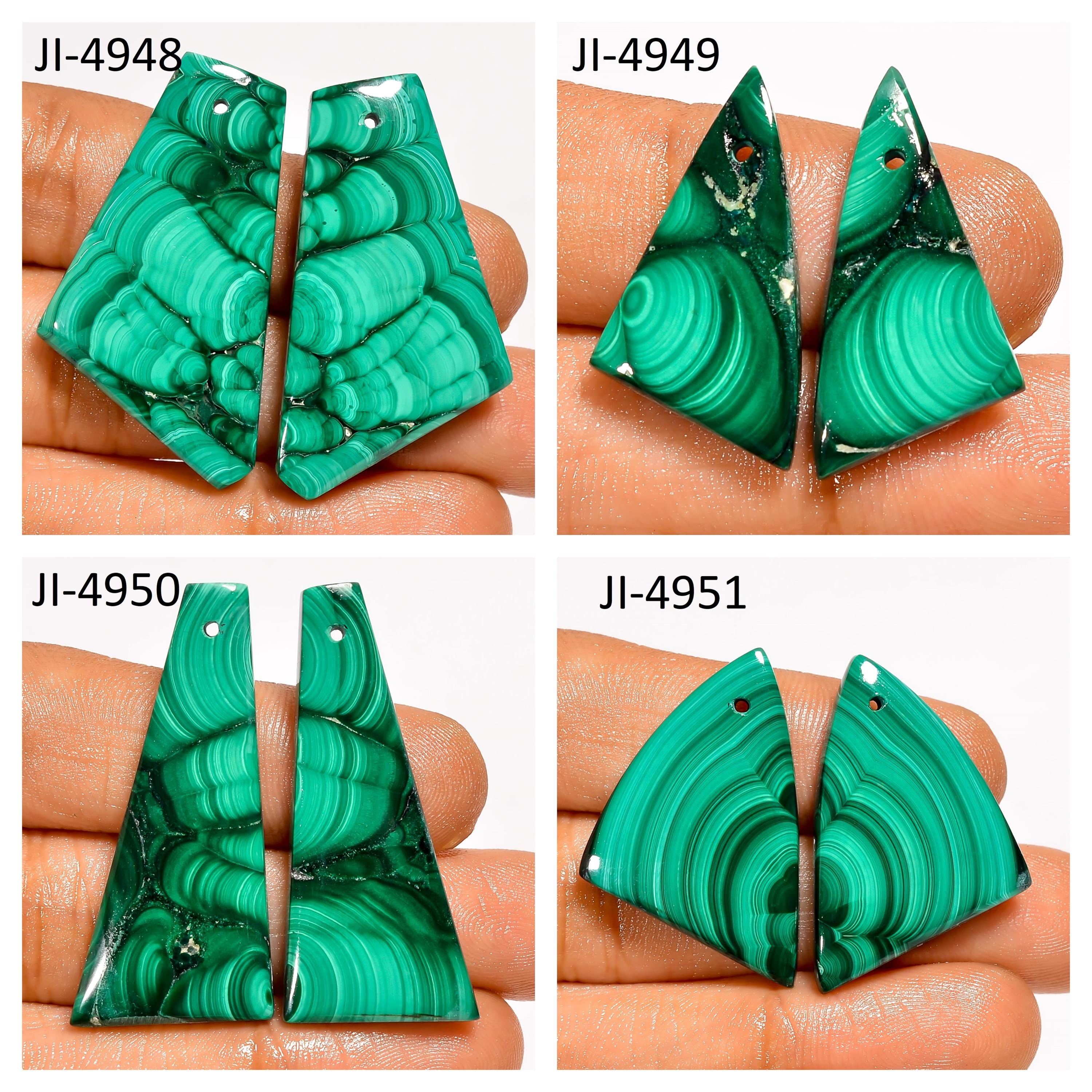 -Malachite fancy shape drilled cabochon matching pairs-this listing is for a set of two cabochons-stones are flat on the back-Malachite is a natural stone, no treatment