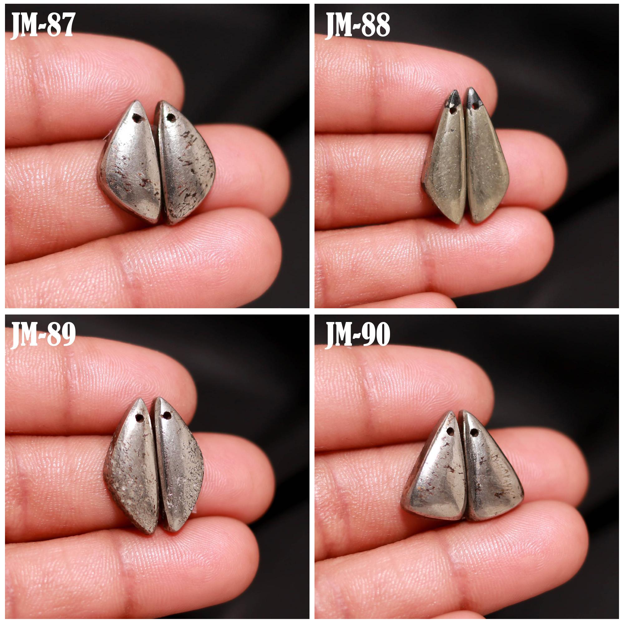 -Pyrite fancy shape drilled cabochon matching pairs-this listing is for a set of two cabochons-stones are flat on the back-Pyrite is a natural stone, no treatment