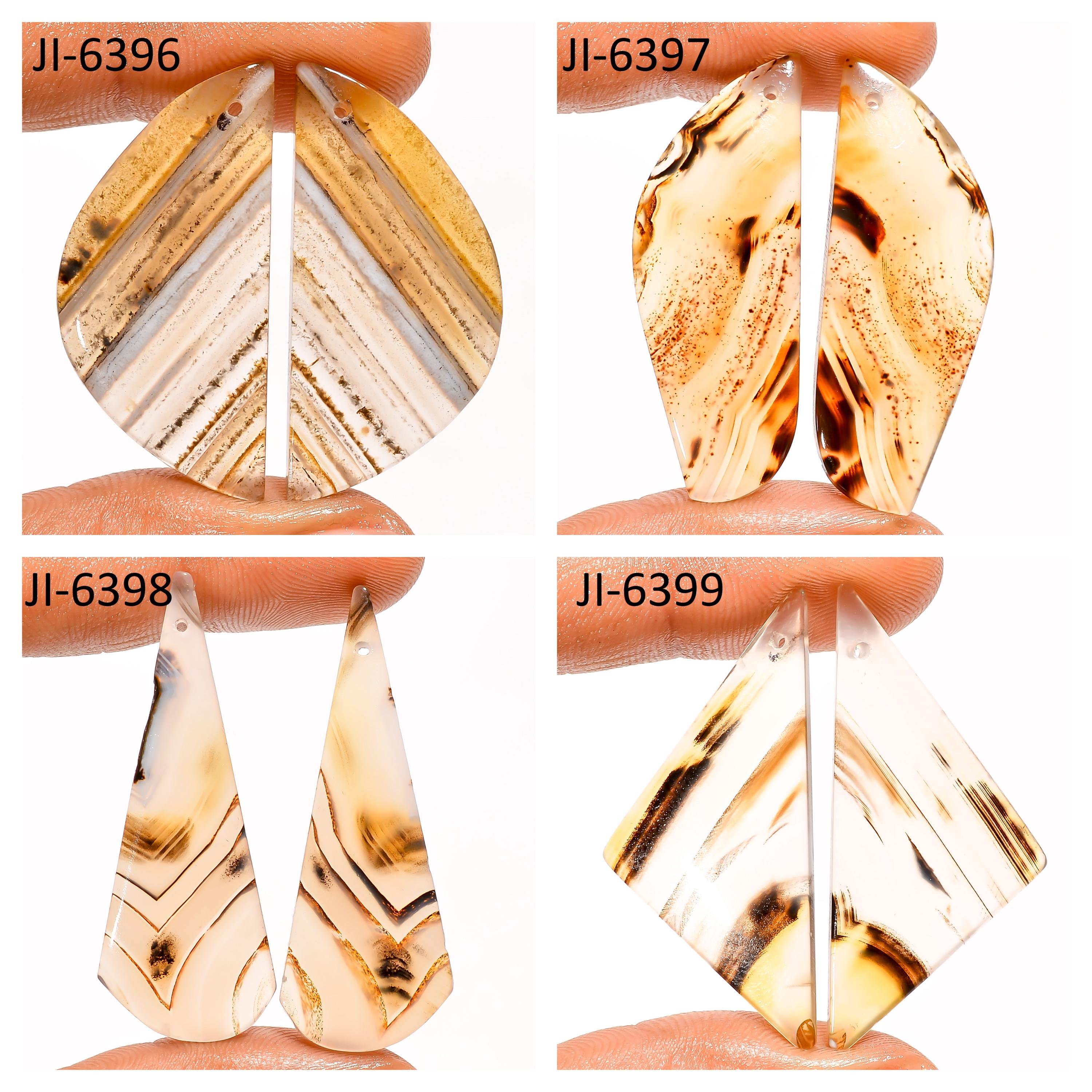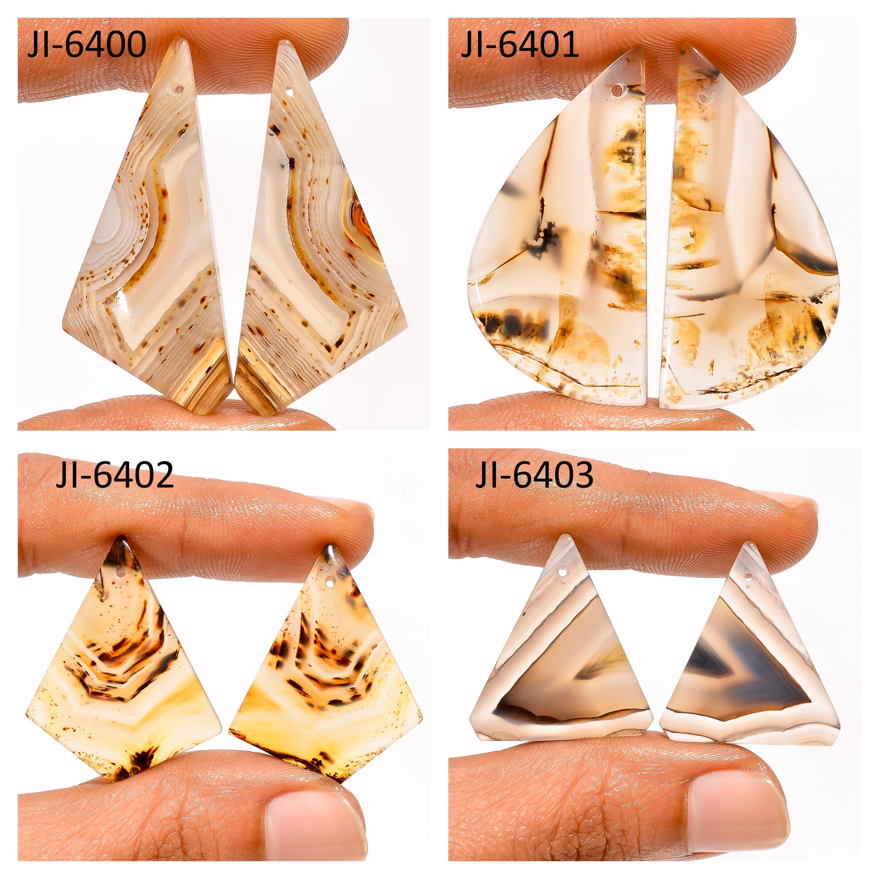-Montana Agate fancy shape drilled cabochon matching pairs-this listing is for a set of two cabochons-stones are flat on the back-Montana Agate is a natural stone, no treatment