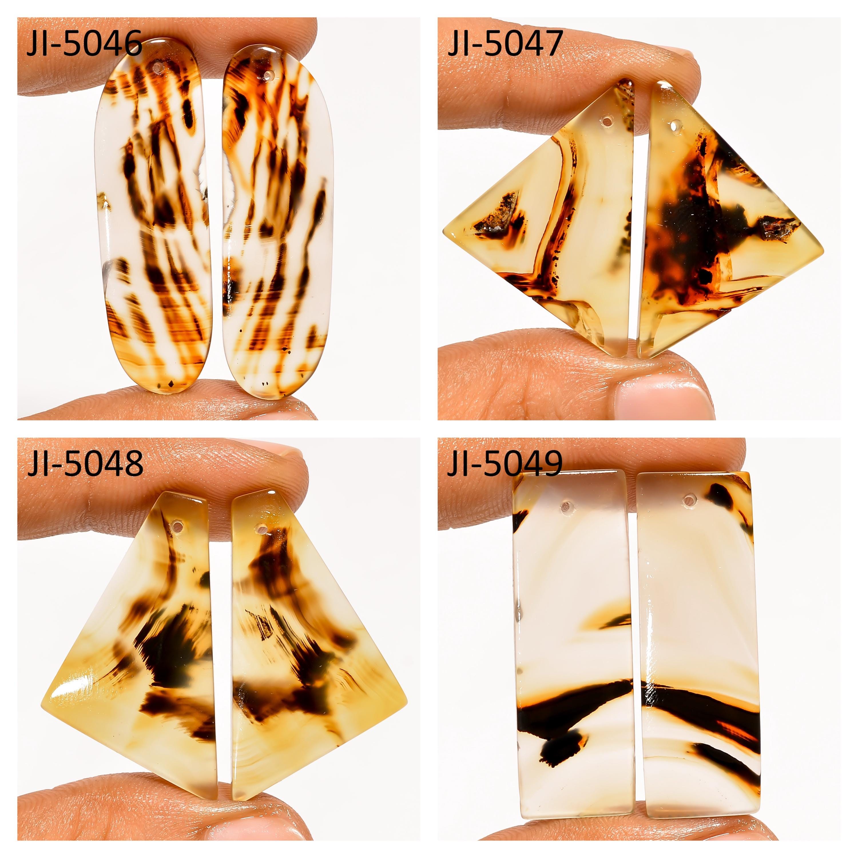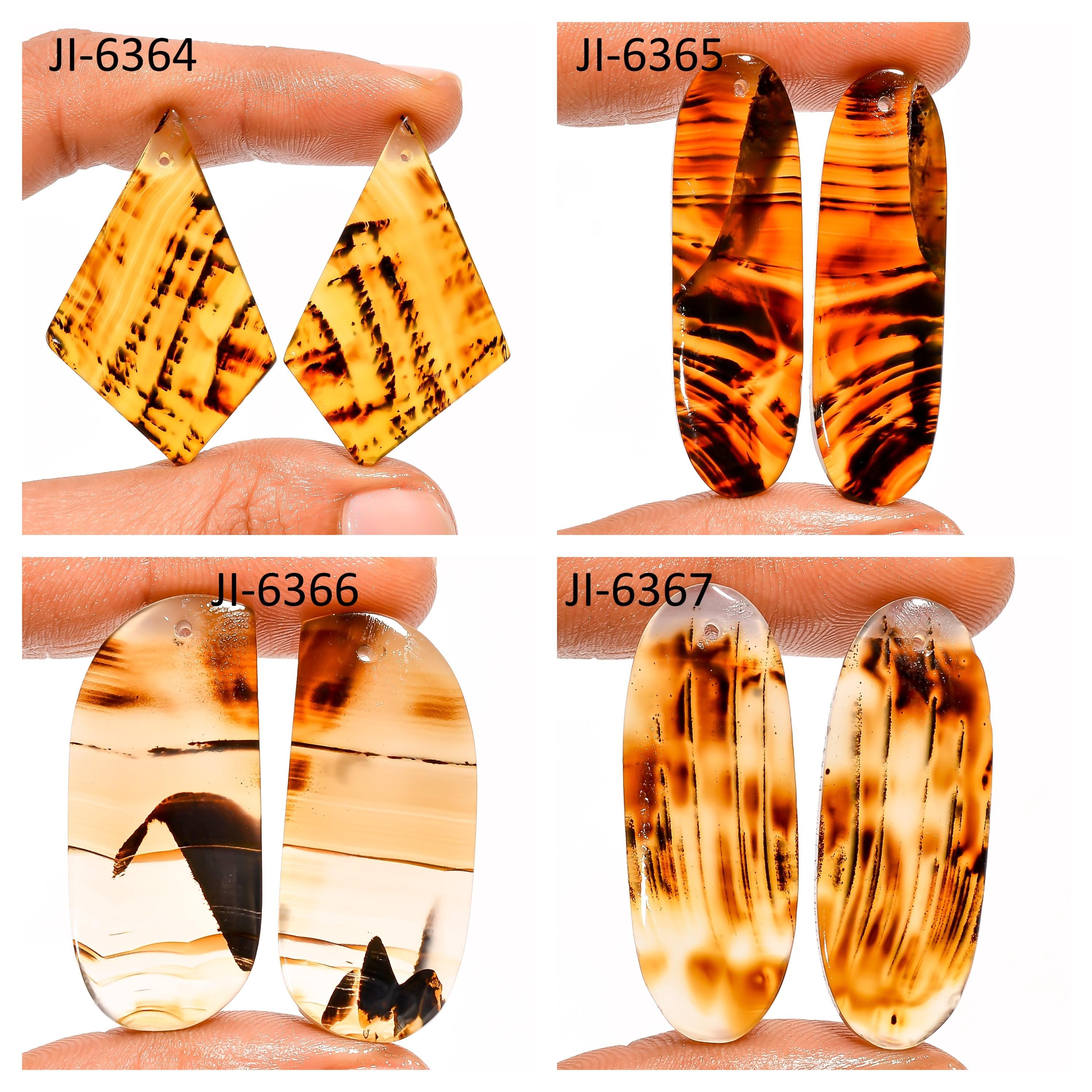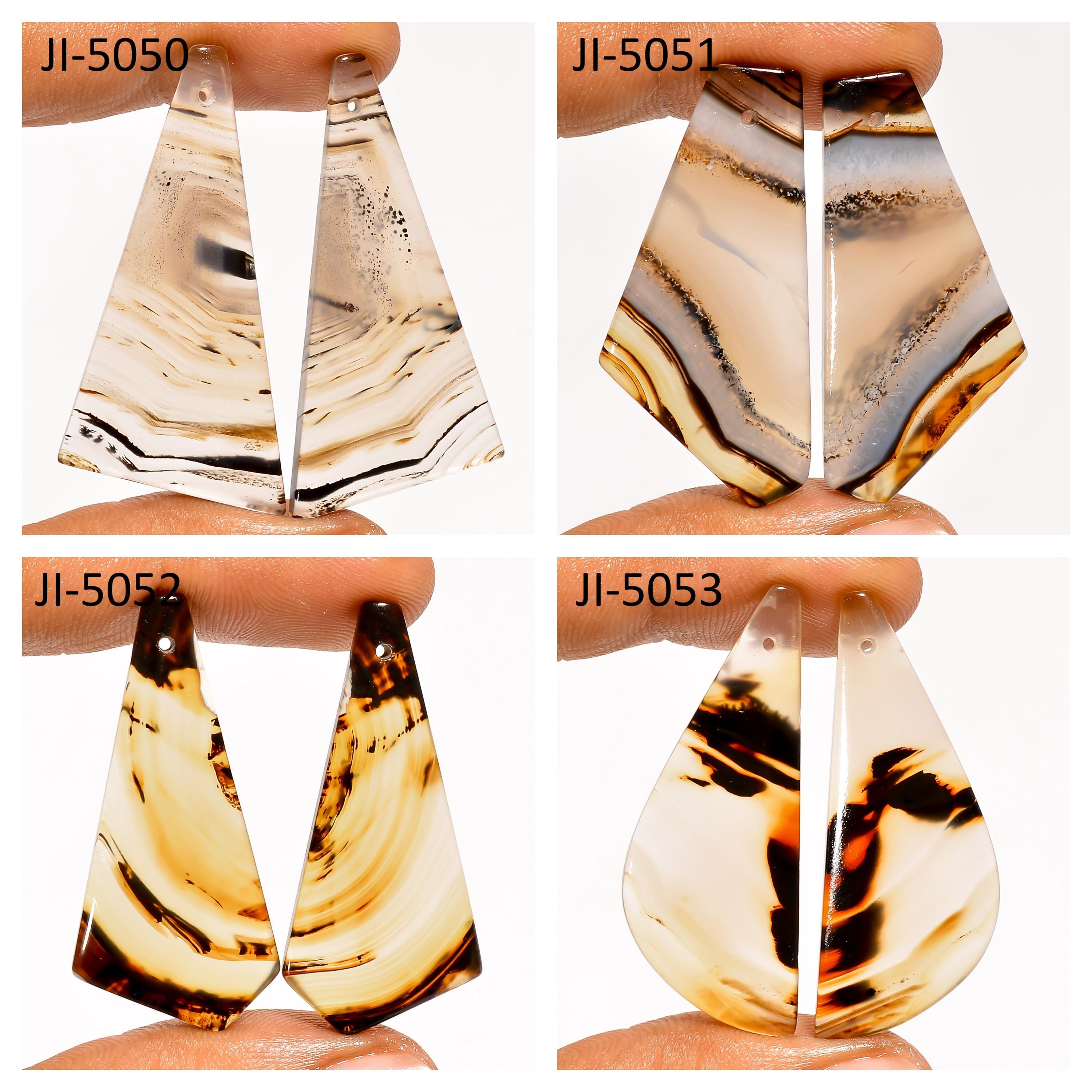 -Montana Agate fancy shape drilled cabochon matching pairs-this listing is for a set of two cabochons-stones are flat on the back-Montana Agate is a natural stone, no treatment