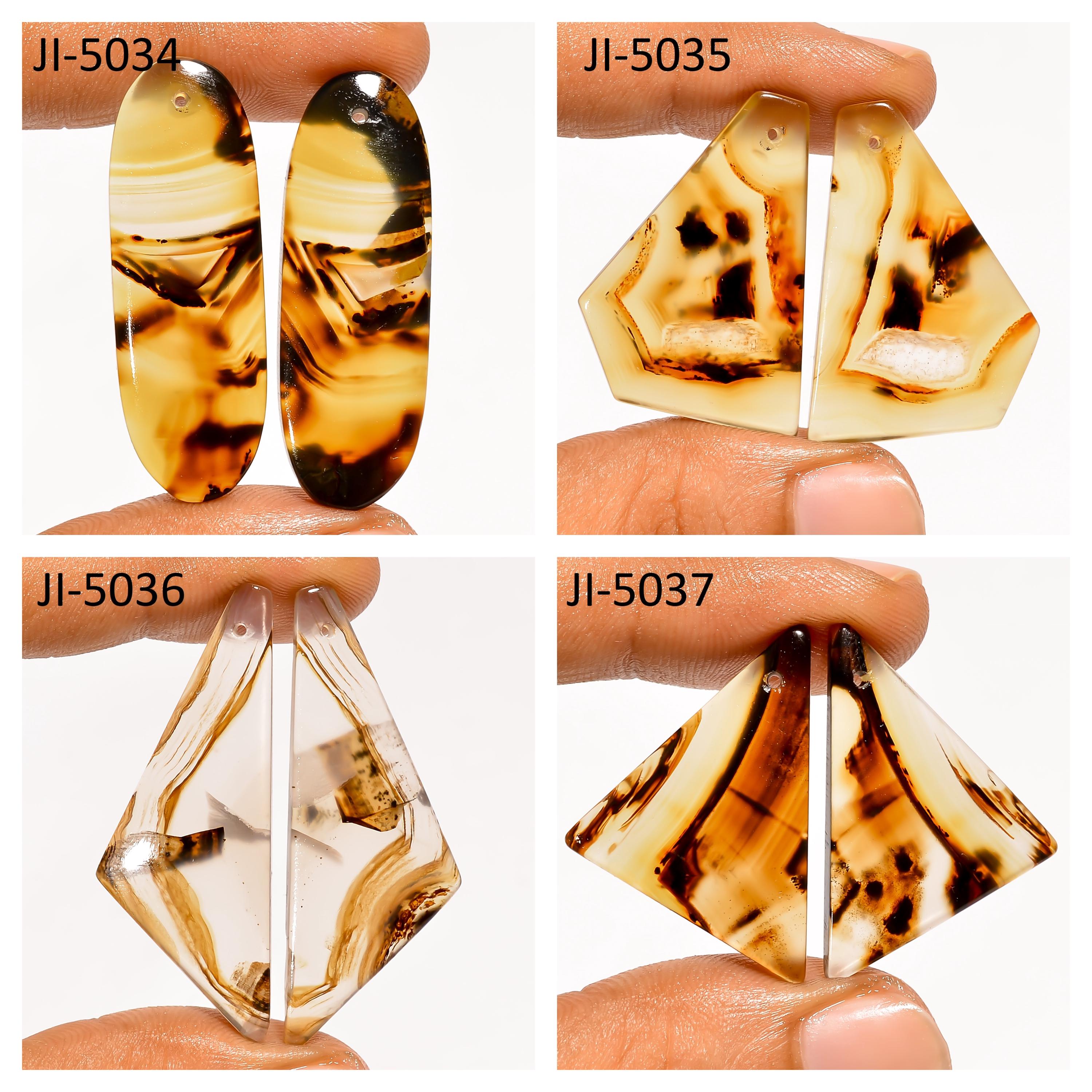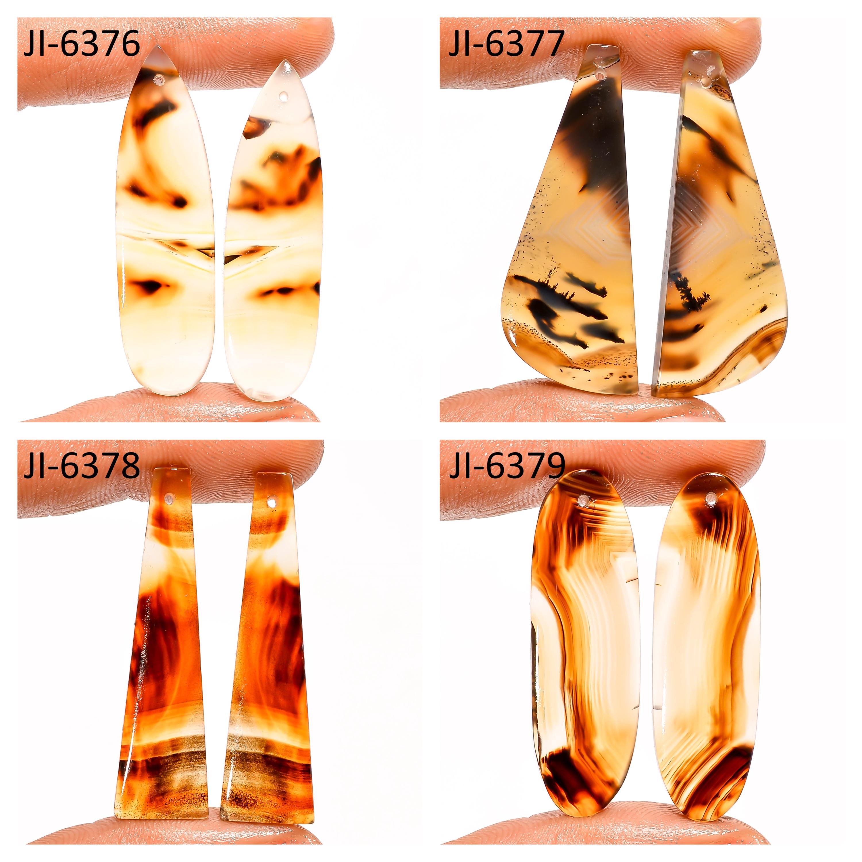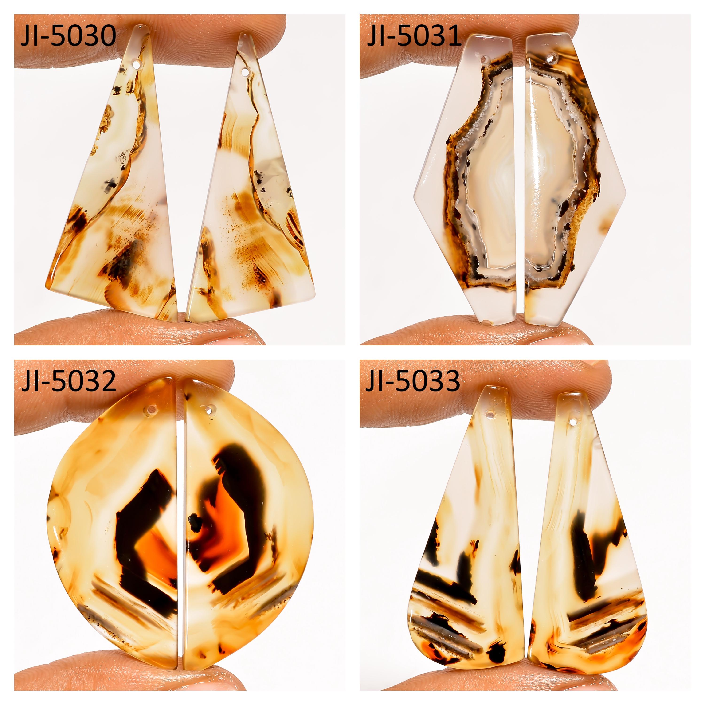 -Montana Agate fancy shape drilled cabochon matching pairs-this listing is for a set of two cabochons-stones are flat on the back-Montana Agate is a natural stone, no treatment