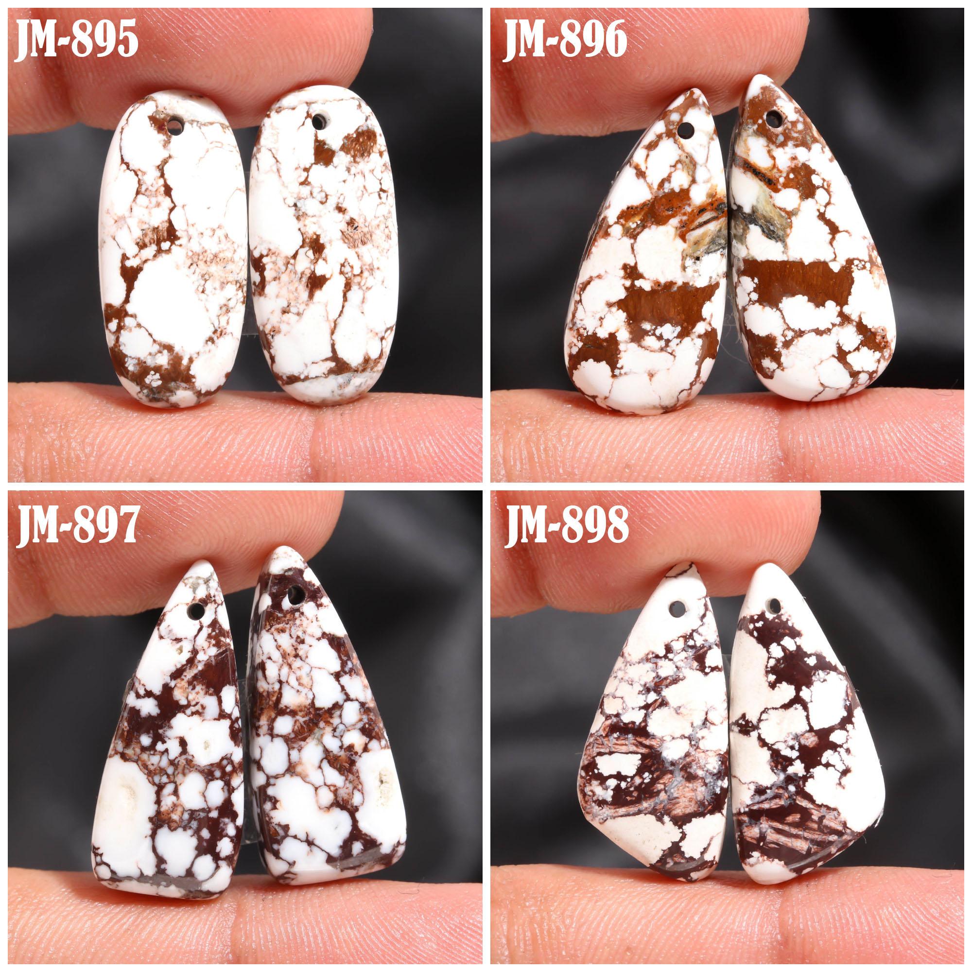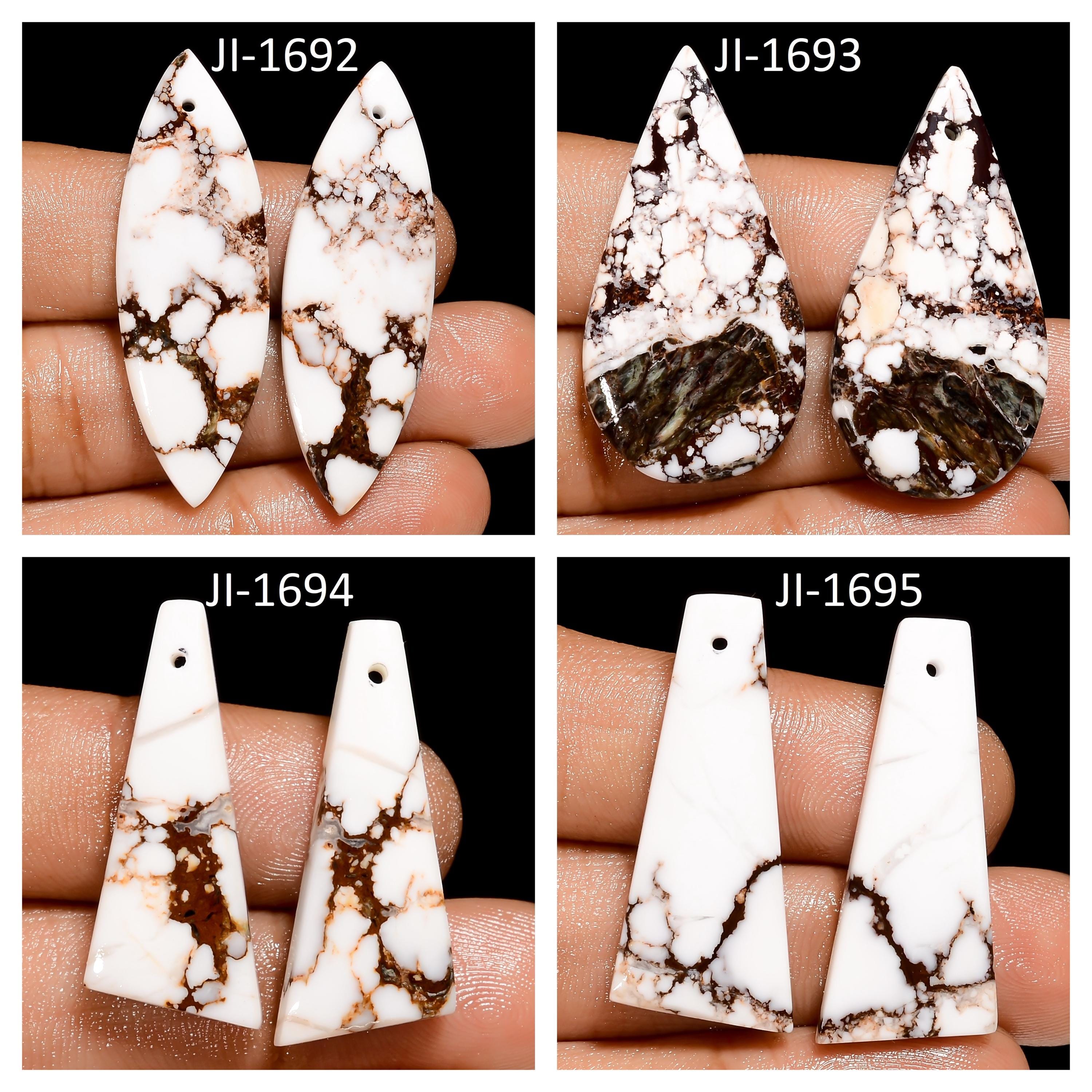 -Wild Horse Jasper fancy shape drilled cabochon matching pairs-this listing is for a set of two cabochons-stones are flat on the back-Wild Horse Jasper is a natural stone, no treatment