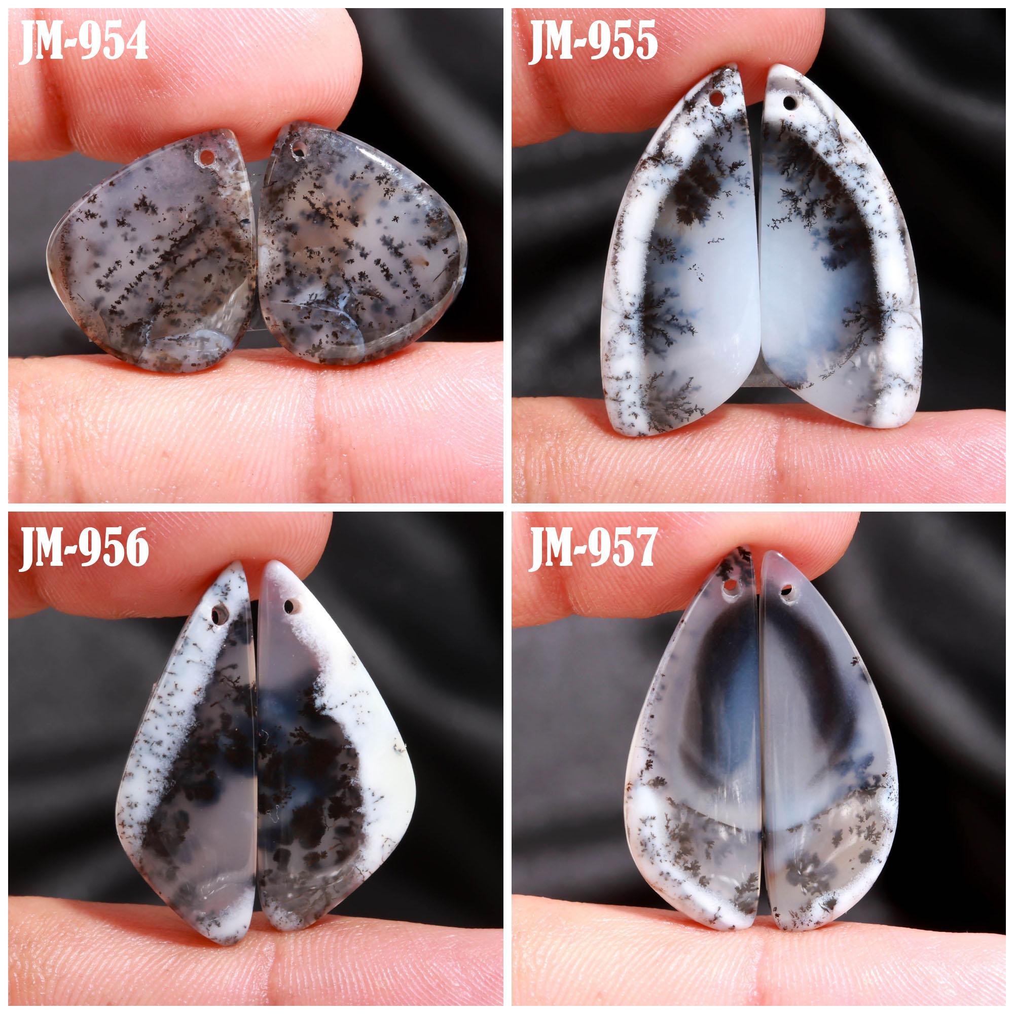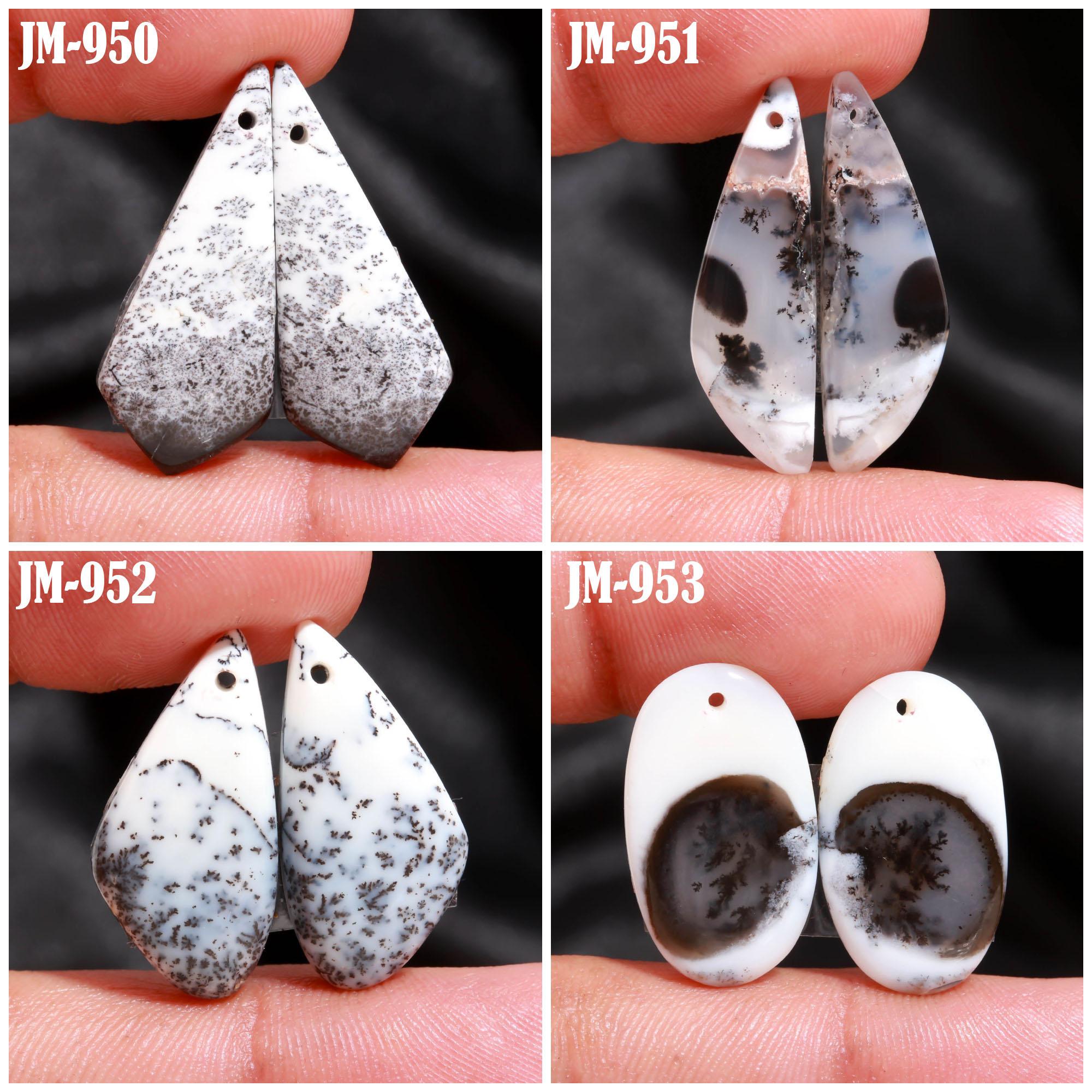 -Dendrite Agate fancy shape drilled cabochon matching pairs-this listing is for a set of two cabochons-stones are flat on the back-Dendrite Agate is a natural stone, no treatment