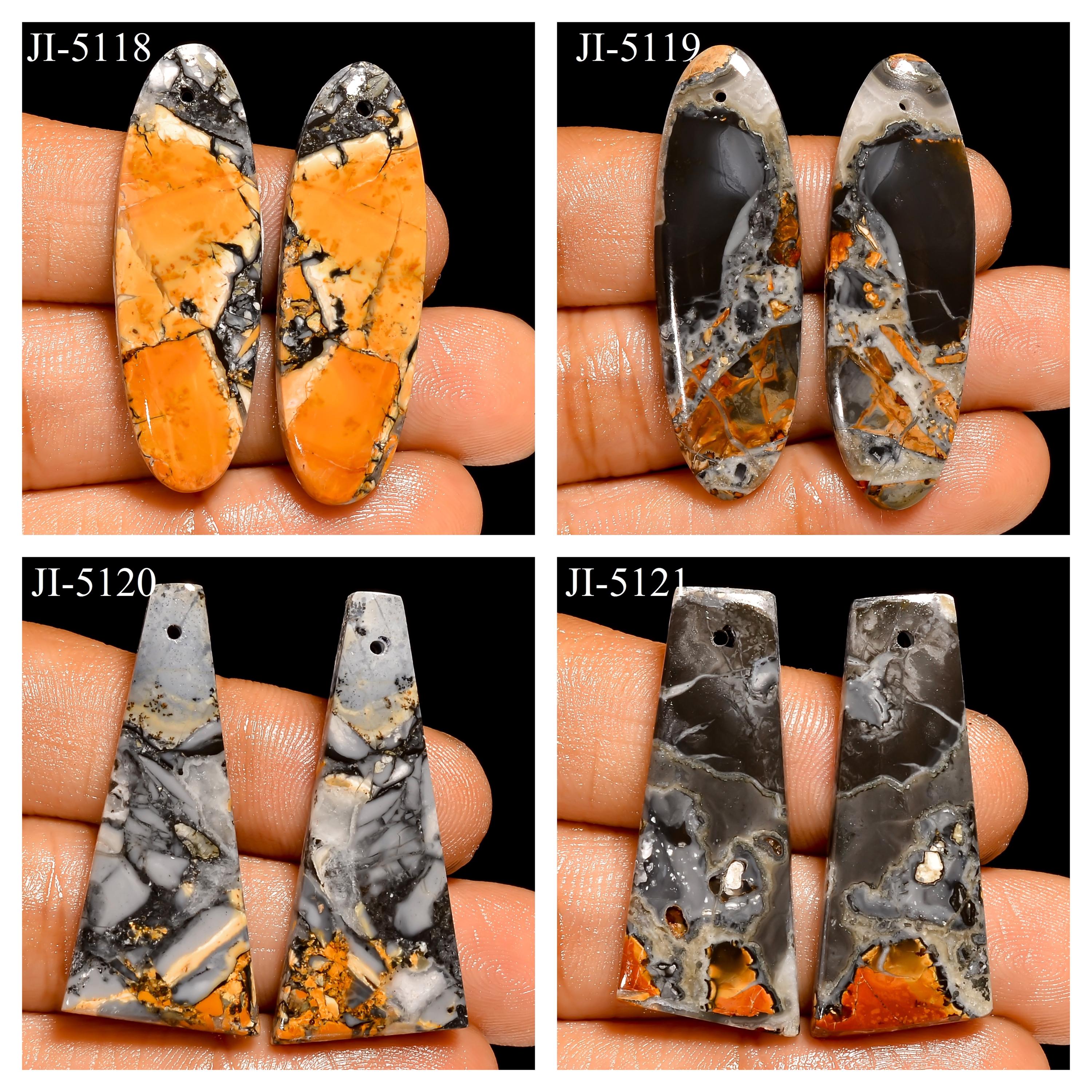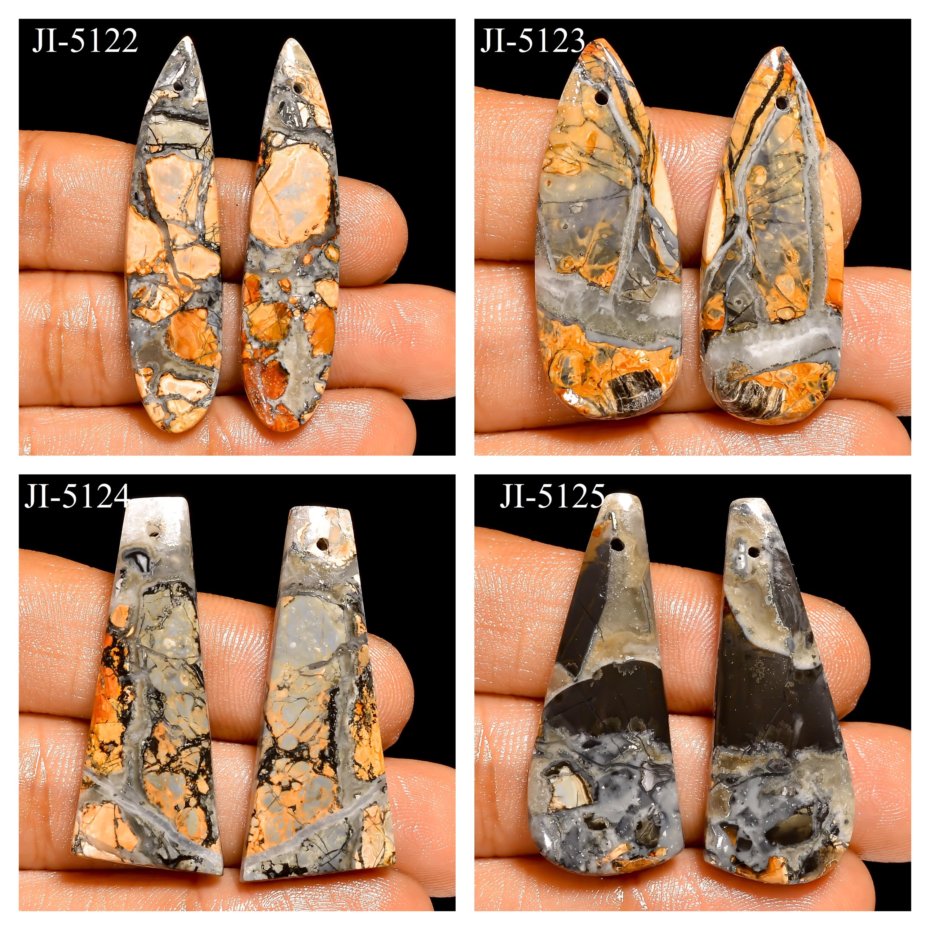 -Maligano Jasper fancy shape drilled cabochon matching pairs-this listing is for a set of two cabochons-stones are flat on the back-Maligano Jasper is a natural stone, no treatment