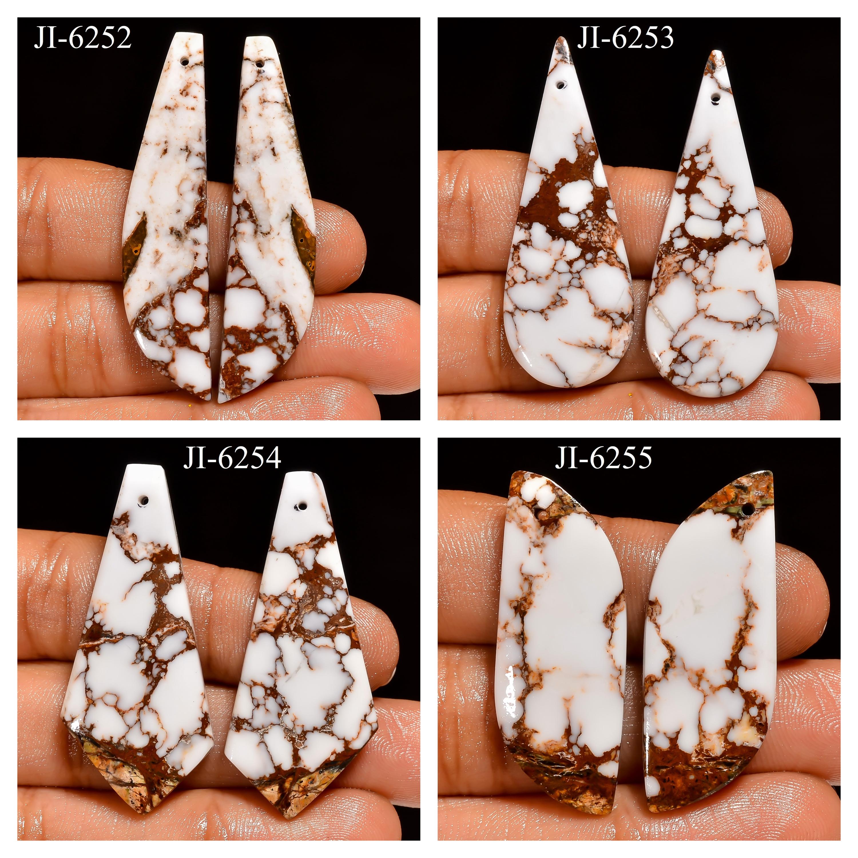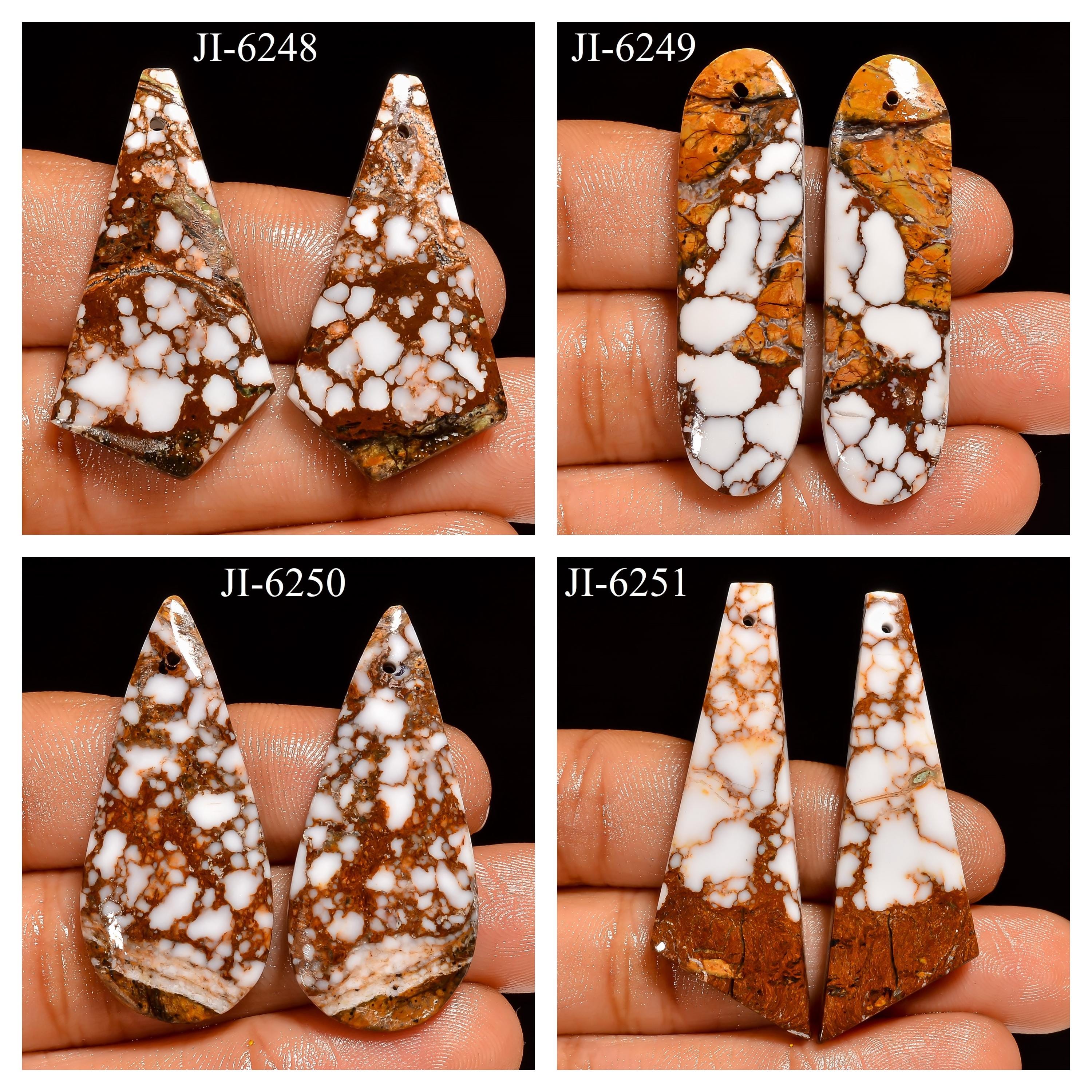 -Wild Horse Jasper fancy shape drilled cabochon matching pairs-this listing is for a set of two cabochons-stones are flat on the back-Wild Horse Jasper is a natural stone, no treatment