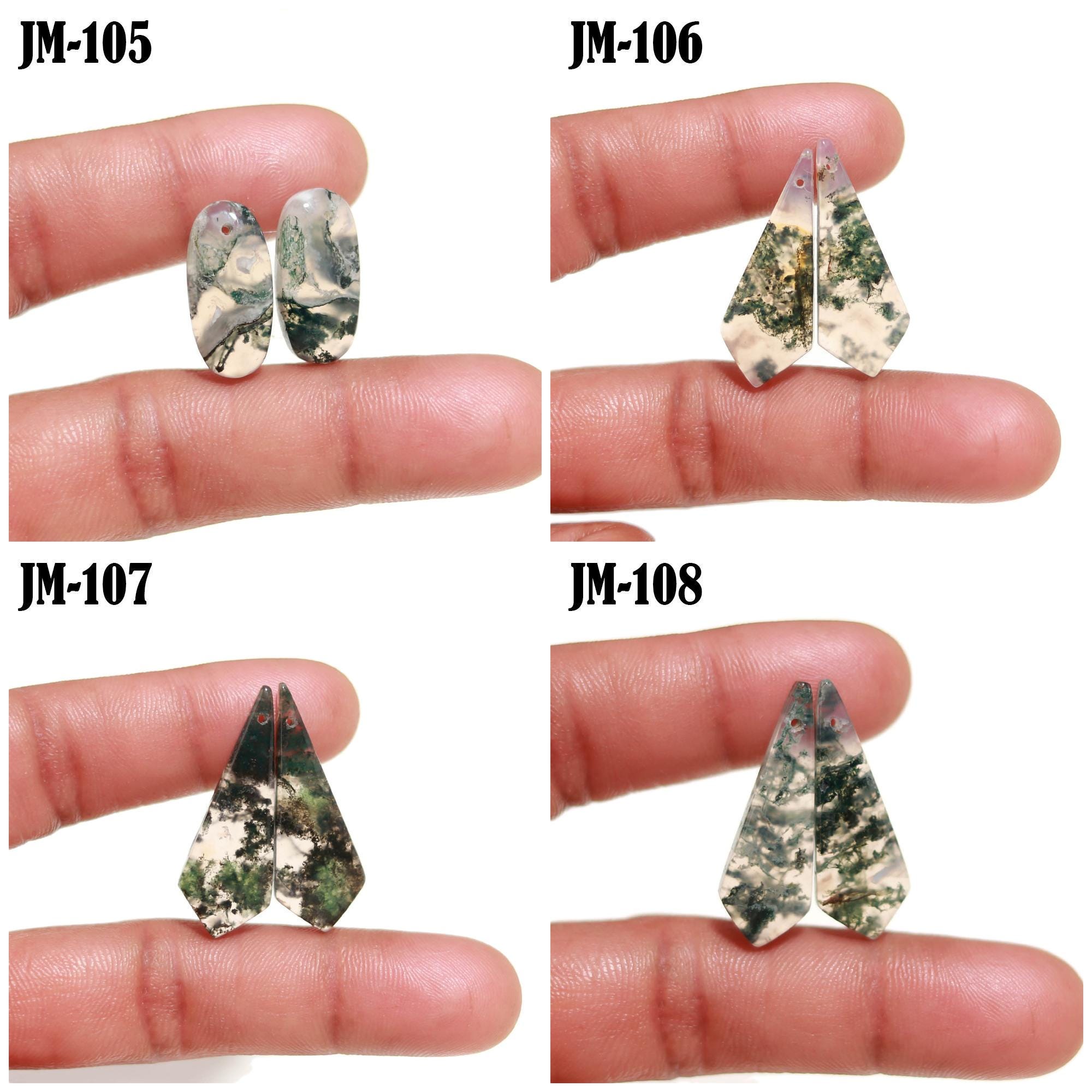 -Moss Agate fancy shape drilled cabochon matching pairs-this listing is for a set of two cabochons-stones are flat on the back-Moss Agate is a natural stone, no treatment