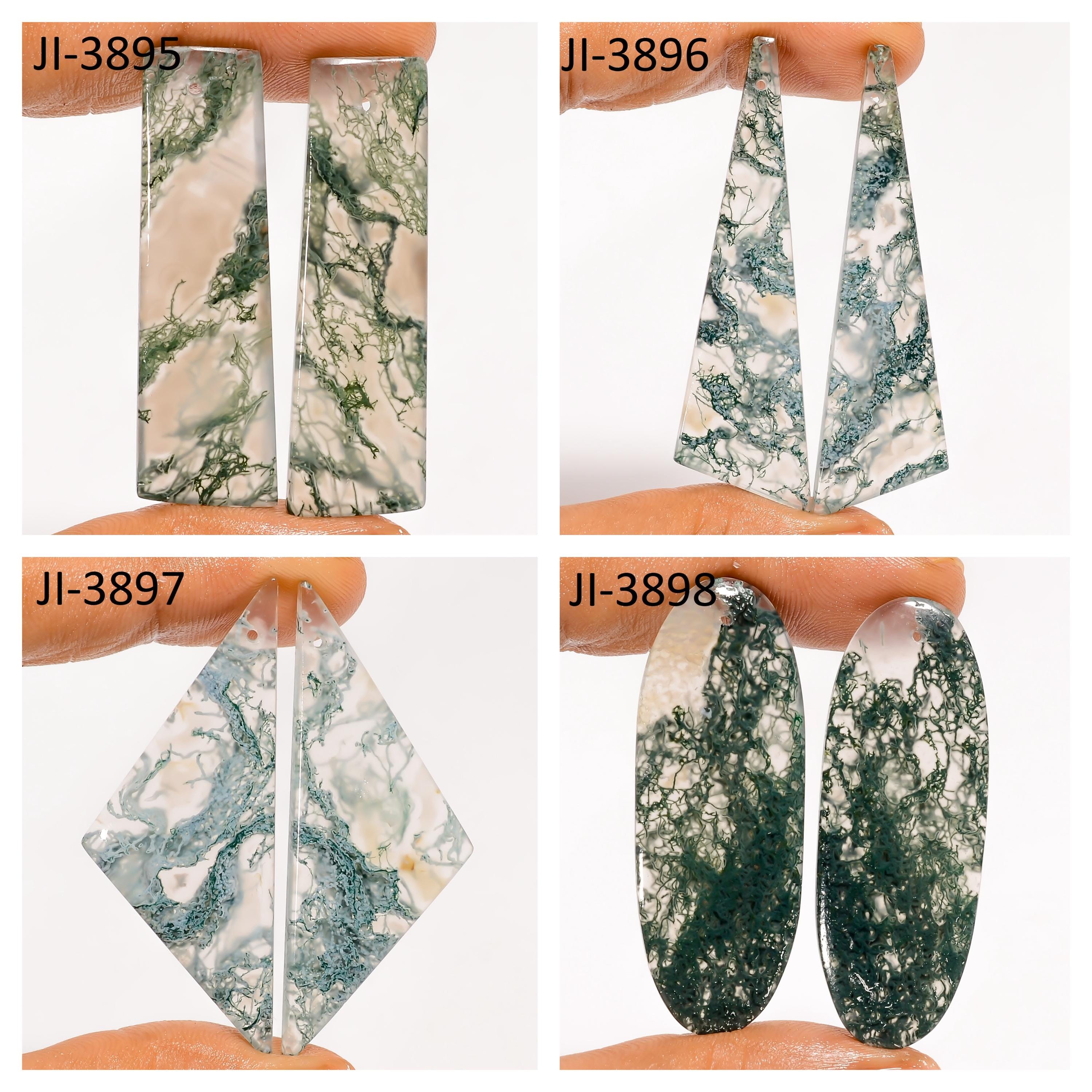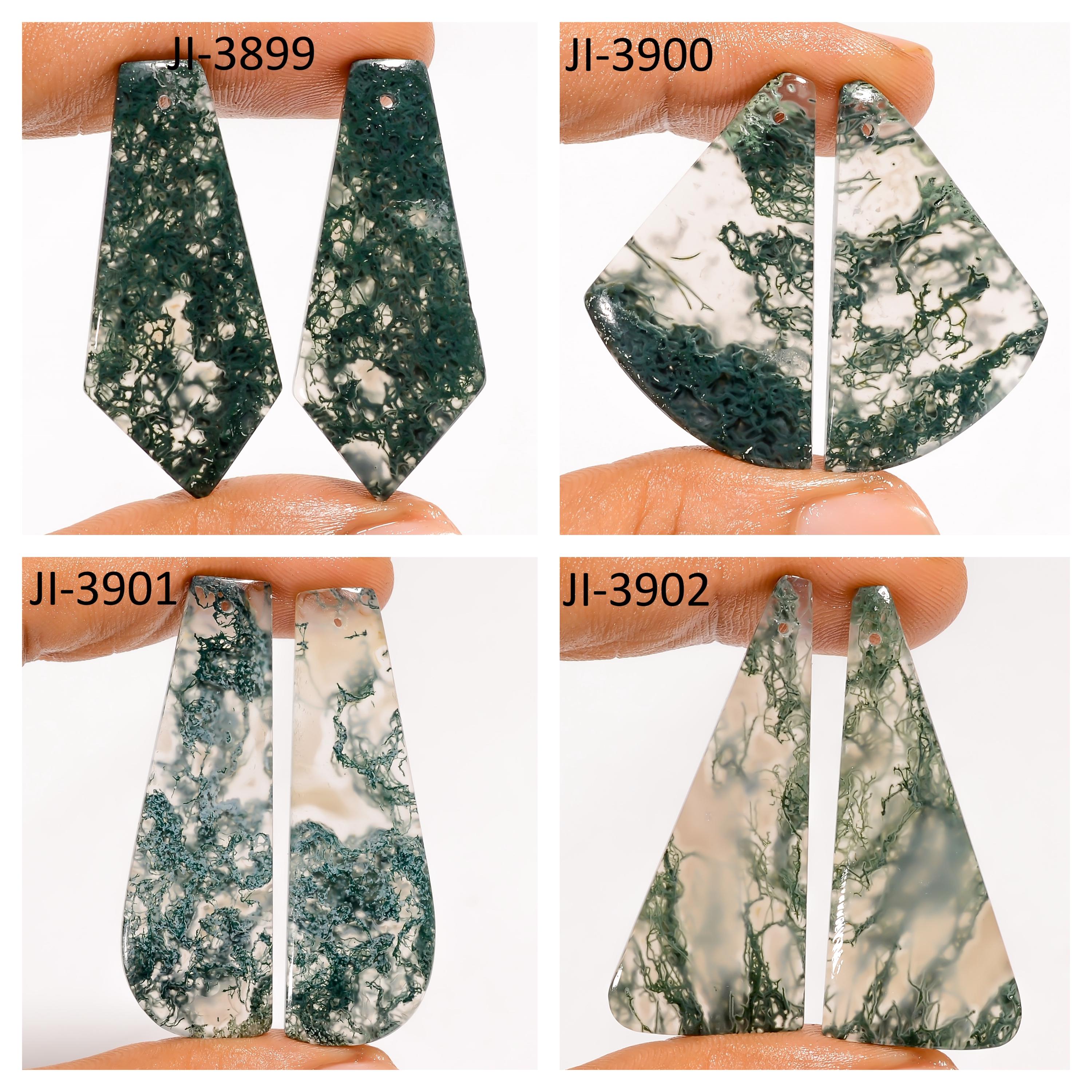 -Moss Agate fancy shape drilled cabochon matching pairs-this listing is for a set of two cabochons-stones are flat on the back-Moss Agate is a natural stone, no treatment