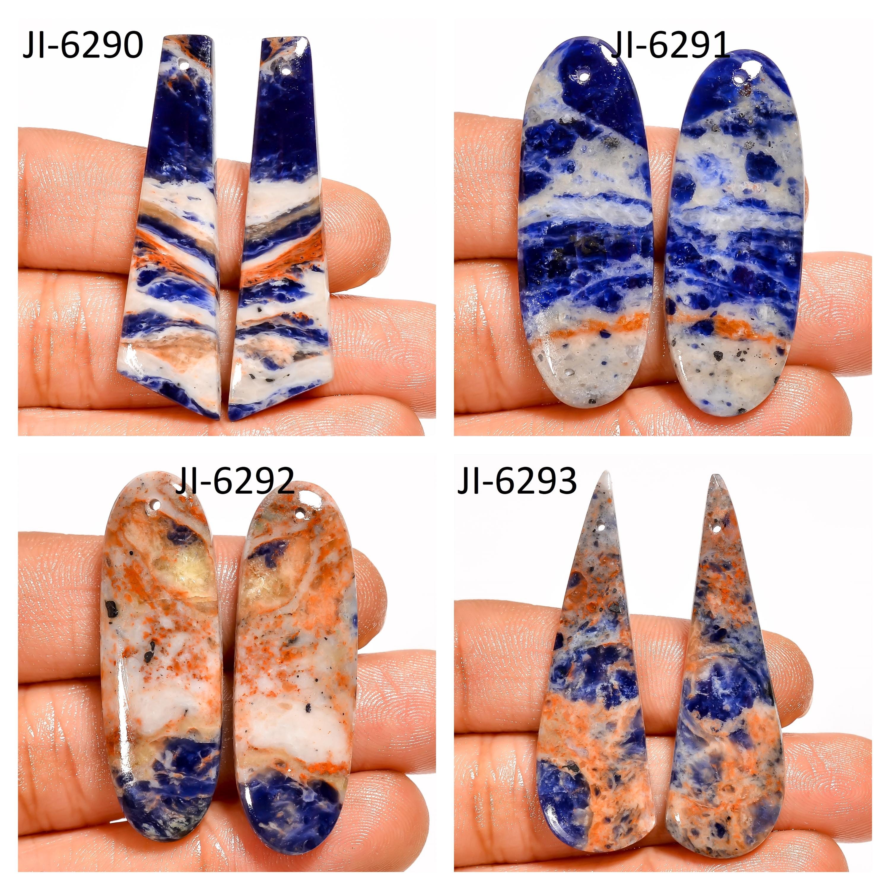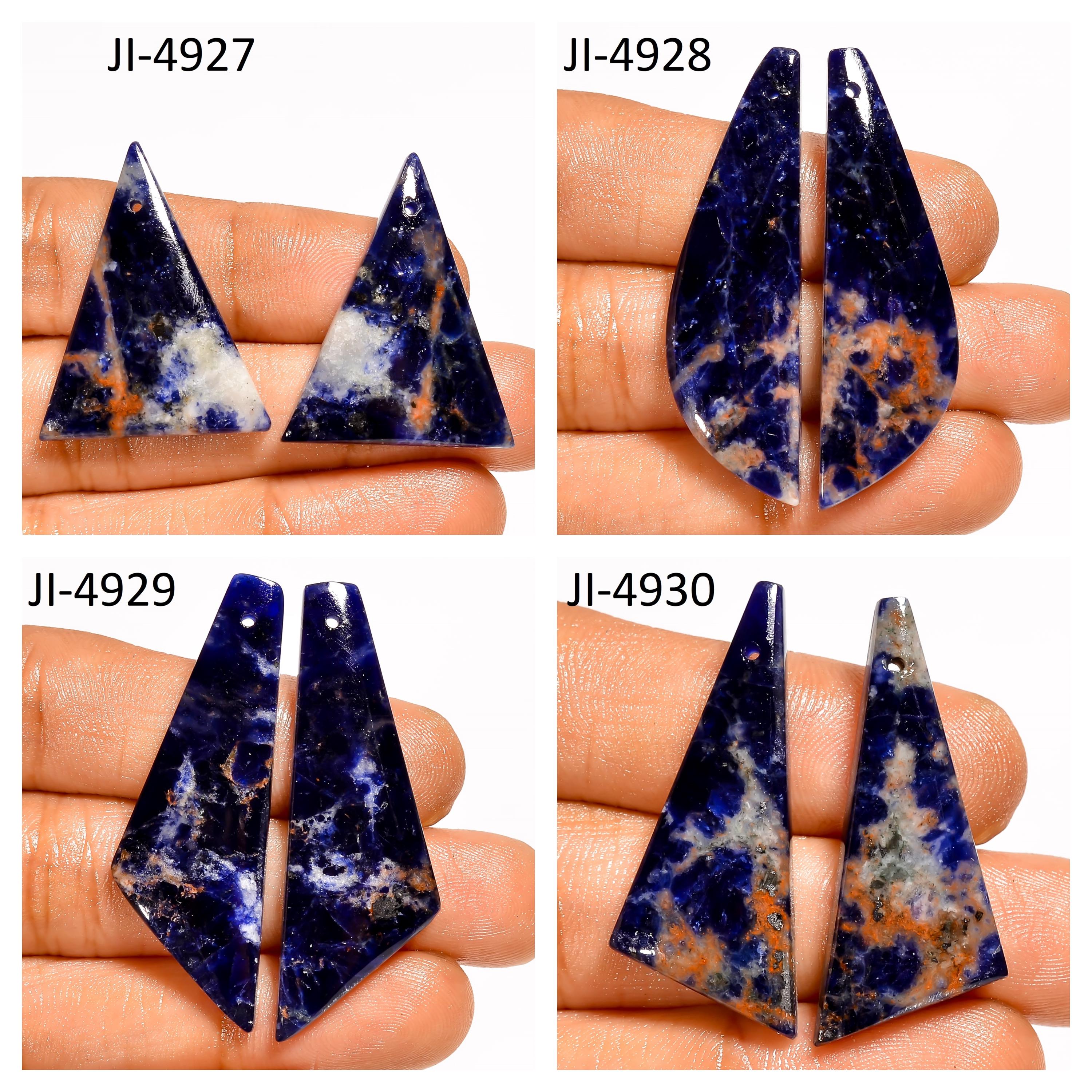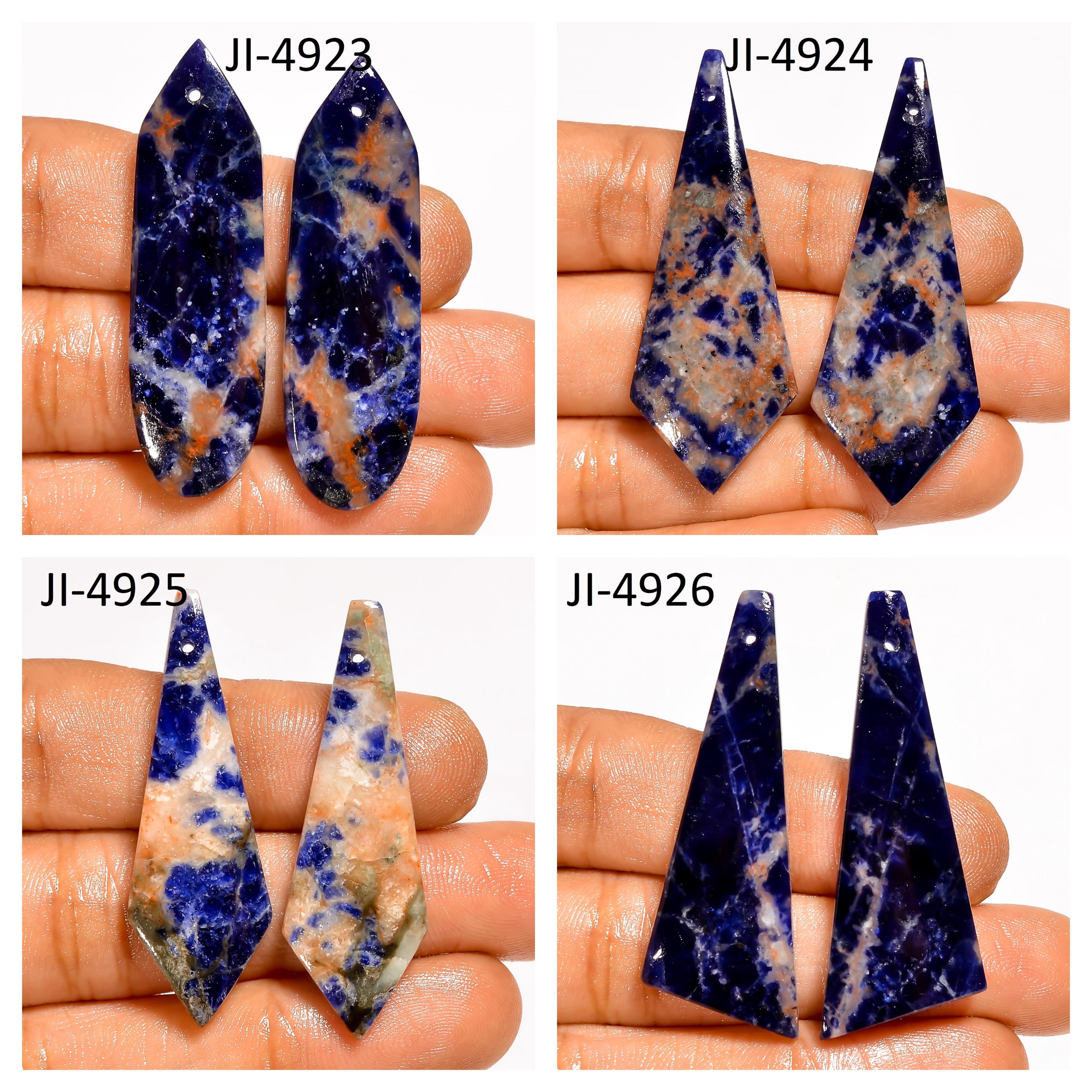 -Sodalite fancy shape drilled cabochon matching pairs-this listing is for a set of two cabochons-stones are flat on the back-Sodalite is a natural stone, no treatment