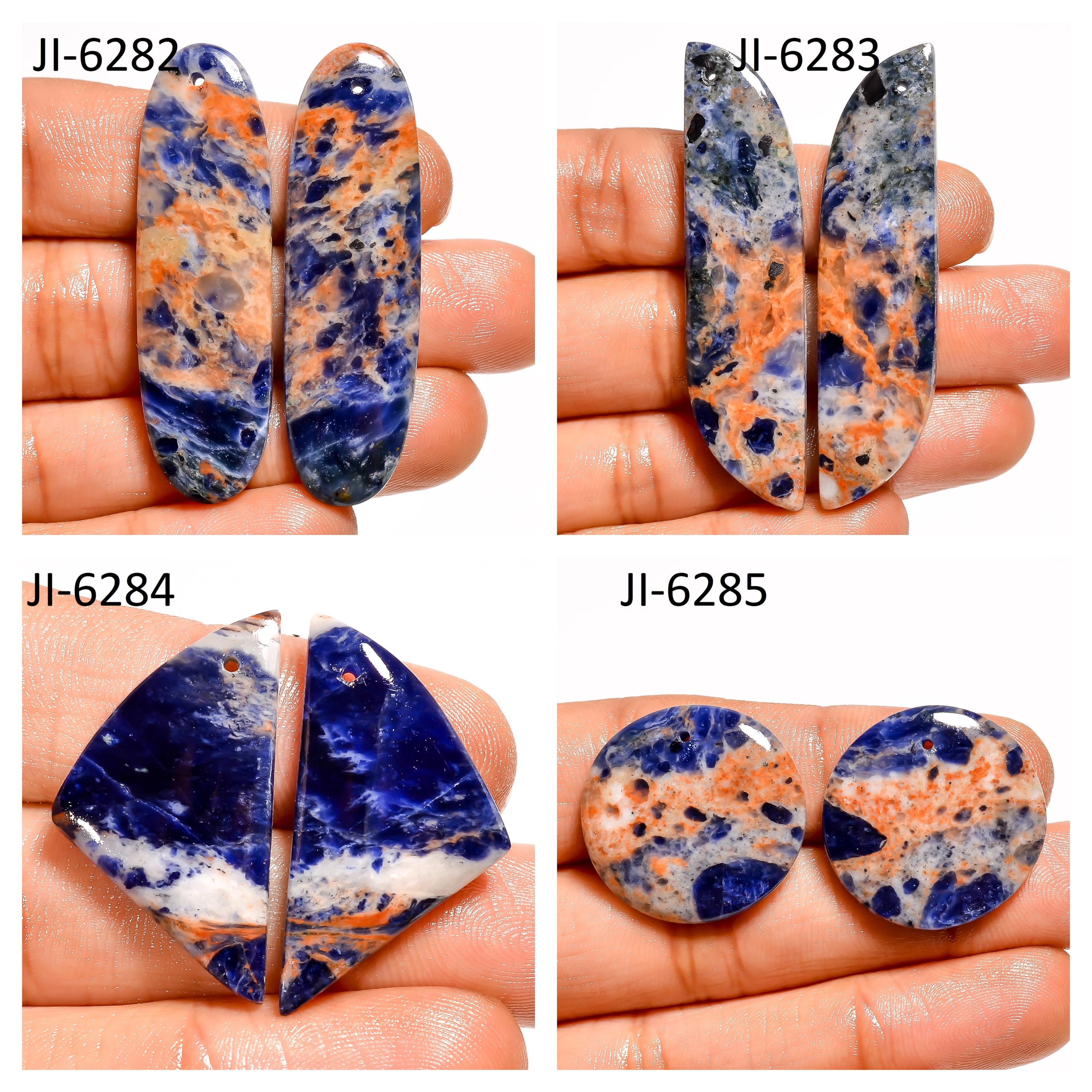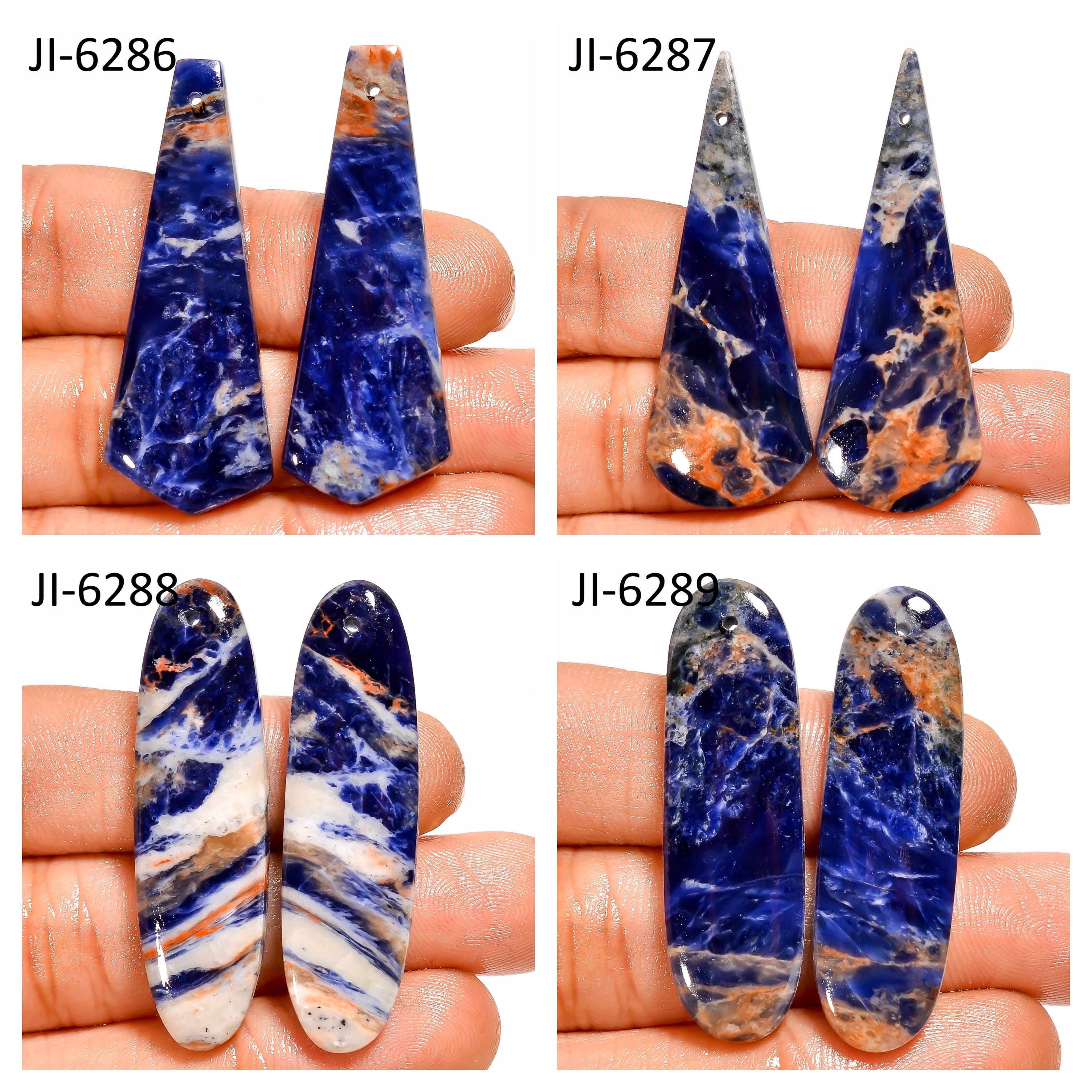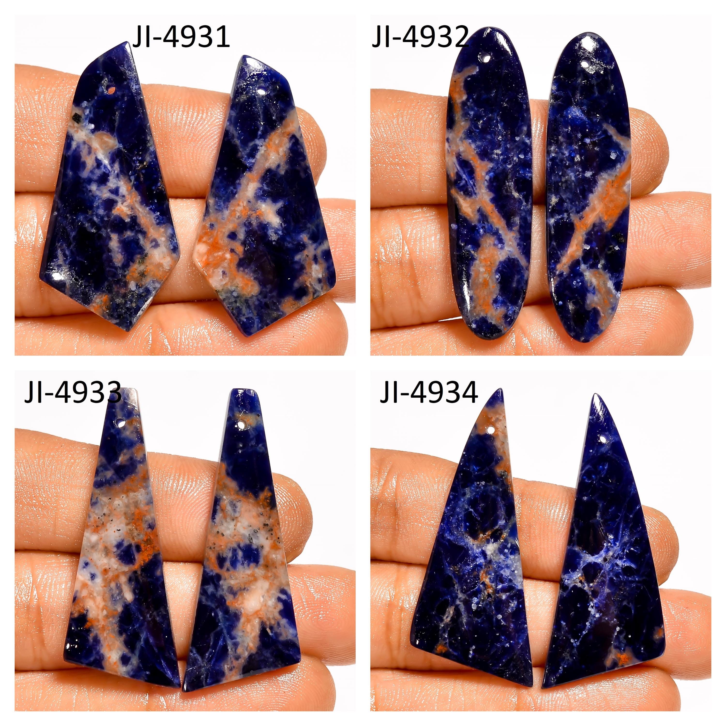 -Sodalite fancy shape drilled cabochon matching pairs-this listing is for a set of two cabochons-stones are flat on the back-Sodalite is a natural stone, no treatment