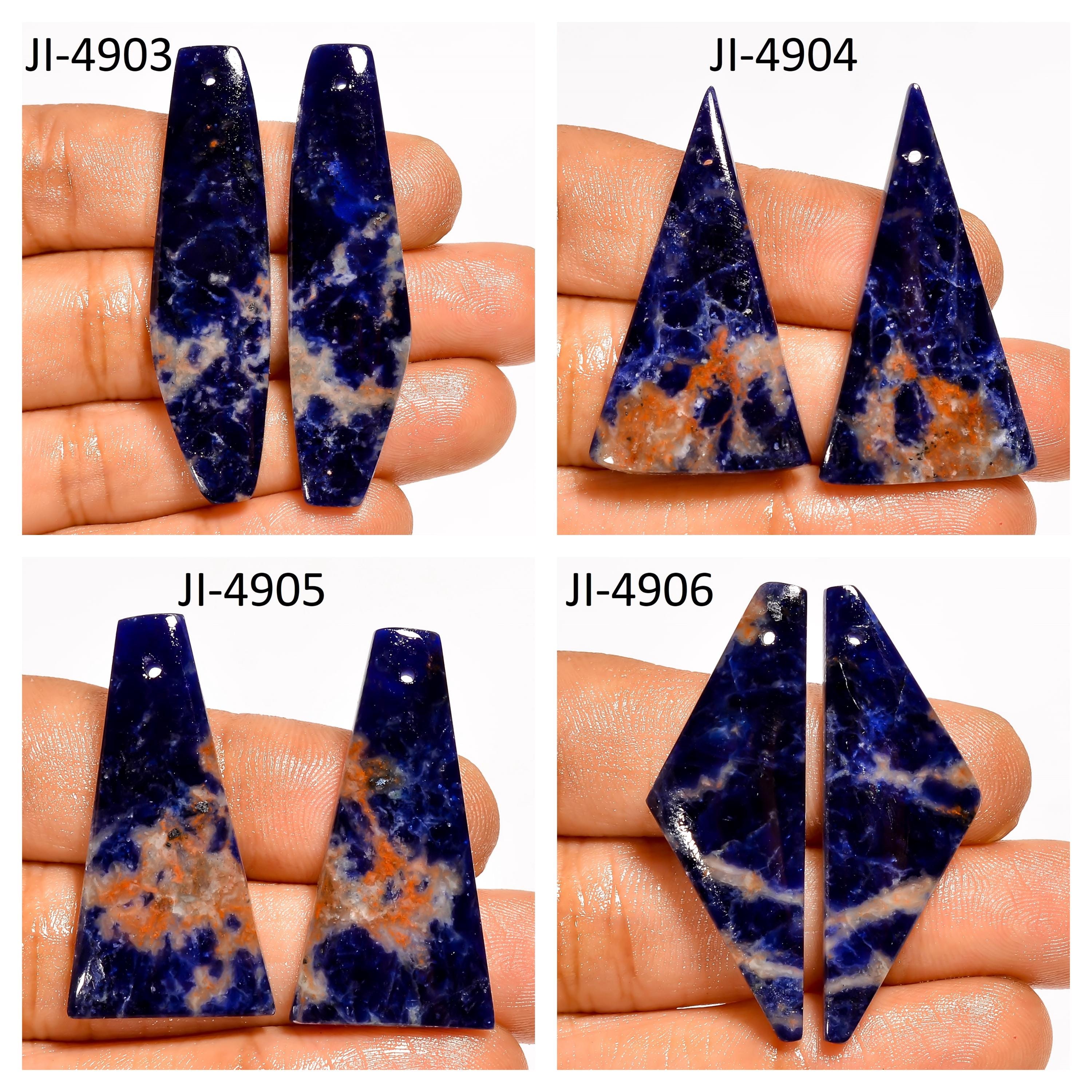 -Sodalite fancy shape drilled cabochon matching pairs-this listing is for a set of two cabochons-stones are flat on the back-Sodalite is a natural stone, no treatment
