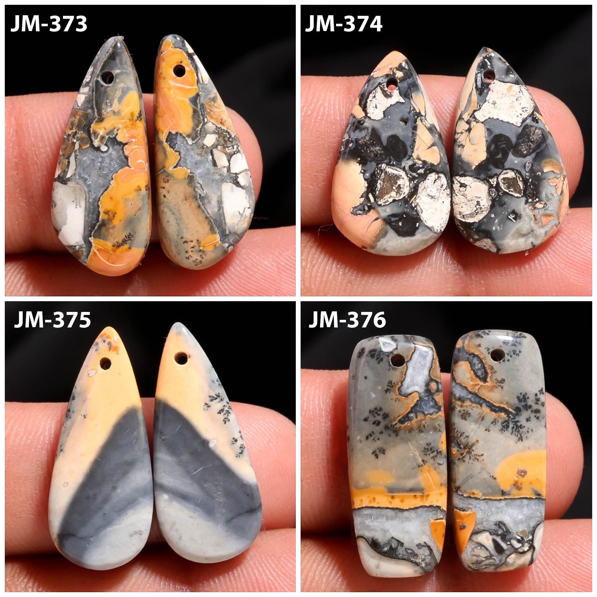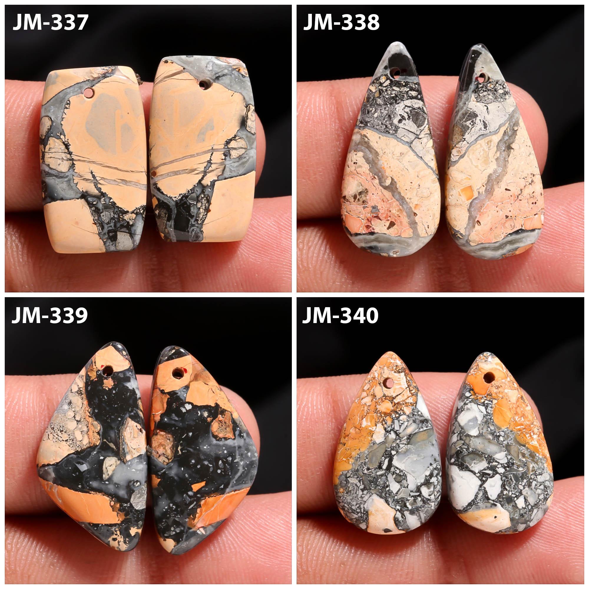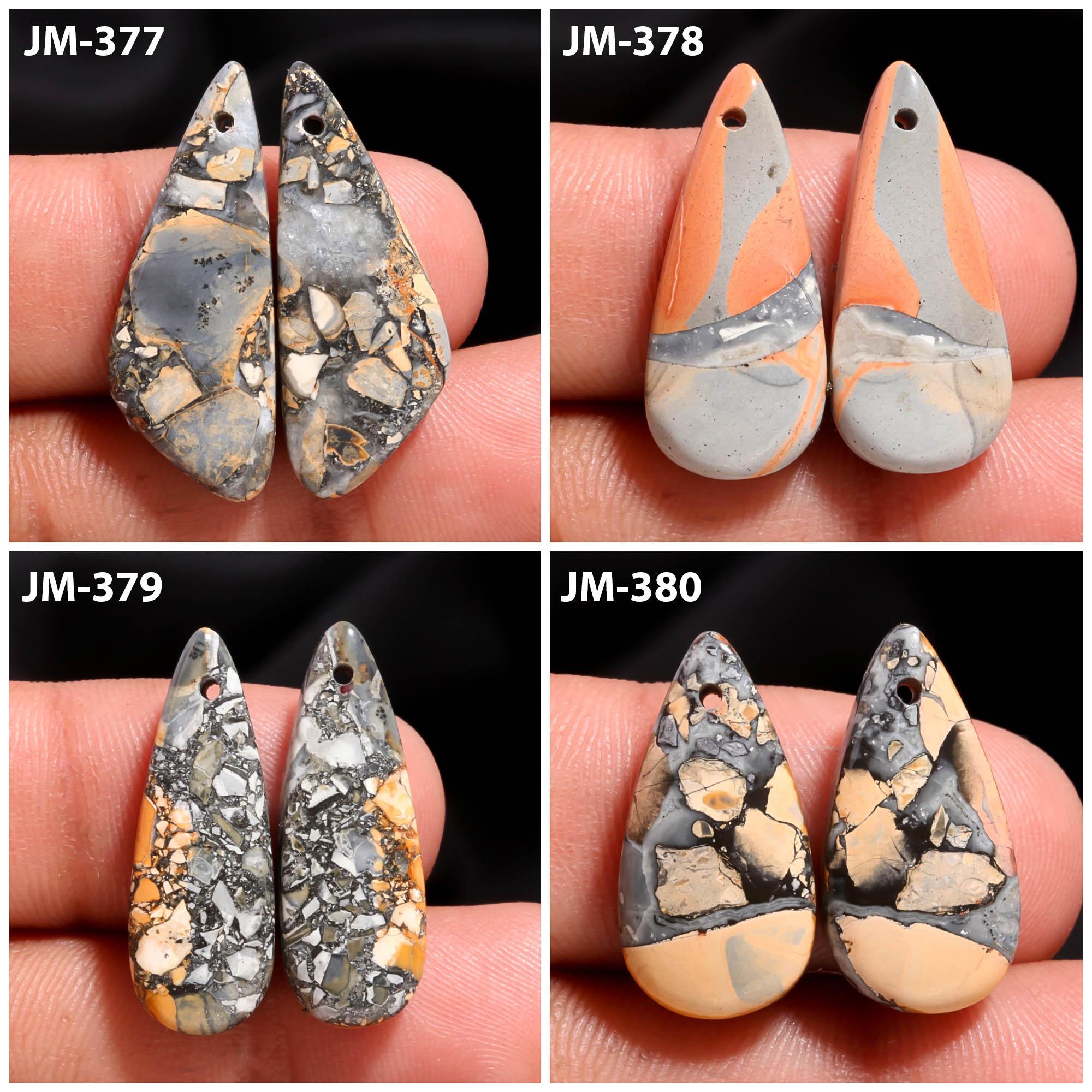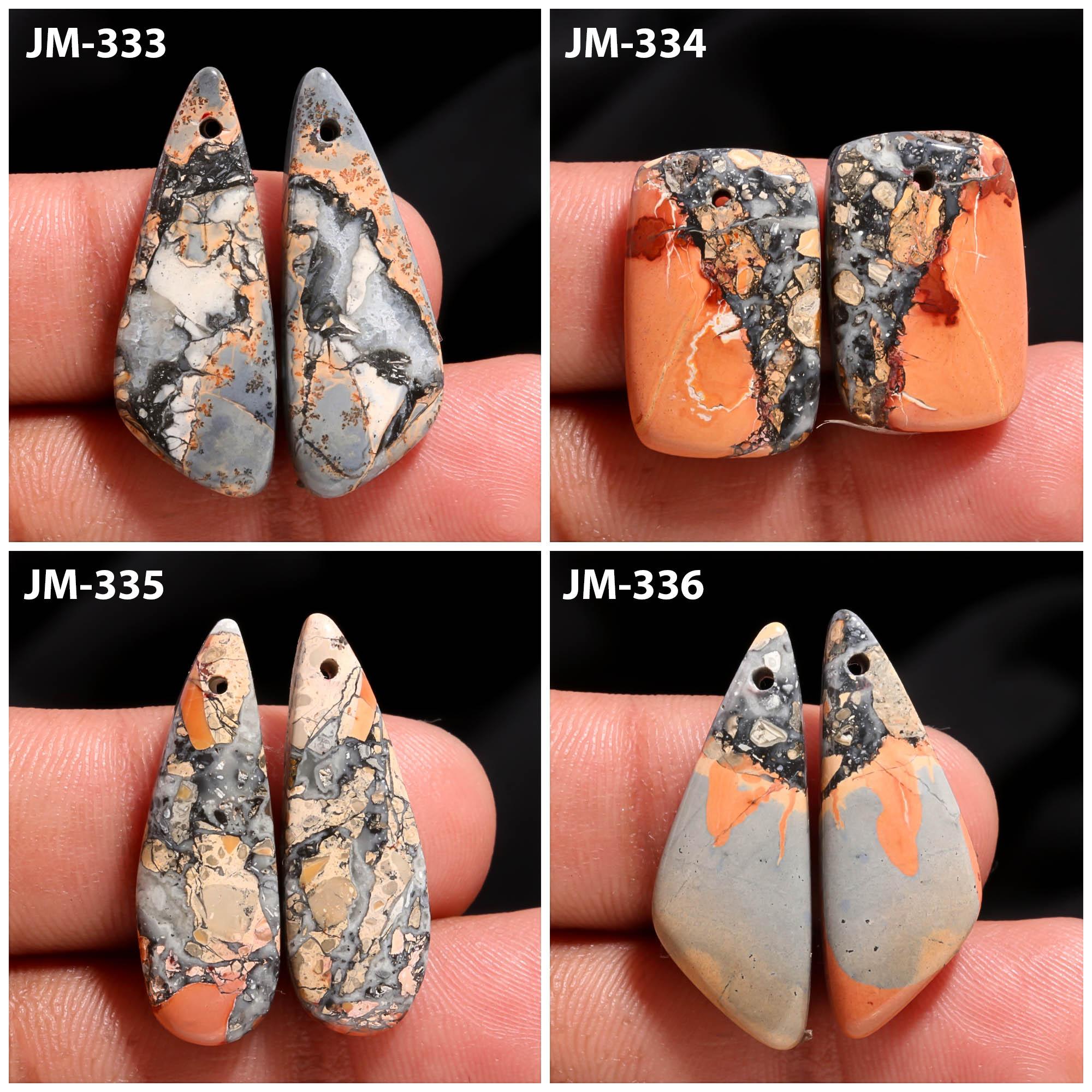 -Maligano Jasper fancy shape drilled cabochon matching pairs-this listing is for a set of two cabochons-stones are flat on the back-Maligano Jasper is a natural stone, no treatment