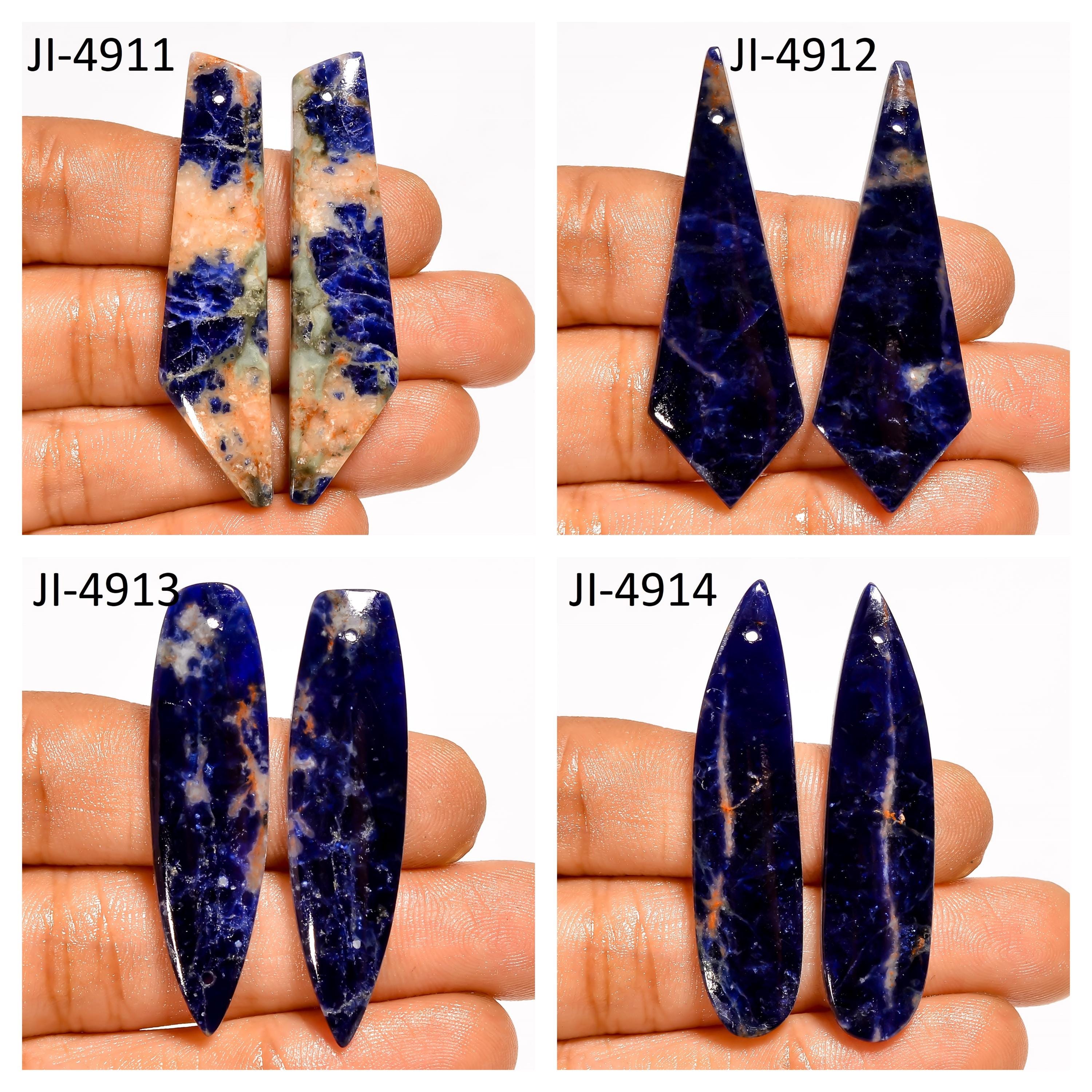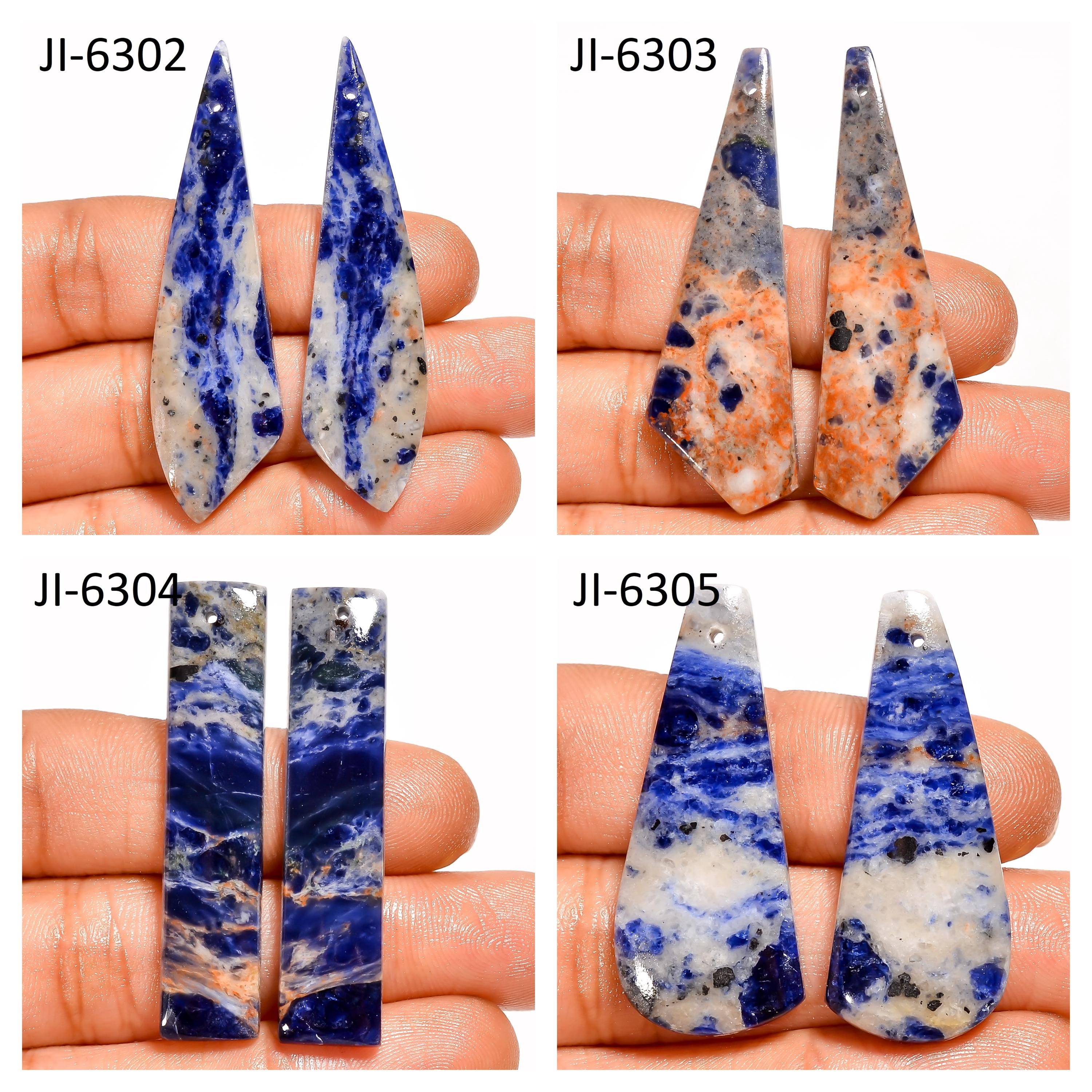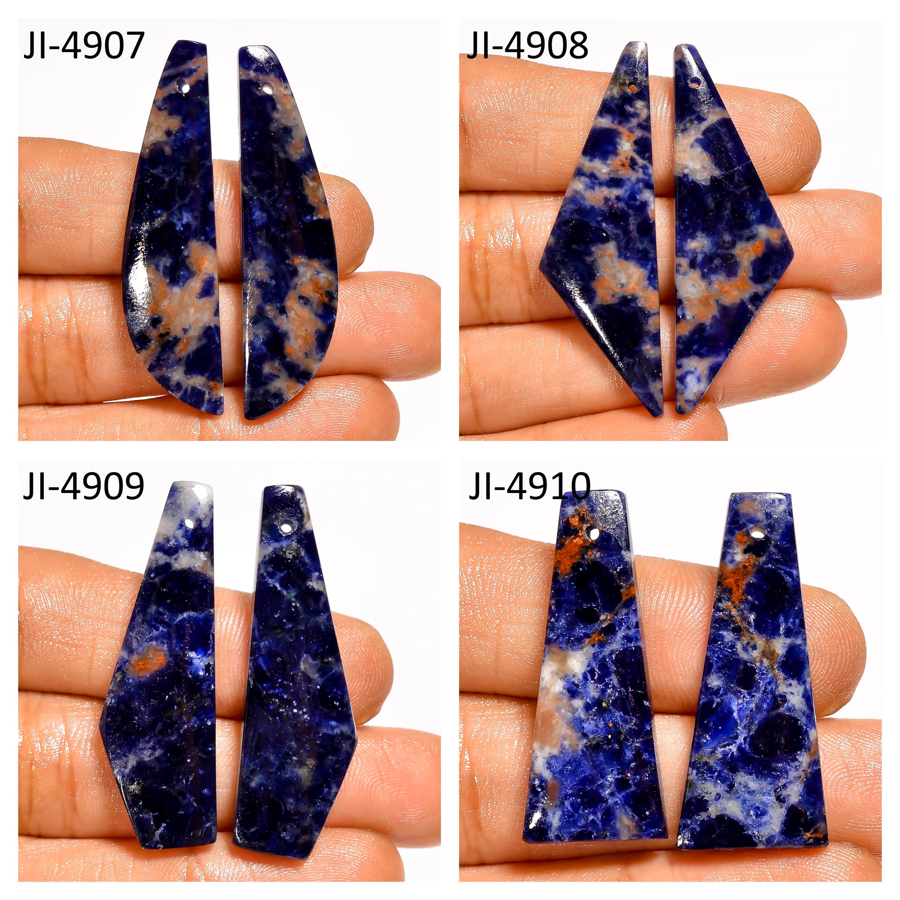 -Sodalite fancy shape drilled cabochon matching pairs-this listing is for a set of two cabochons-stones are flat on the back-Sodalite is a natural stone, no treatment