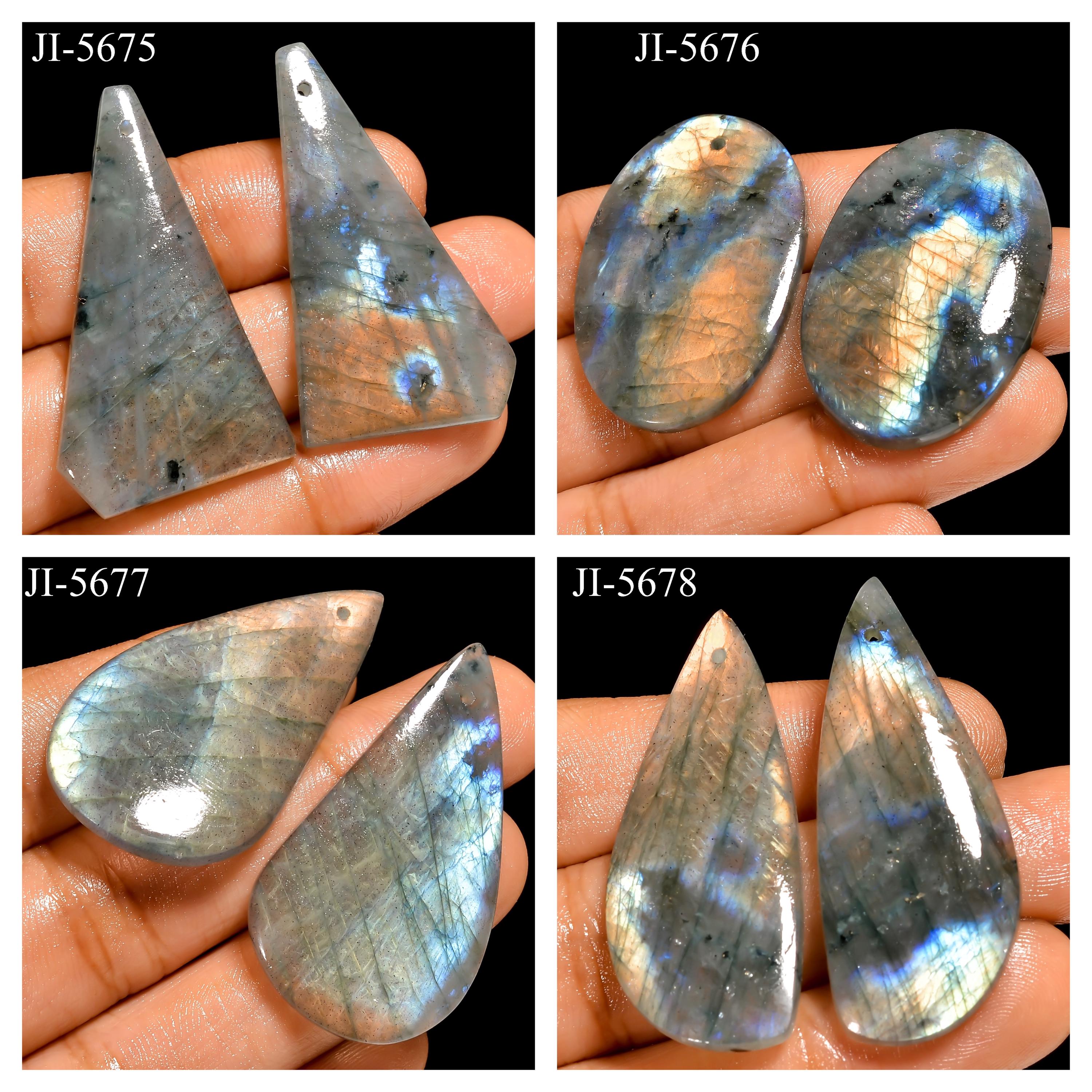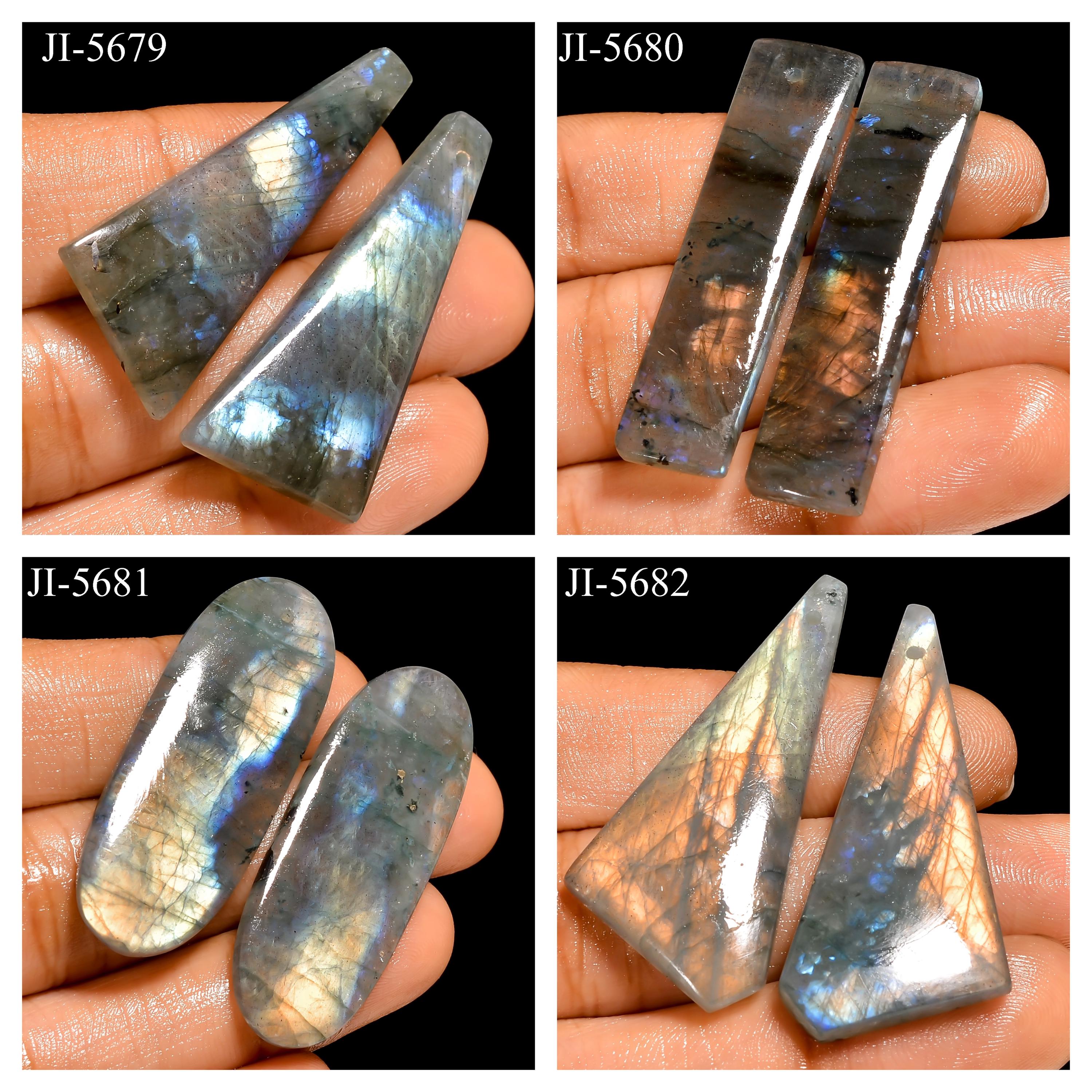 -Labradorite fancy shape drilled cabochon matching pairs-this listing is for a set of two cabochons-stones are flat on the back-Labradorite is a natural stone, no treatment
