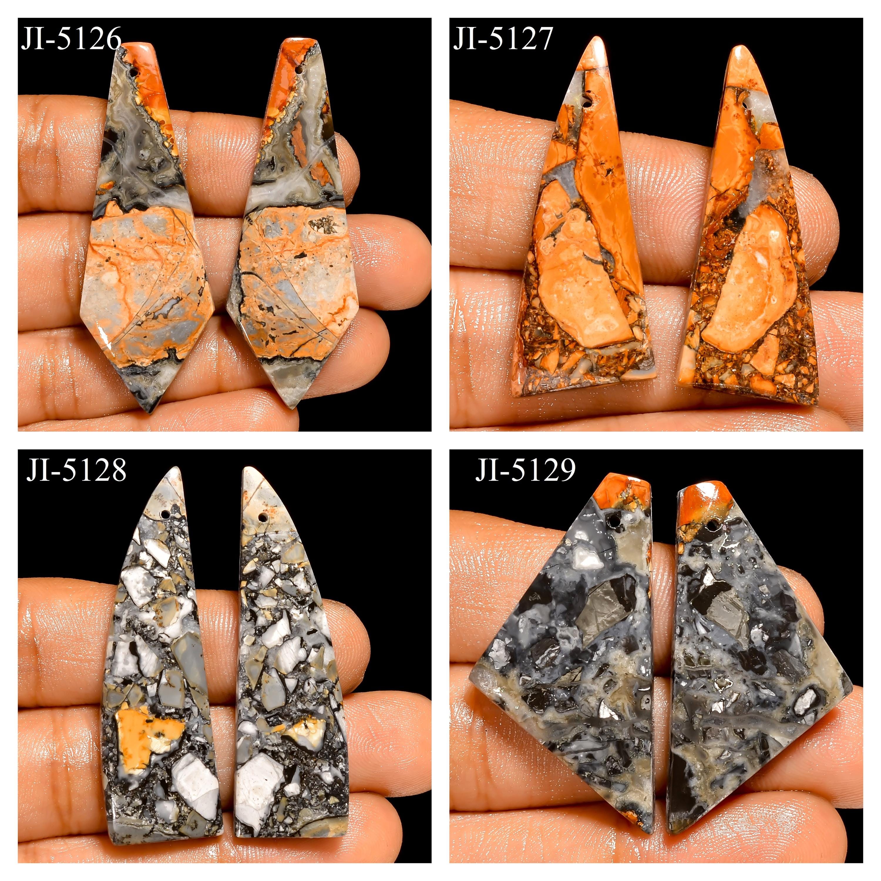 -Maligano Jasper fancy shape drilled cabochon matching pairs-this listing is for a set of two cabochons-stones are flat on the back-Maligano Jasper is a natural stone, no treatment