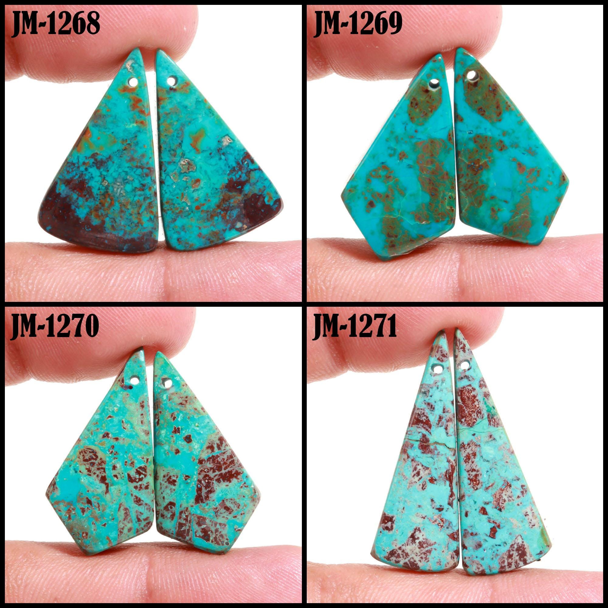 -Chrysocolla fancy shape drilled cabochon matching pairs-this listing is for a set of two cabochons-stones are flat on the back-Chrysocolla is a natural stone, no treatment