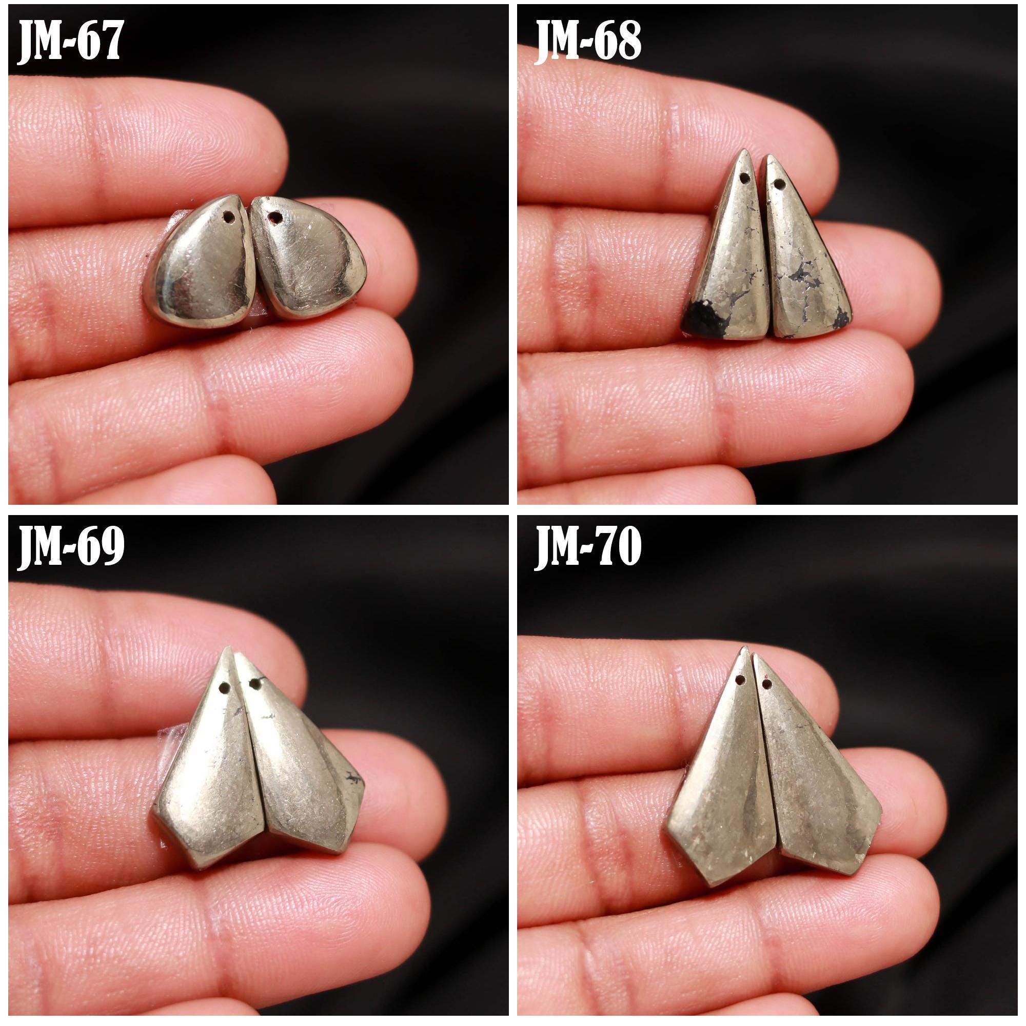 -Pyrite fancy shape drilled cabochon matching pairs-this listing is for a set of two cabochons-stones are flat on the back-Pyrite is a natural stone, no treatment
