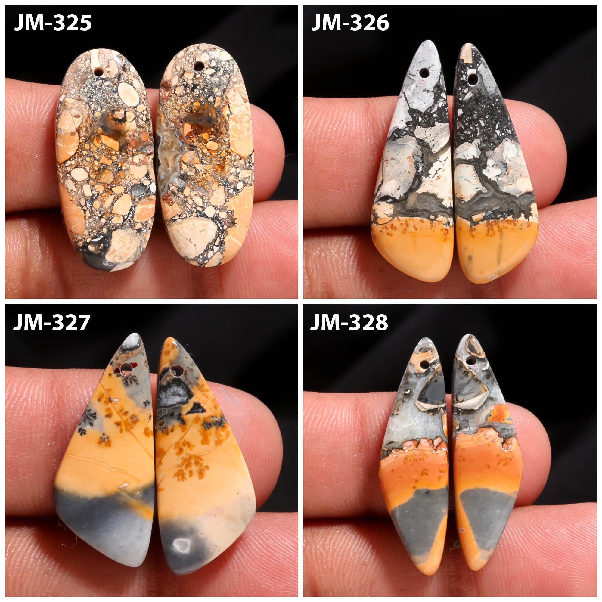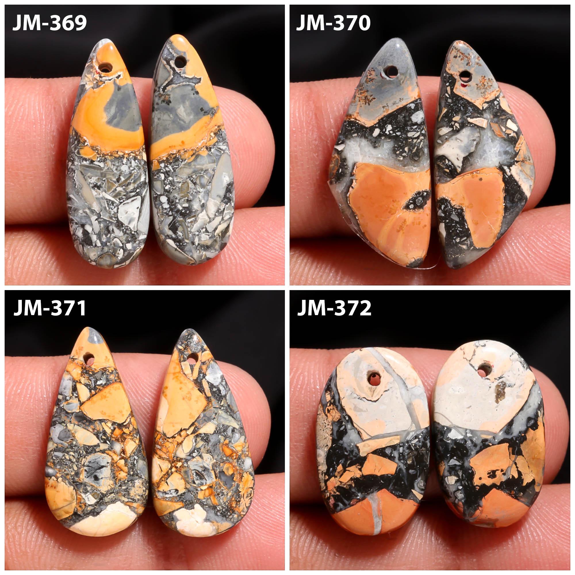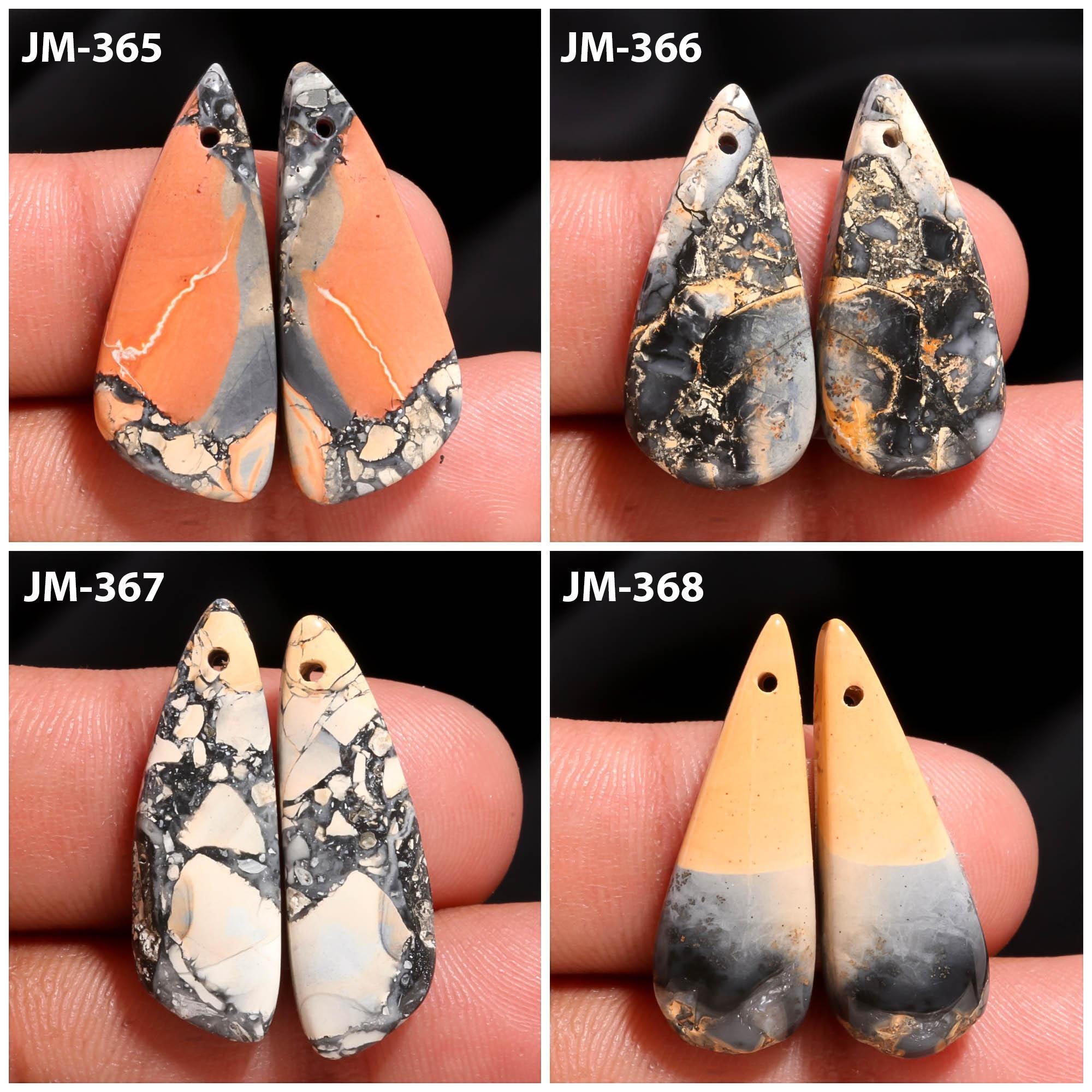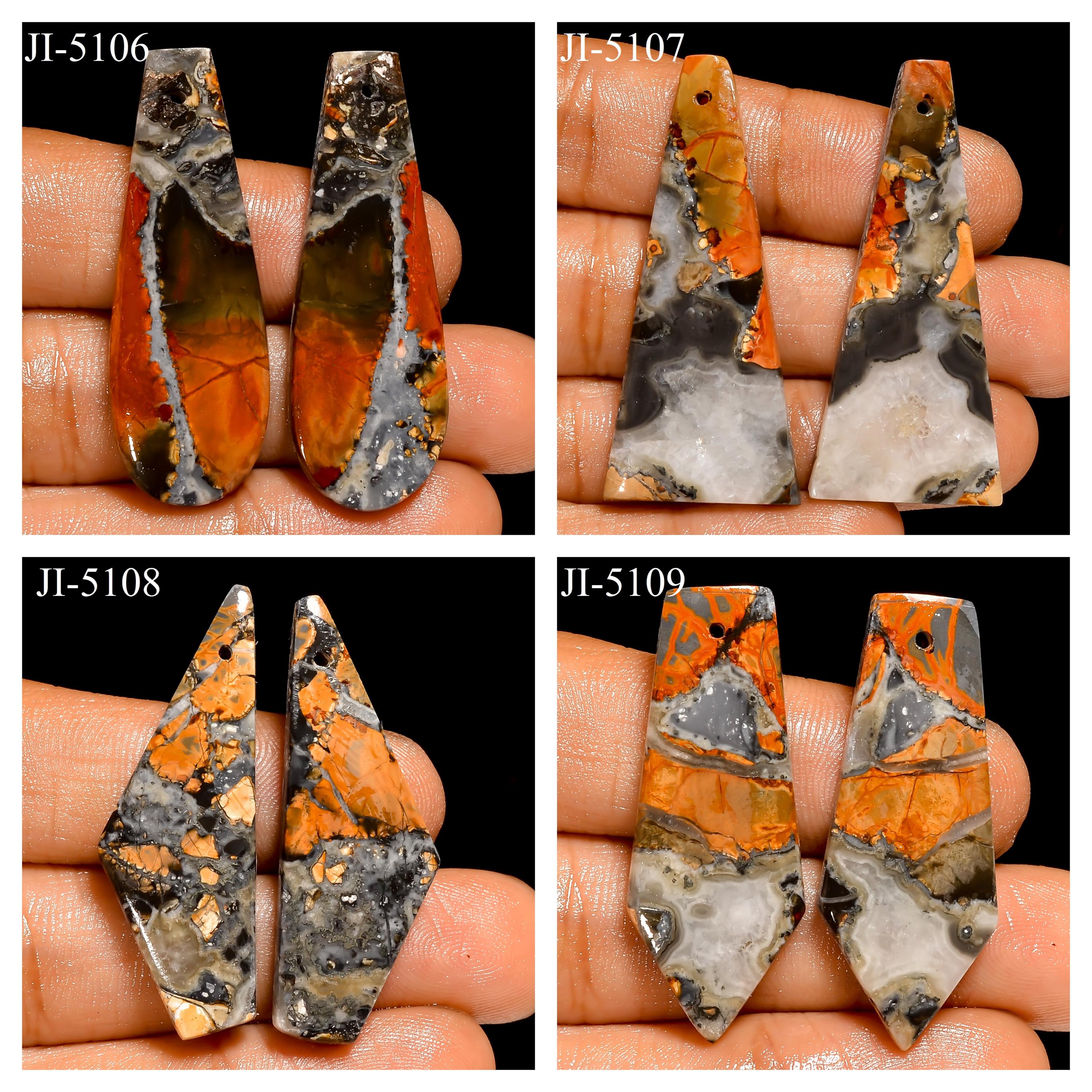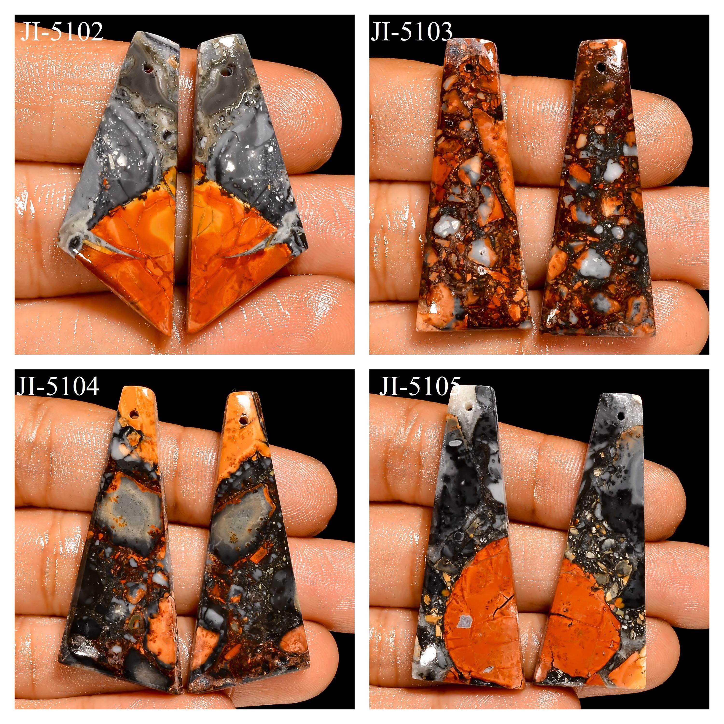 -Maligano Jasper fancy shape drilled cabochon matching pairs-this listing is for a set of two cabochons-stones are flat on the back-Maligano Jasper is a natural stone, no treatment