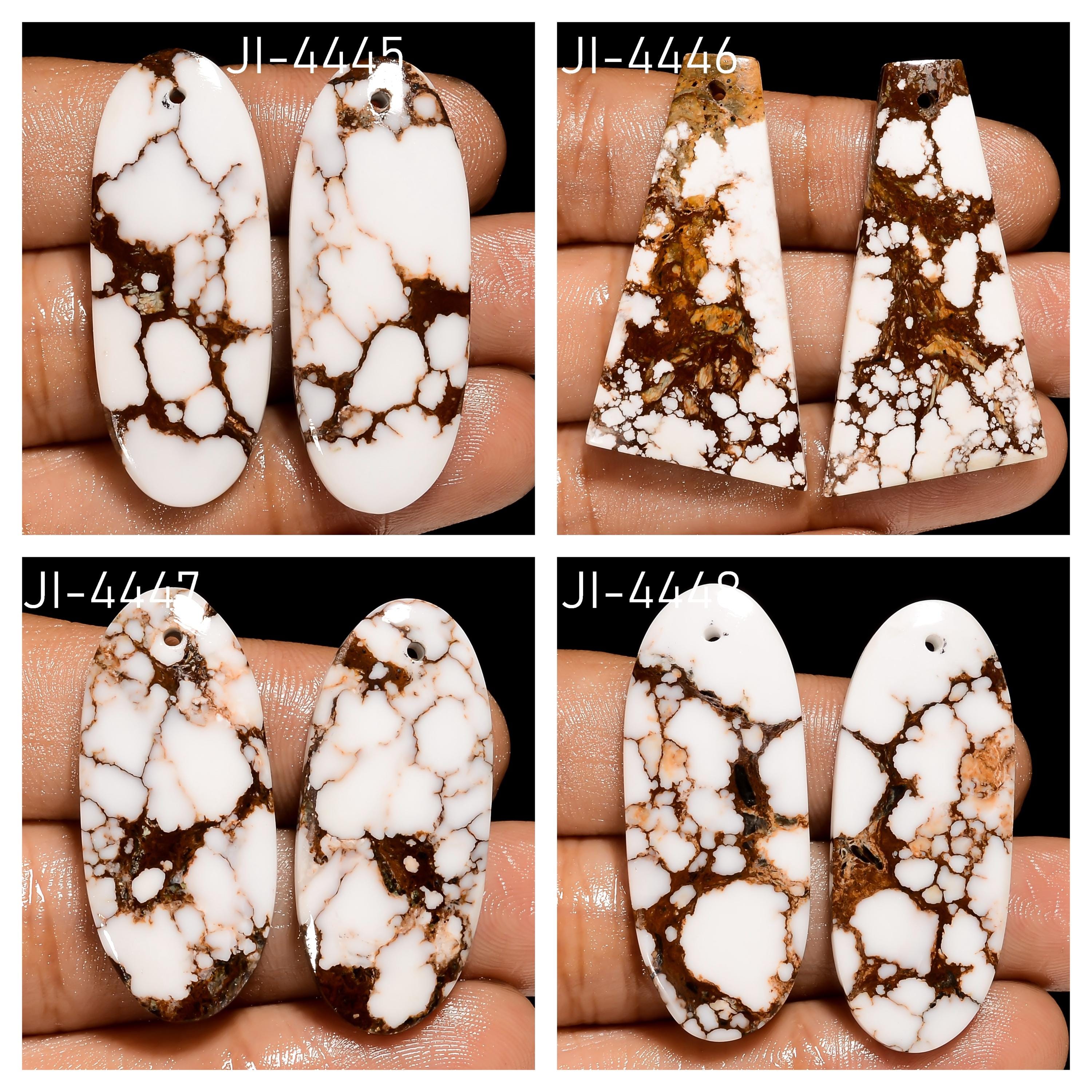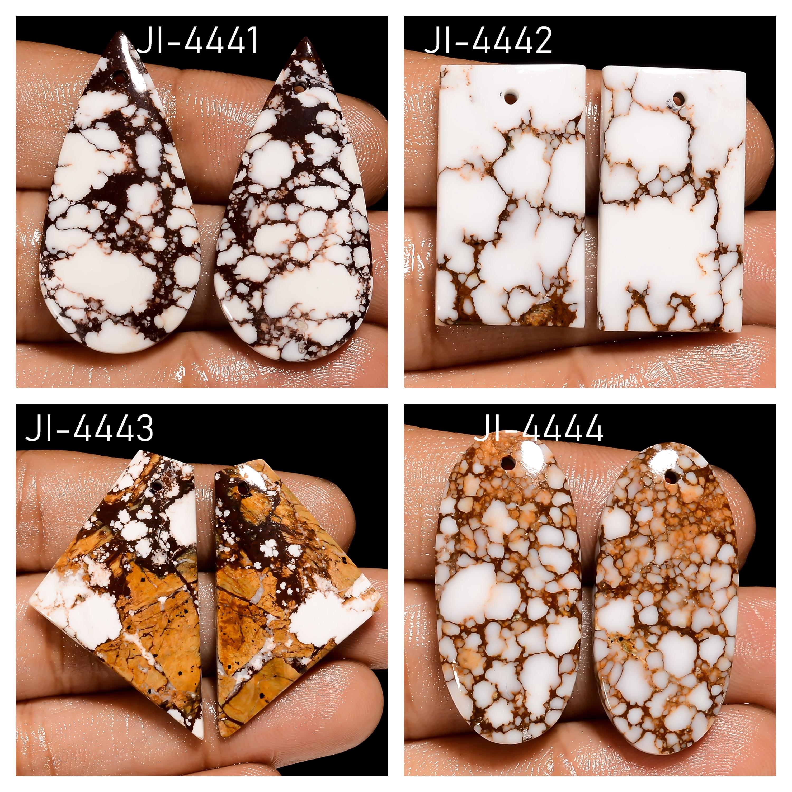 -Wild Horse Jasper fancy shape drilled cabochon matching pairs-this listing is for a set of two cabochons-stones are flat on the back-Wild Horse Jasper is a natural stone, no treatment