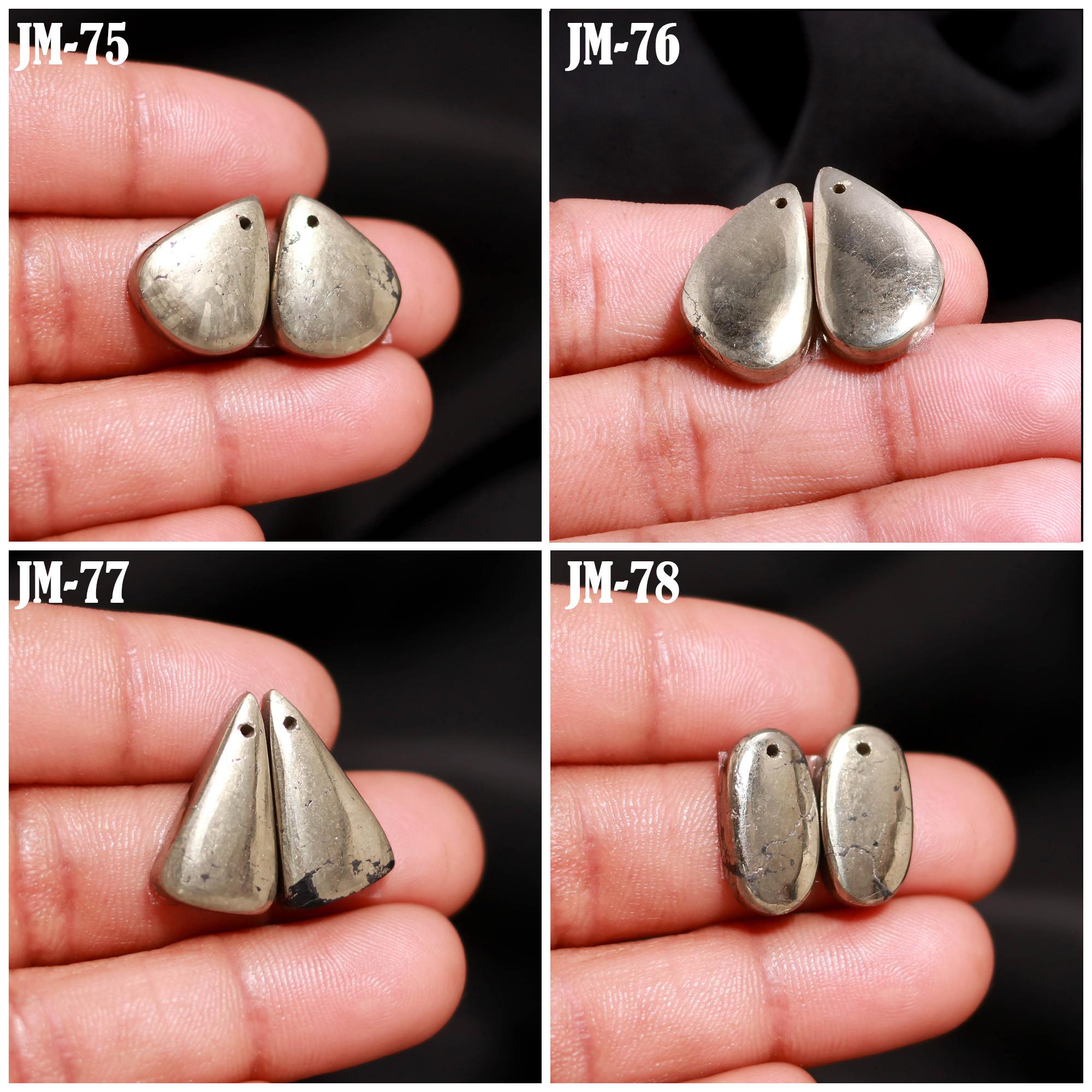 -Pyrite fancy shape drilled cabochon matching pairs-this listing is for a set of two cabochons-stones are flat on the back-Pyrite is a natural stone, no treatment
