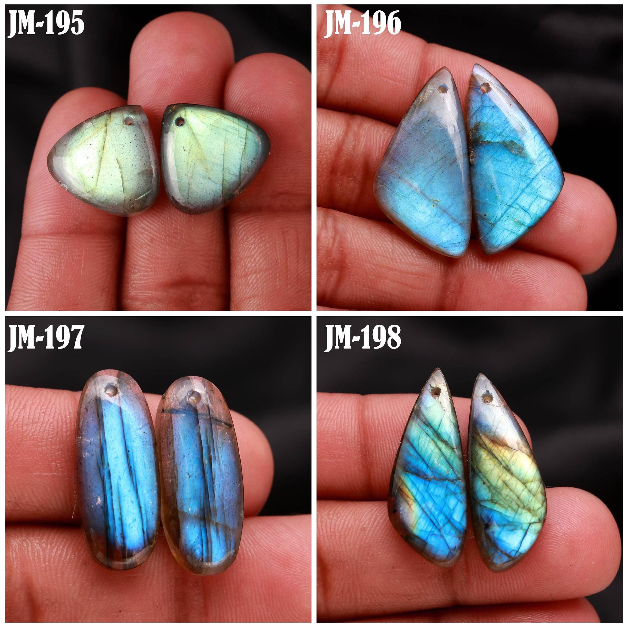 -Labradorite fancy shape drilled cabochon matching pairs-this listing is for a set of two cabochons-stones are flat on the back-Labradorite is a natural stone, no treatment