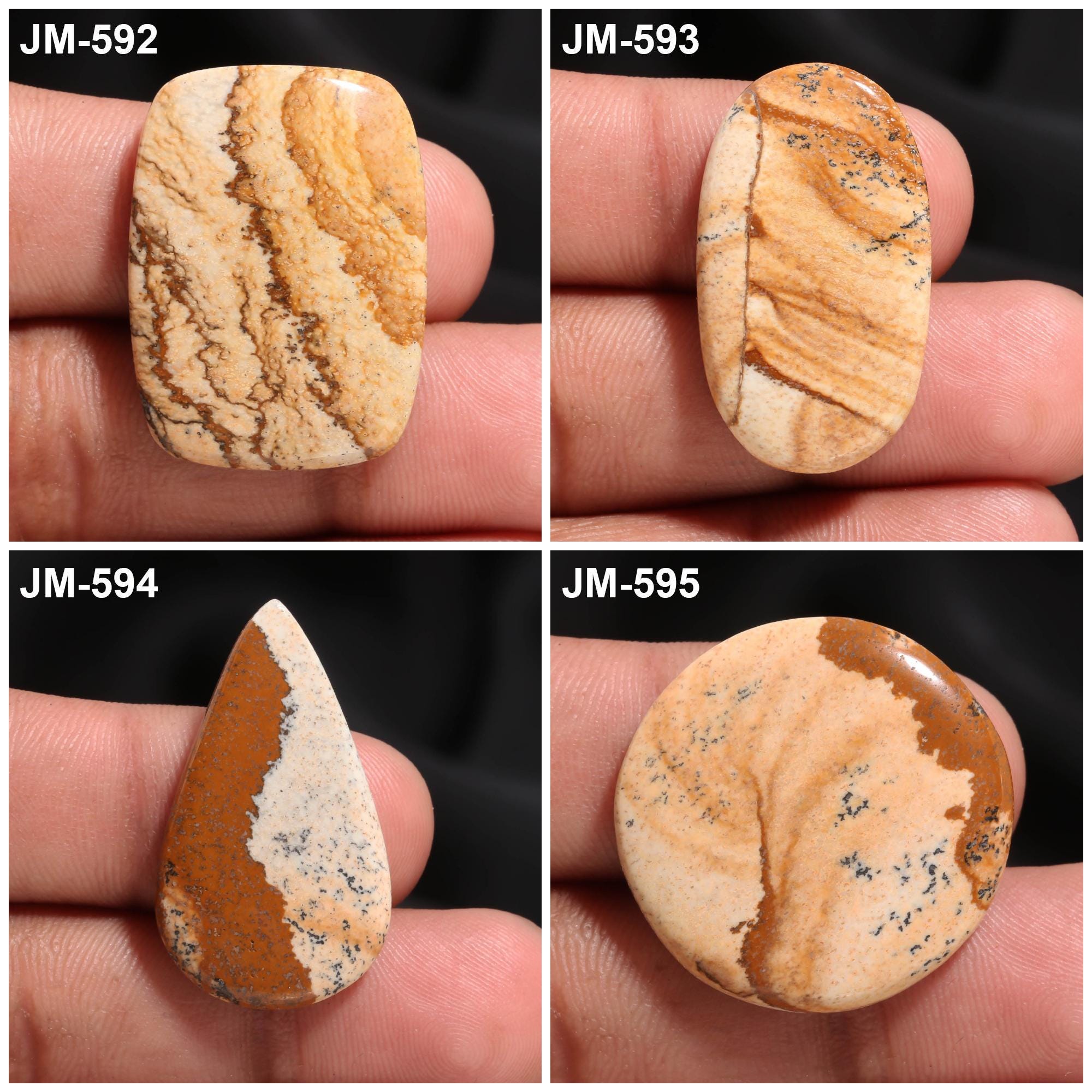 -Picture Jasper fancy shape un-drilled cabochon single pieces-this listing is for one cabochon-stones are flat on the back-Picture Jasper is a natural stone, no treatment-sorry we do not offer drilling service