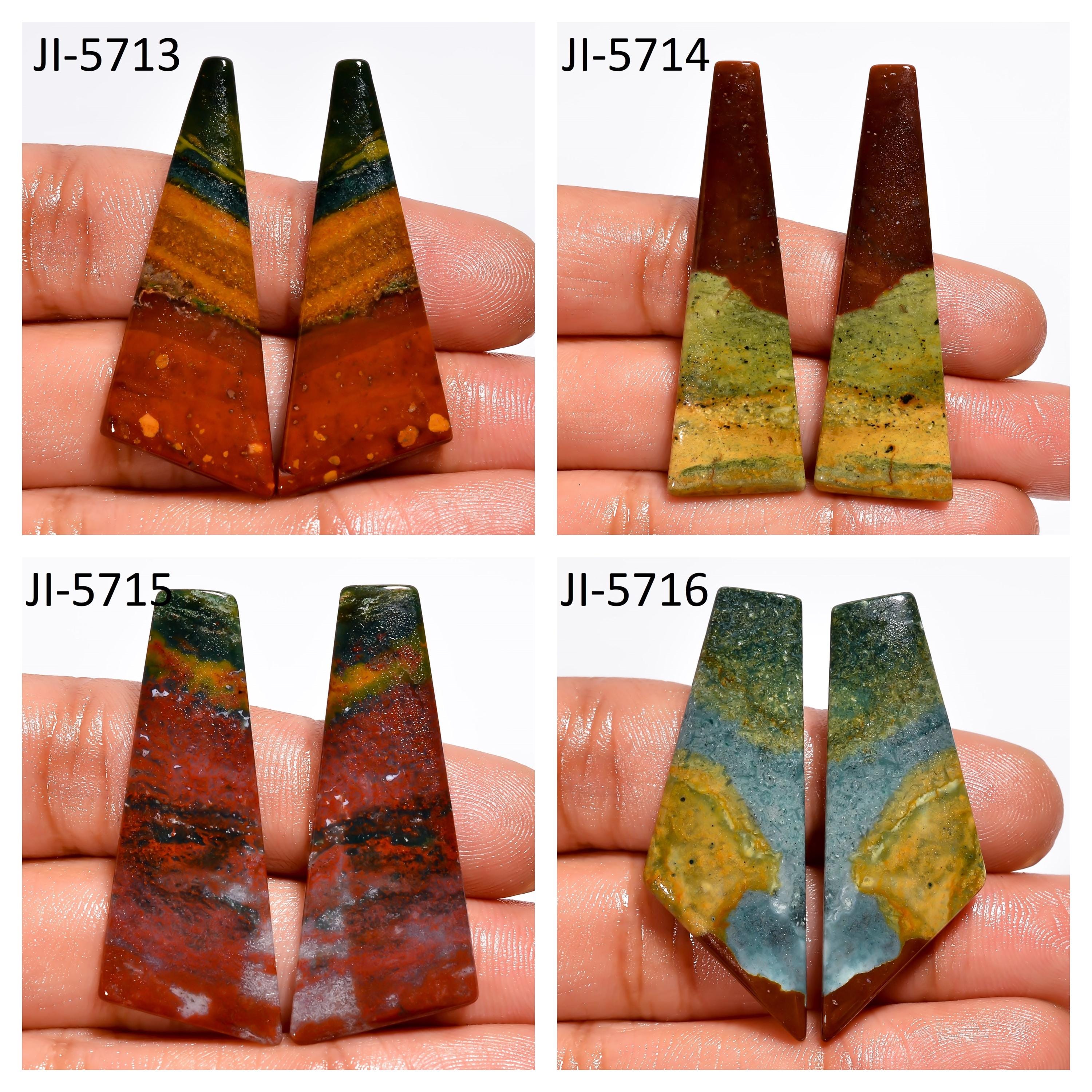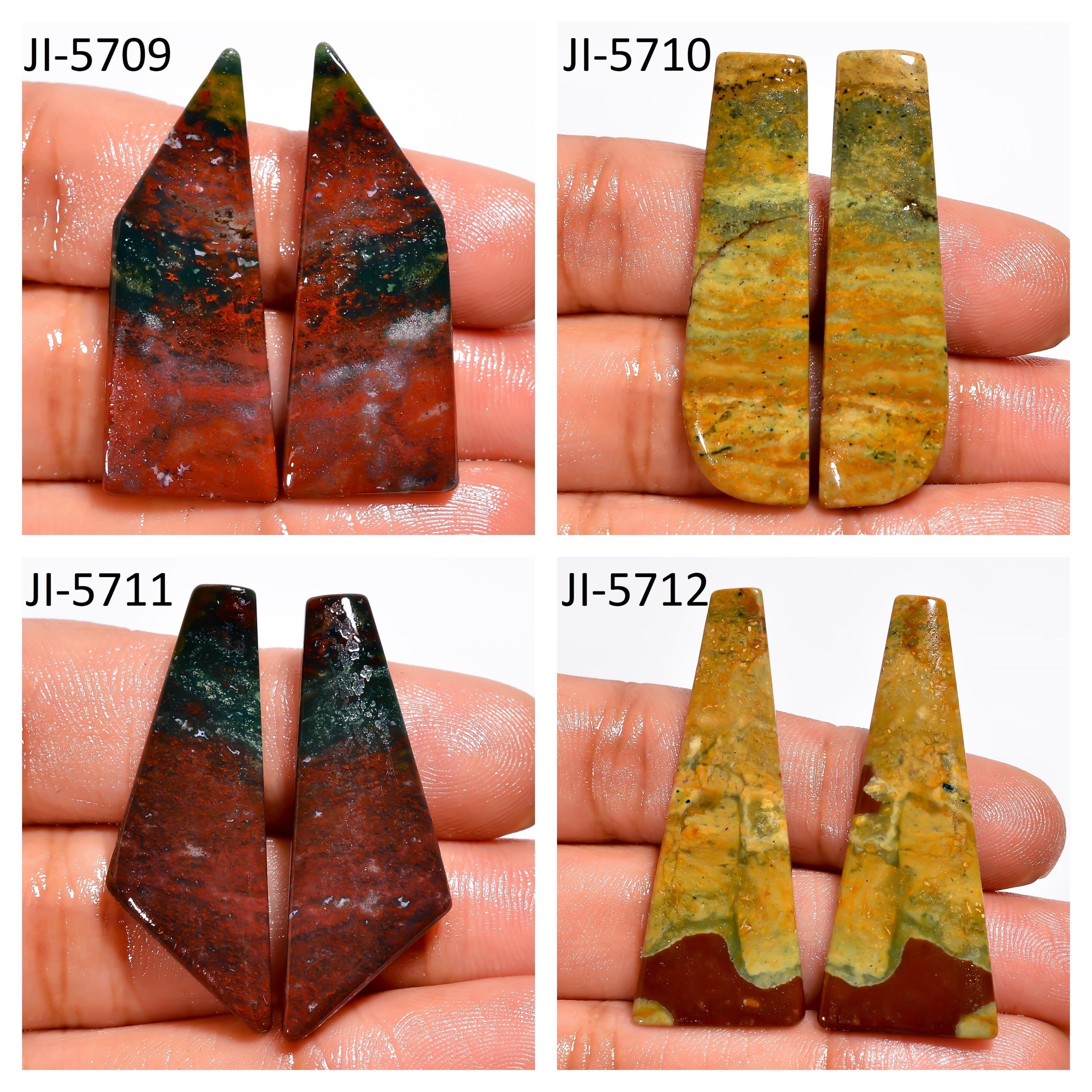 -Bloodstone fancy shape un-drilled cabochon matching pairs-this listing is for a set of two cabochons-stones are flat on the back-Bloodstone is a natural stone, no treatment-sorry we do not offer drilling service