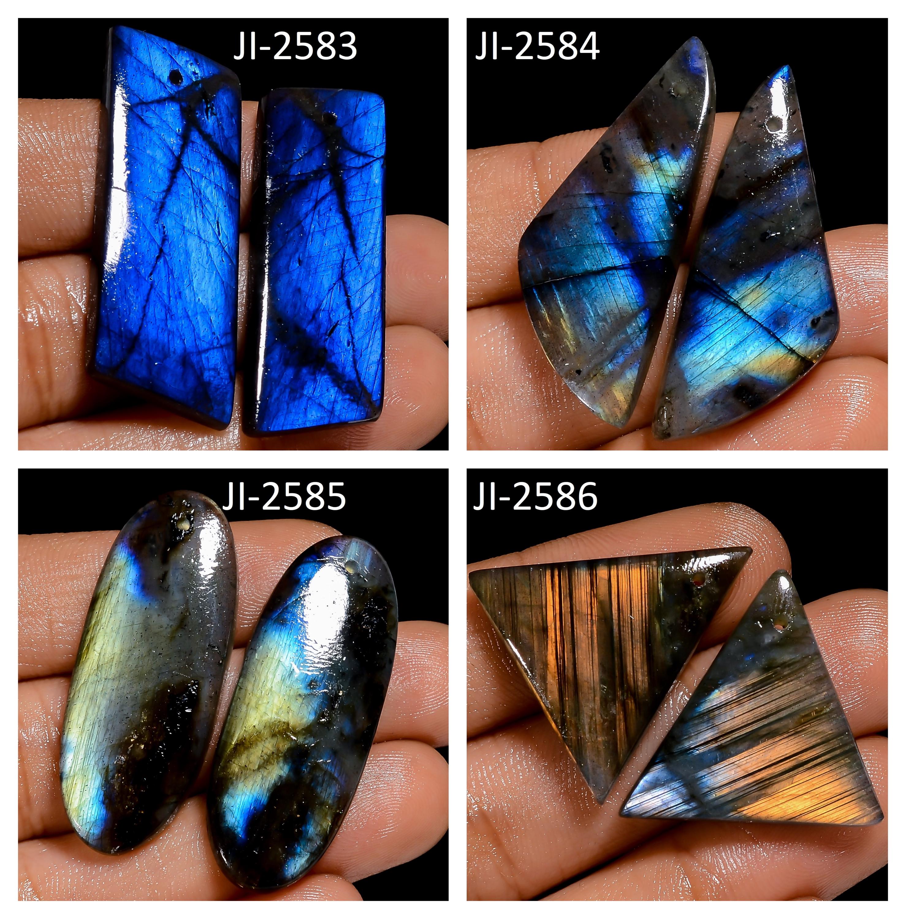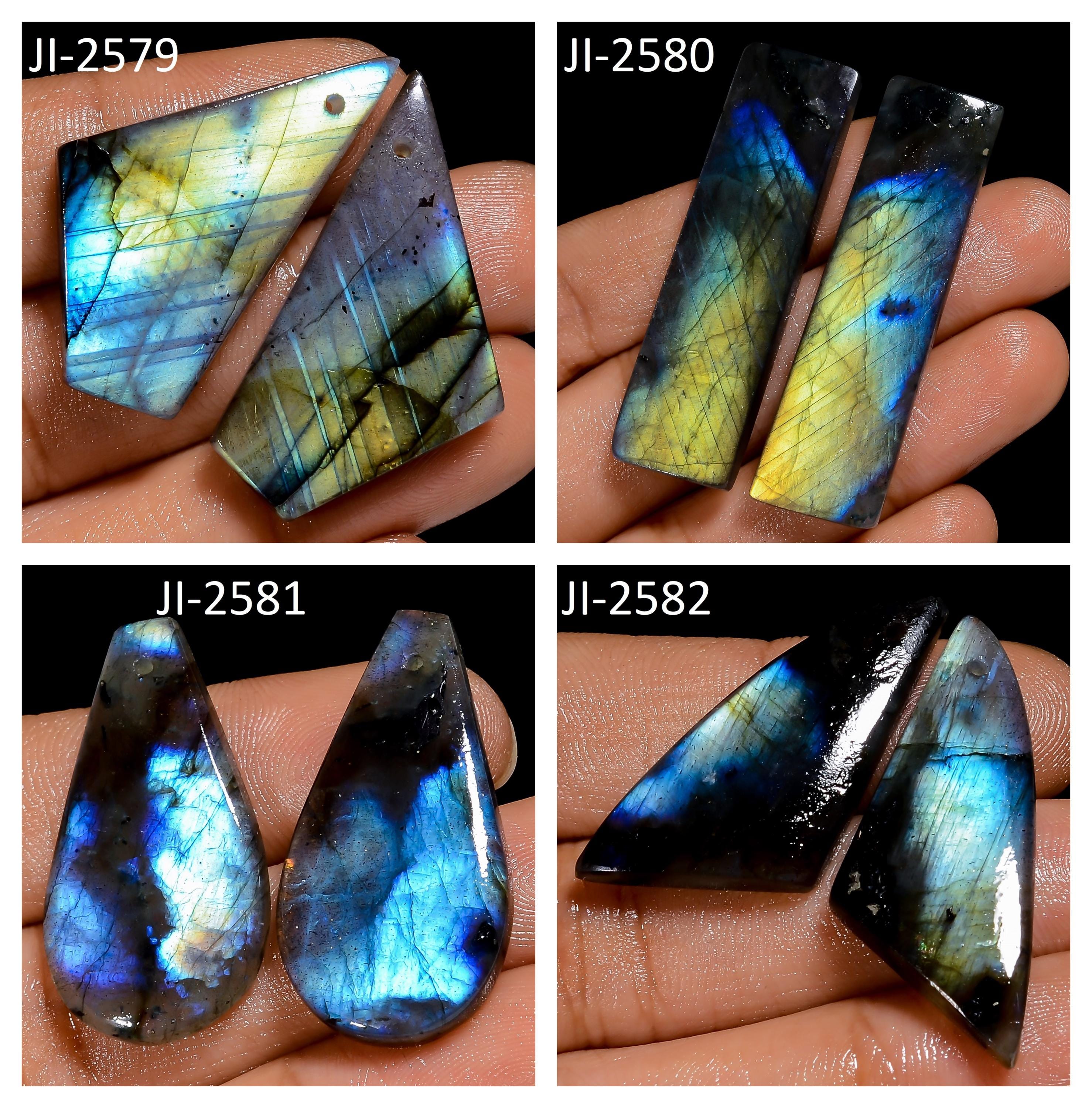 -Labradorite fancy shape drilled cabochon matching pairs-this listing is for a set of cabochons-stones are flat on the back-Labradorite is a natural stone, no treatment