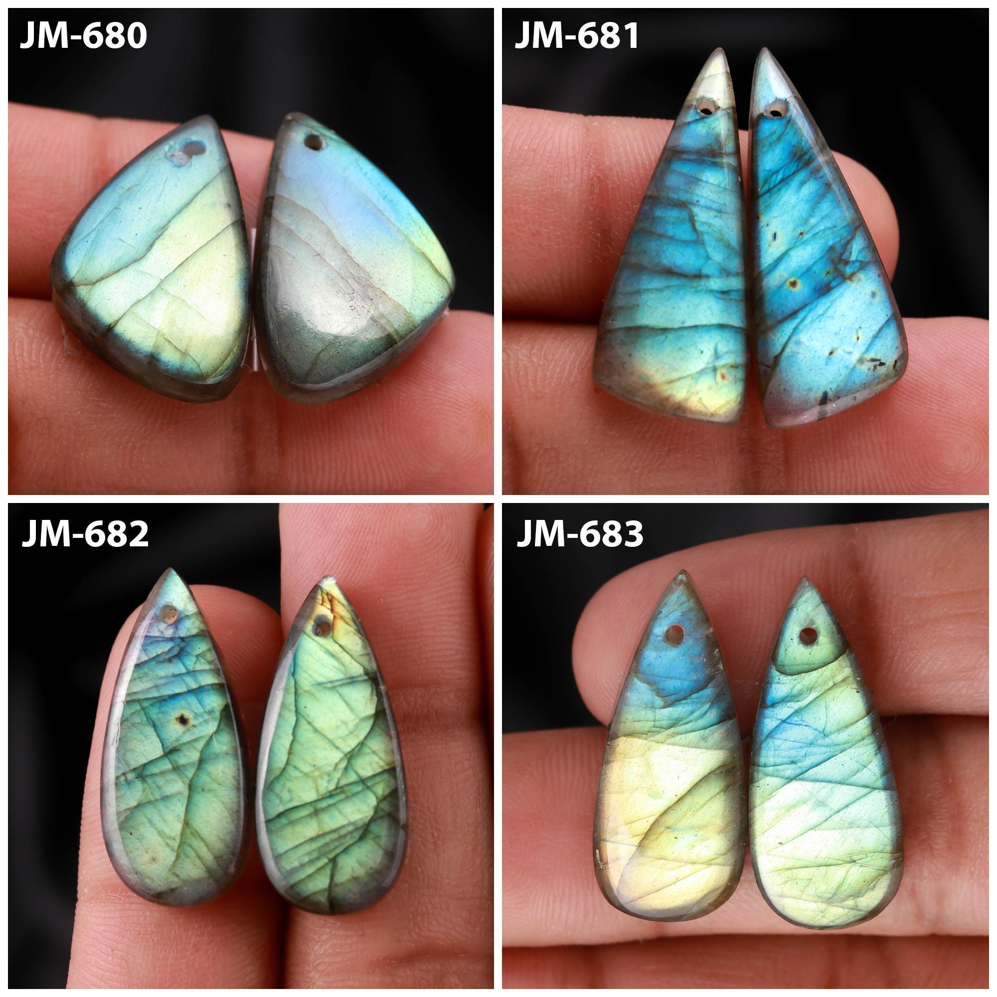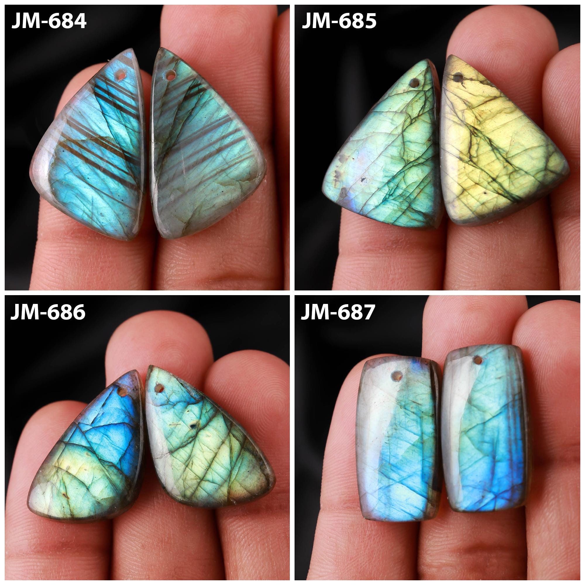 -Labradorite fancy shape drilled cabochon matching pairs-this listing is for a set of two cabochons-stones are flat on the back-Labradorite is a natural stone, no treatment