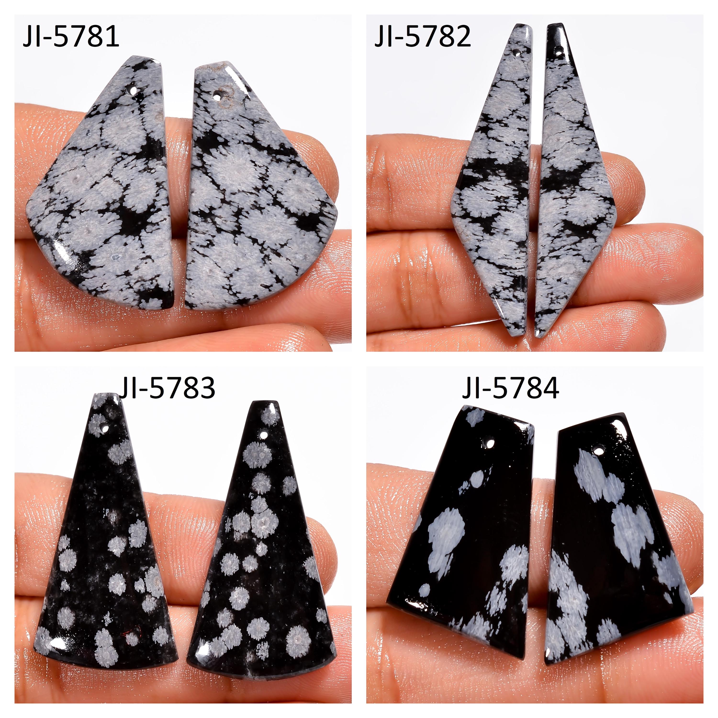 -Snowflake Obsidian fancy shape drilled cabochon matching pairs-this listing is for a set of two cabochons-stones are flat on the back-Snowflake Obsidian is a natural stone, no treatment