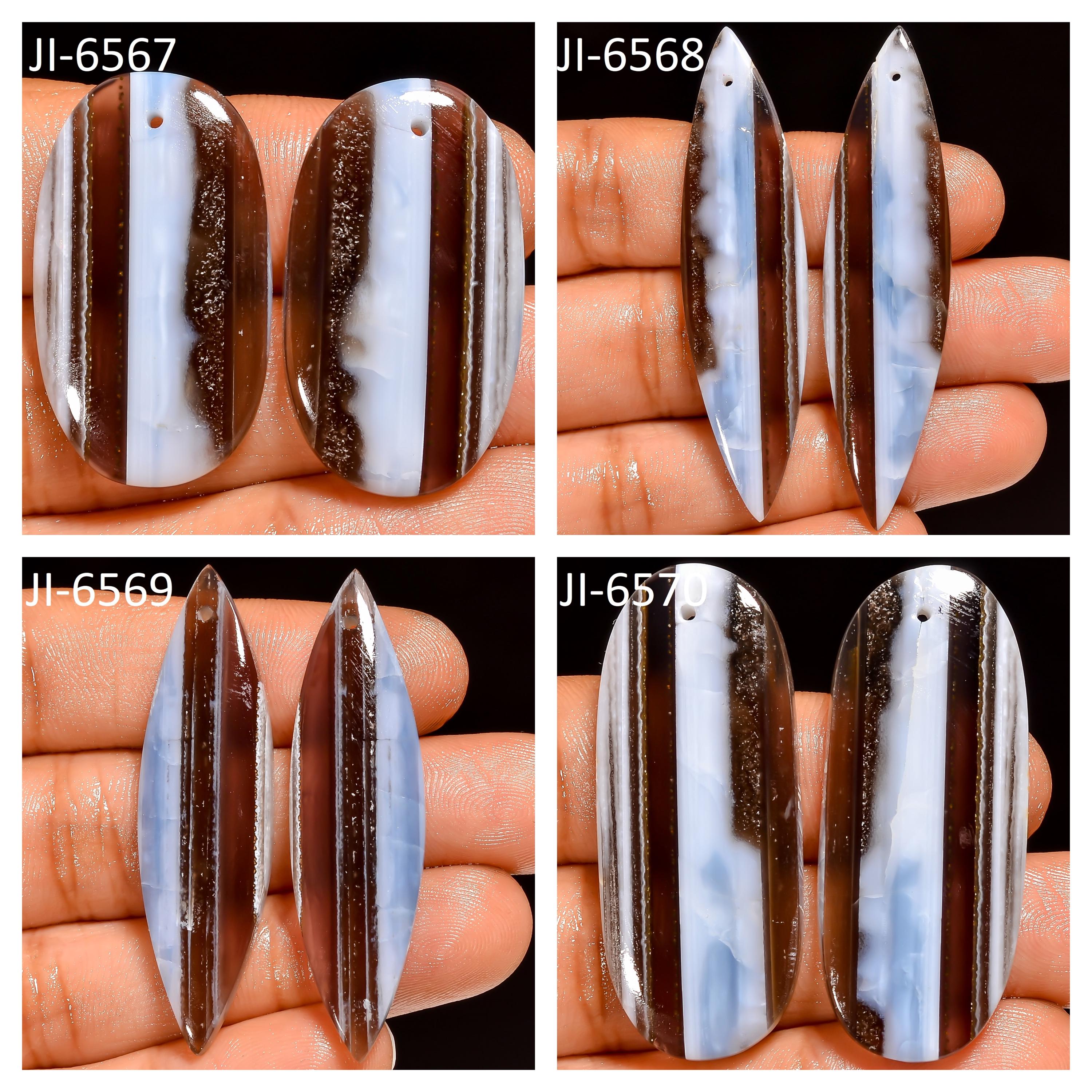 -Owyhee Blue Opal fancy shape drilled cabochon matching pairs-this listing is for a set of two cabochons-stones are flat on the back-Owyhee Blue Opal is a natural stone, no treatment