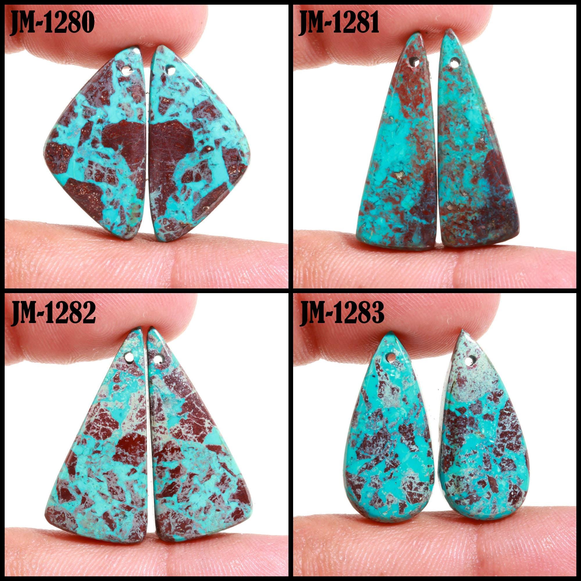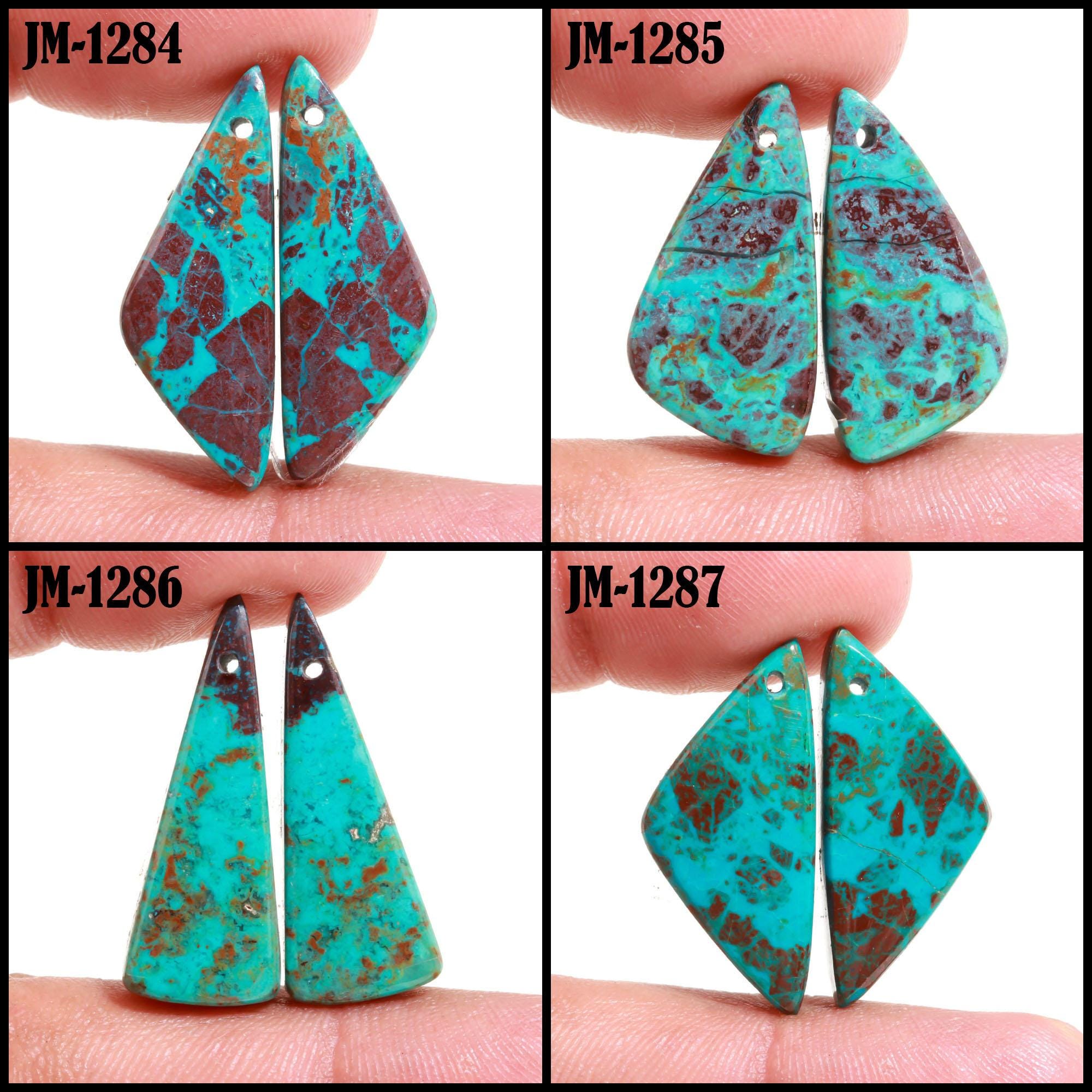 -Chrysocolla fancy shape drilled cabochon matching pairs-this listing is for a set of two cabochons-stones are flat on the back-Chrysocolla is a natural stone, no treatment