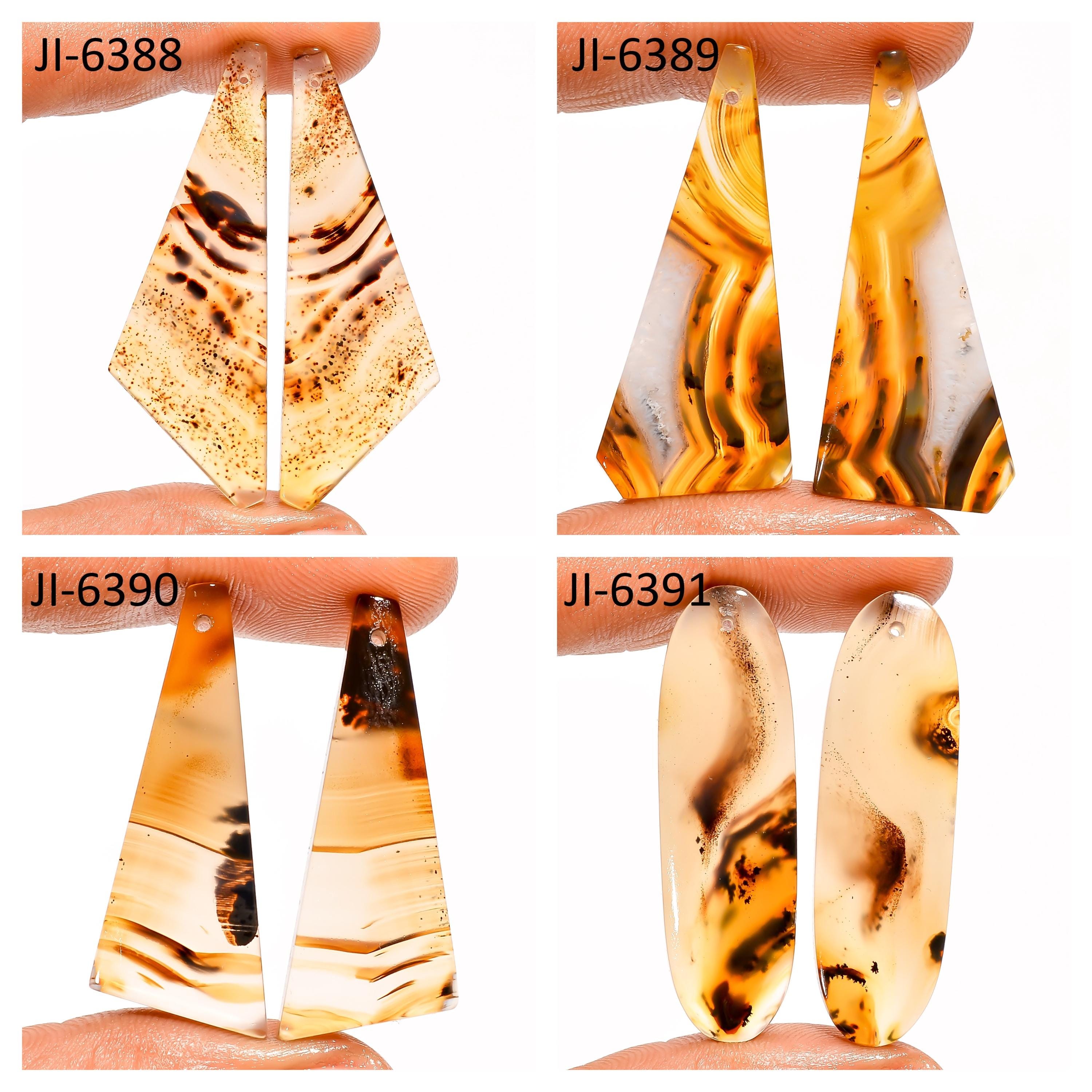 -Montana Agate fancy shape drilled cabochon matching pairs-this listing is for a set of two cabochons-stones are flat on the back-Montana Agate is a natural stone, no treatment