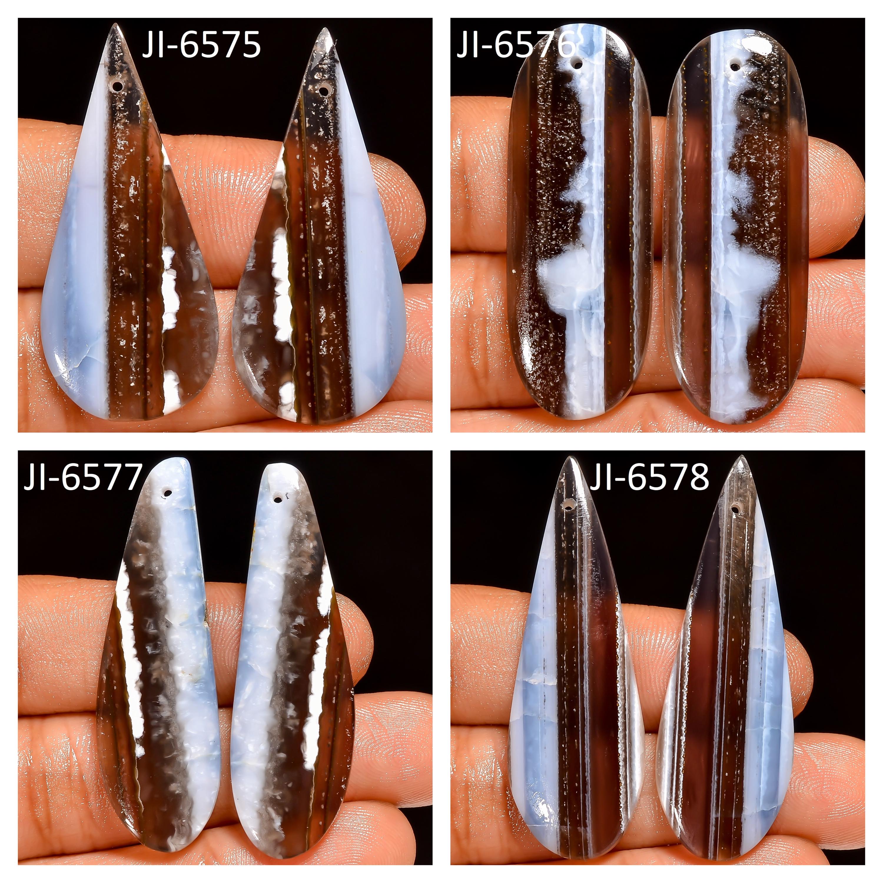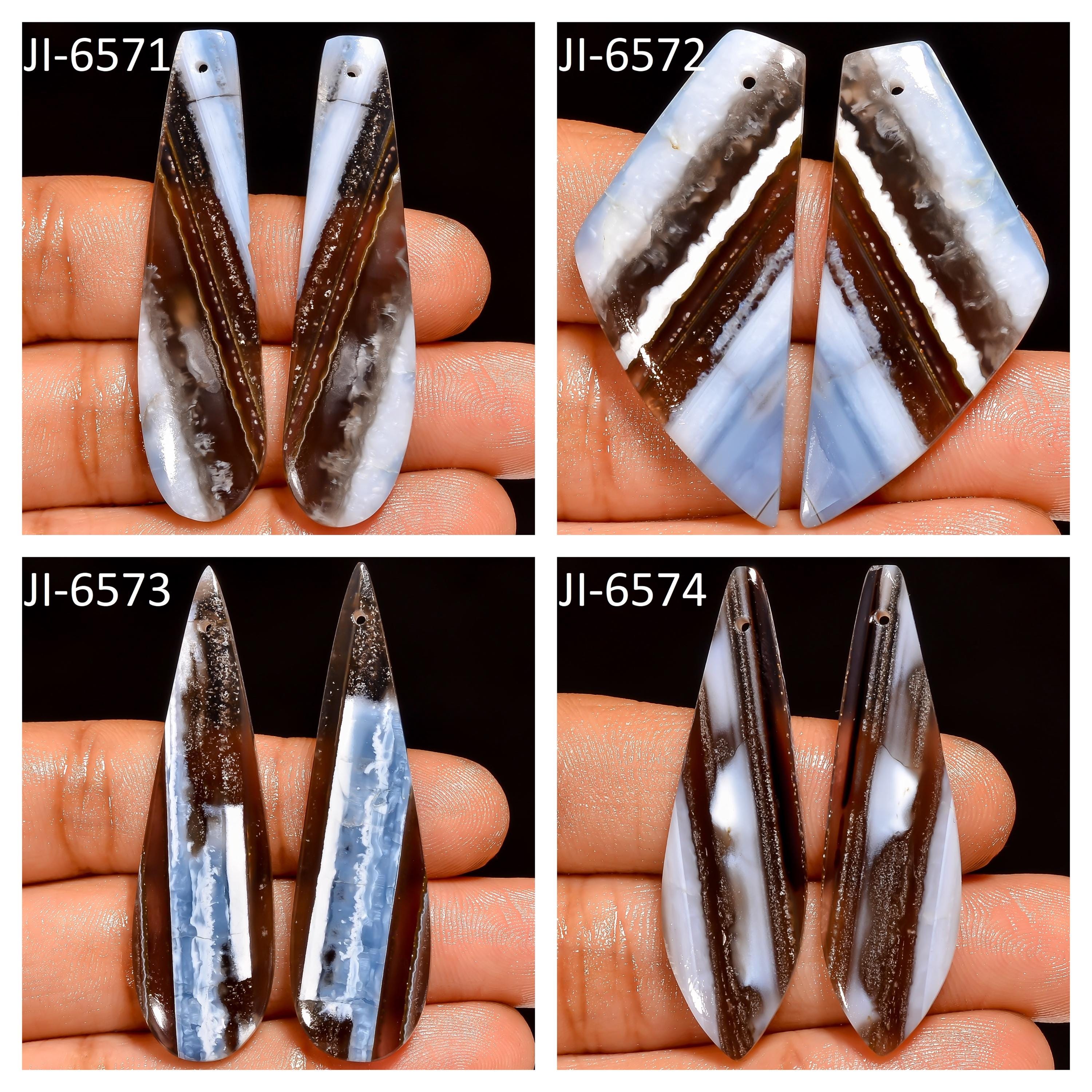 -Owyhee Blue Opal fancy shape drilled cabochon matching pairs-this listing is for a set of two cabochons-stones are flat on the back-Owyhee Blue Opal is a natural stone, no treatment