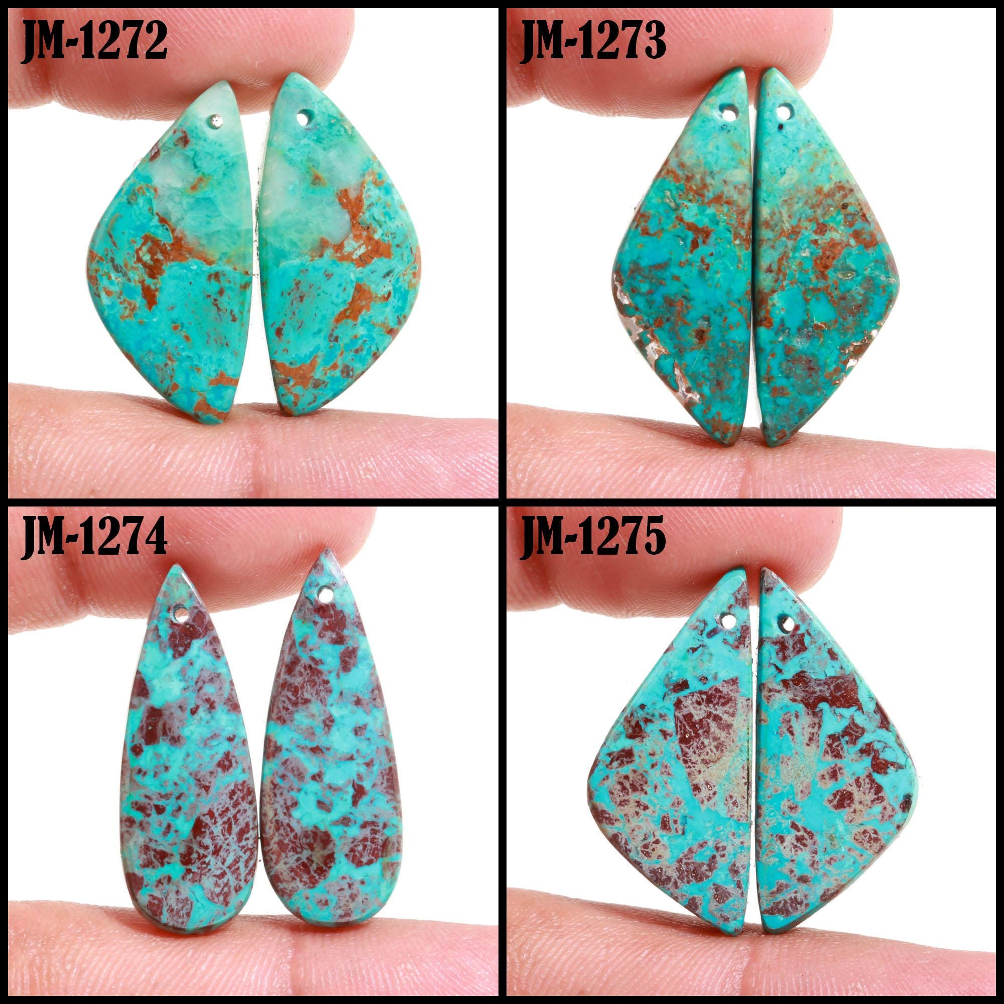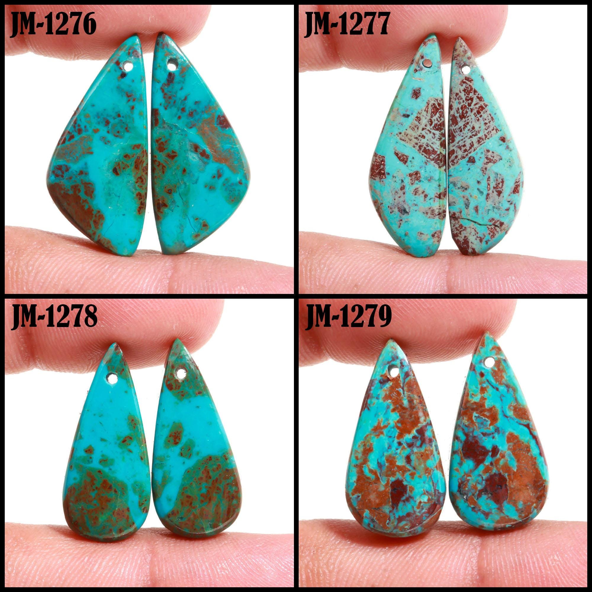 -Chrysocolla fancy shape drilled cabochon matching pairs-this listing is for a set of two cabochons-stones are flat on the back-Chrysocolla is a natural stone, no treatment