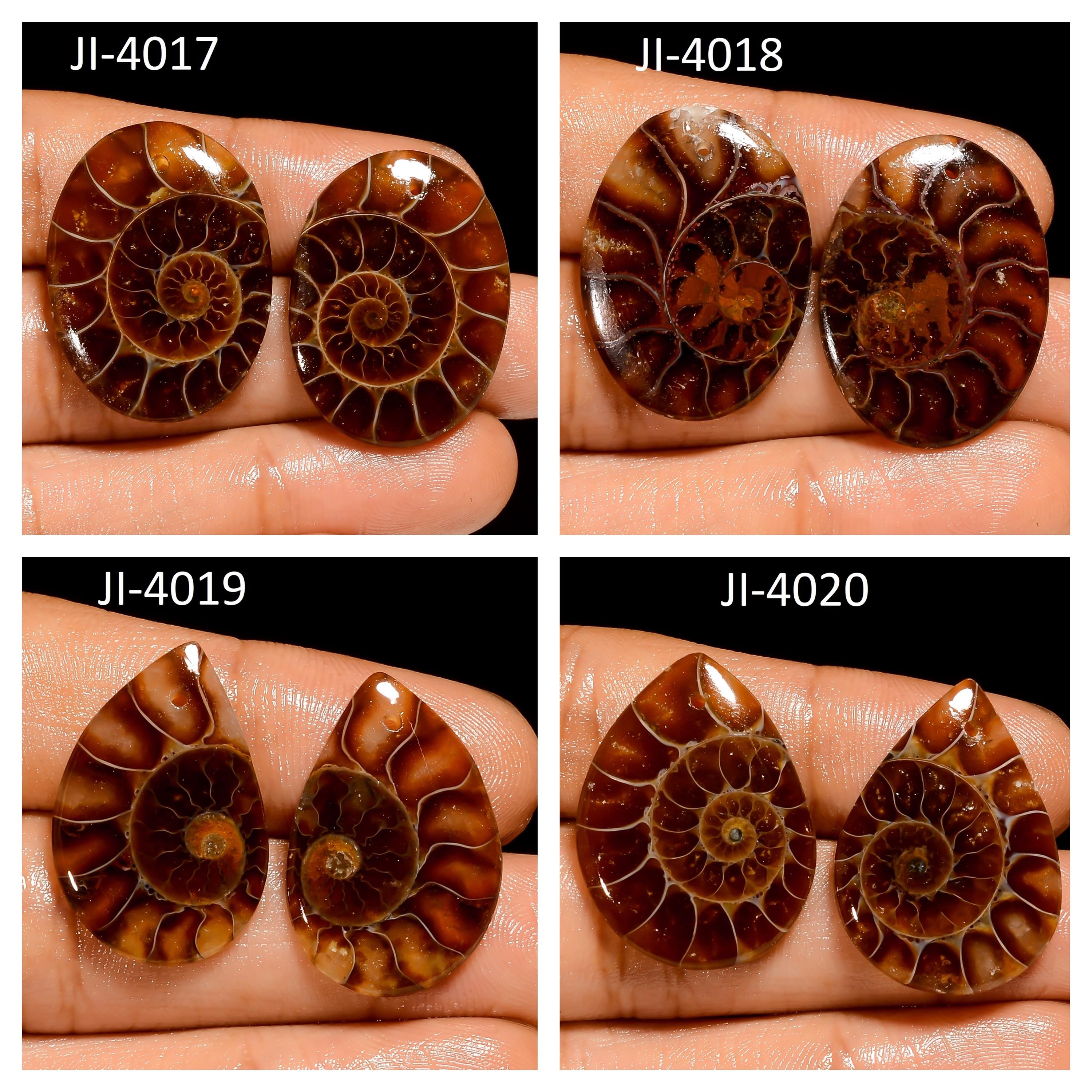 -Ammonite fancy shape drilled cabochon matching pairs-this listing is for a set of two cabochons-stones are flat on the back-Ammonite is a natural stone, no treatment