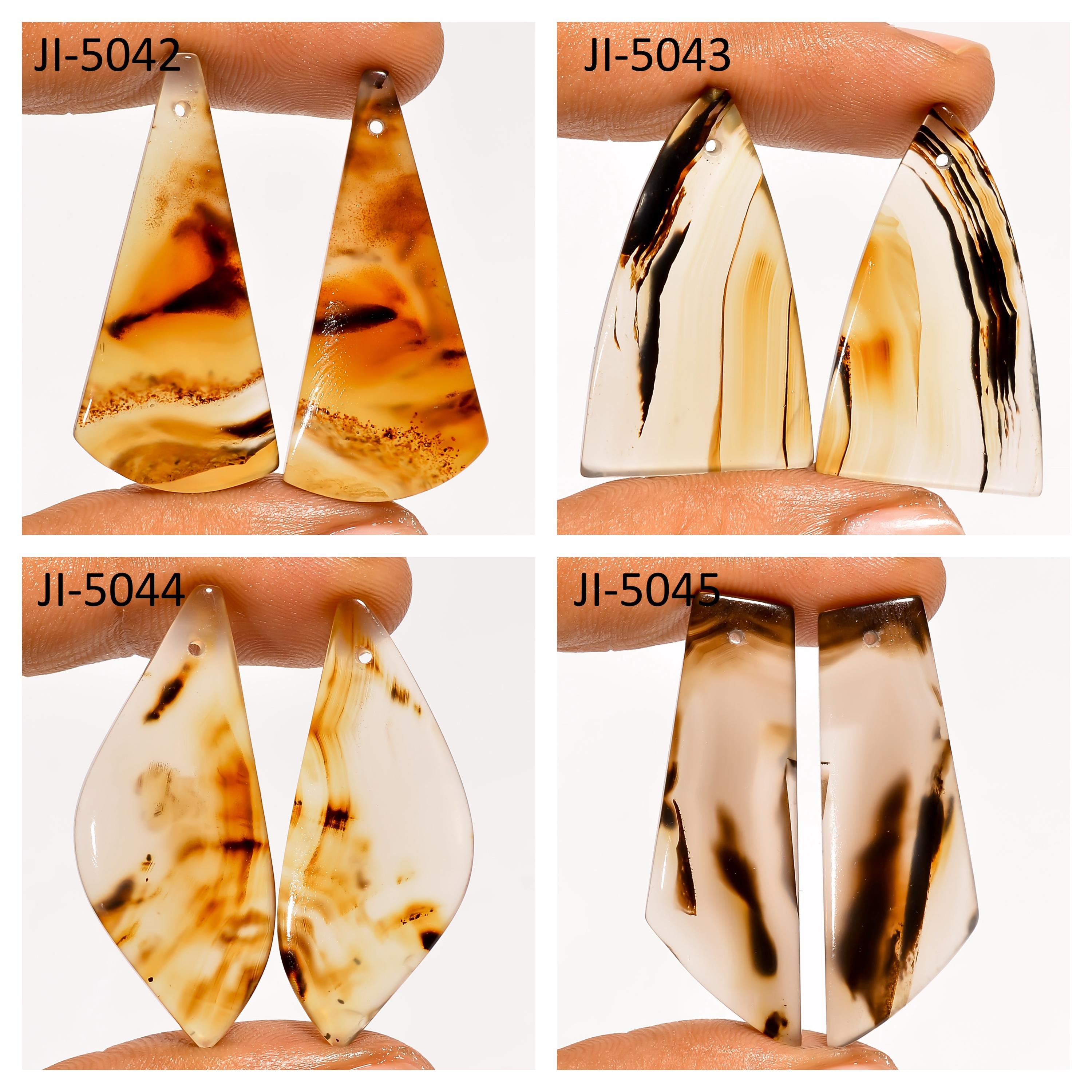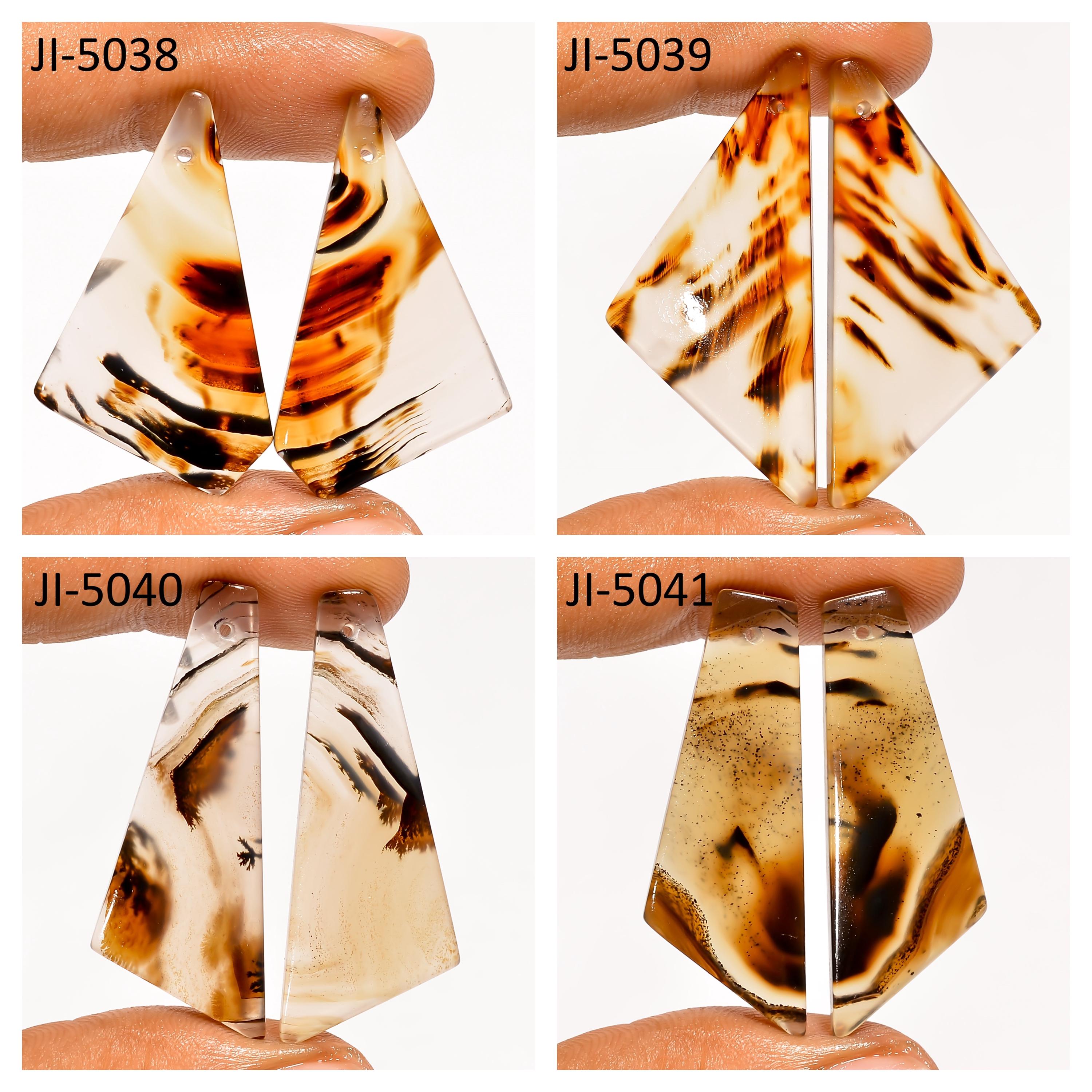 -Montana Agate fancy shape drilled cabochon matching pairs-this listing is for a set of two cabochons-stones are flat on the back-Montana Agate is a natural stone, no treatment