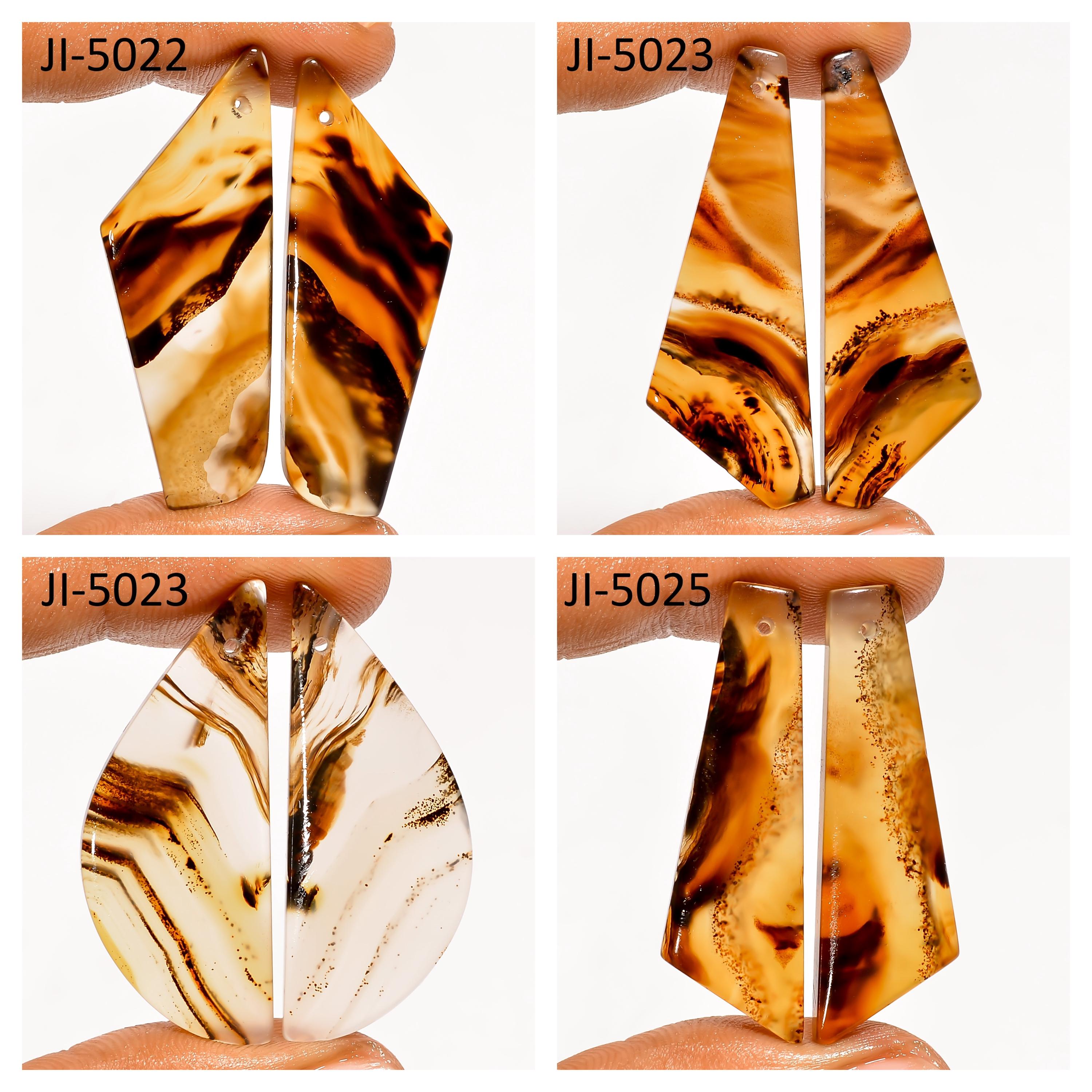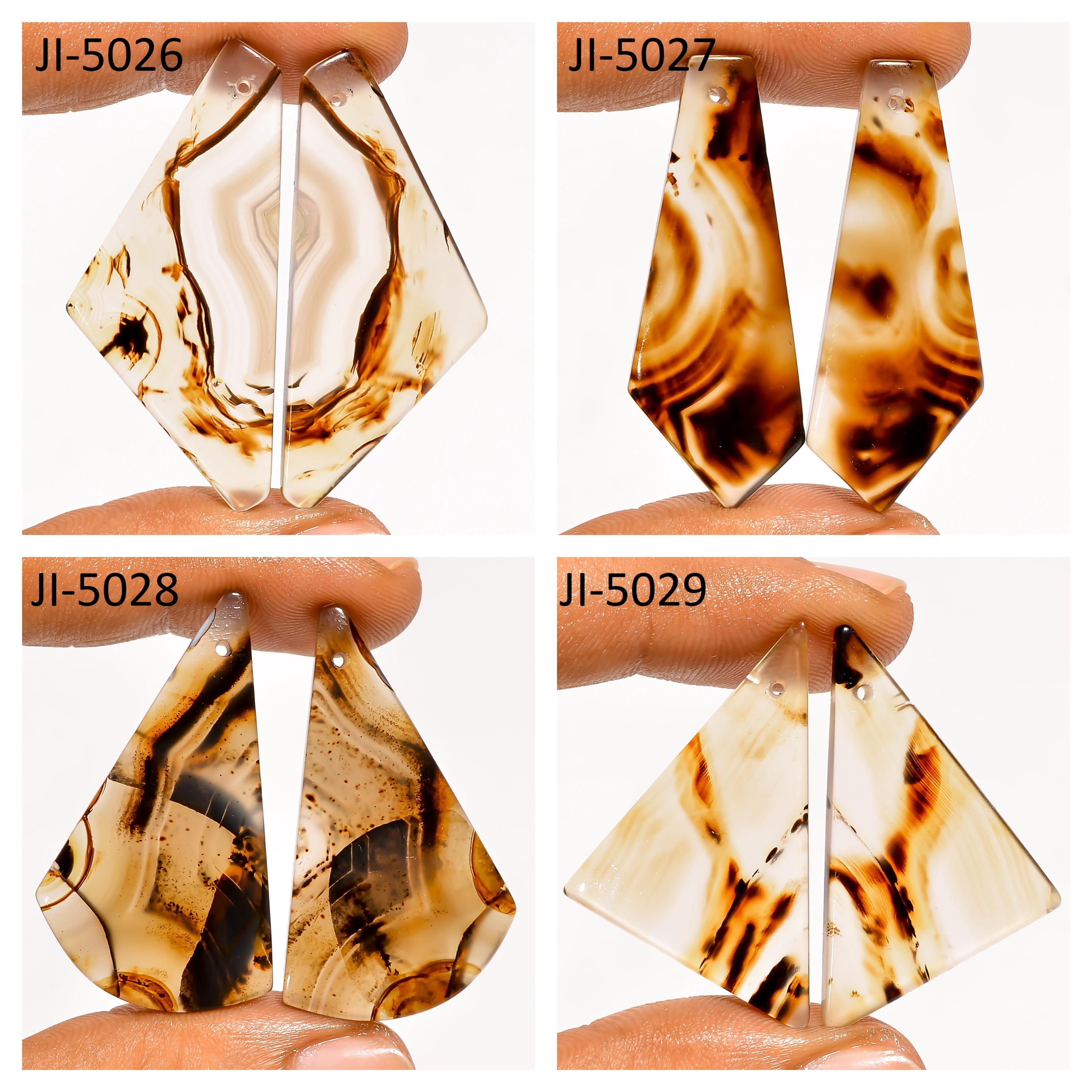-Montana Agate fancy shape drilled cabochon matching pairs-this listing is for a set of two cabochons-stones are flat on the back-Montana Agate is a natural stone, no treatment