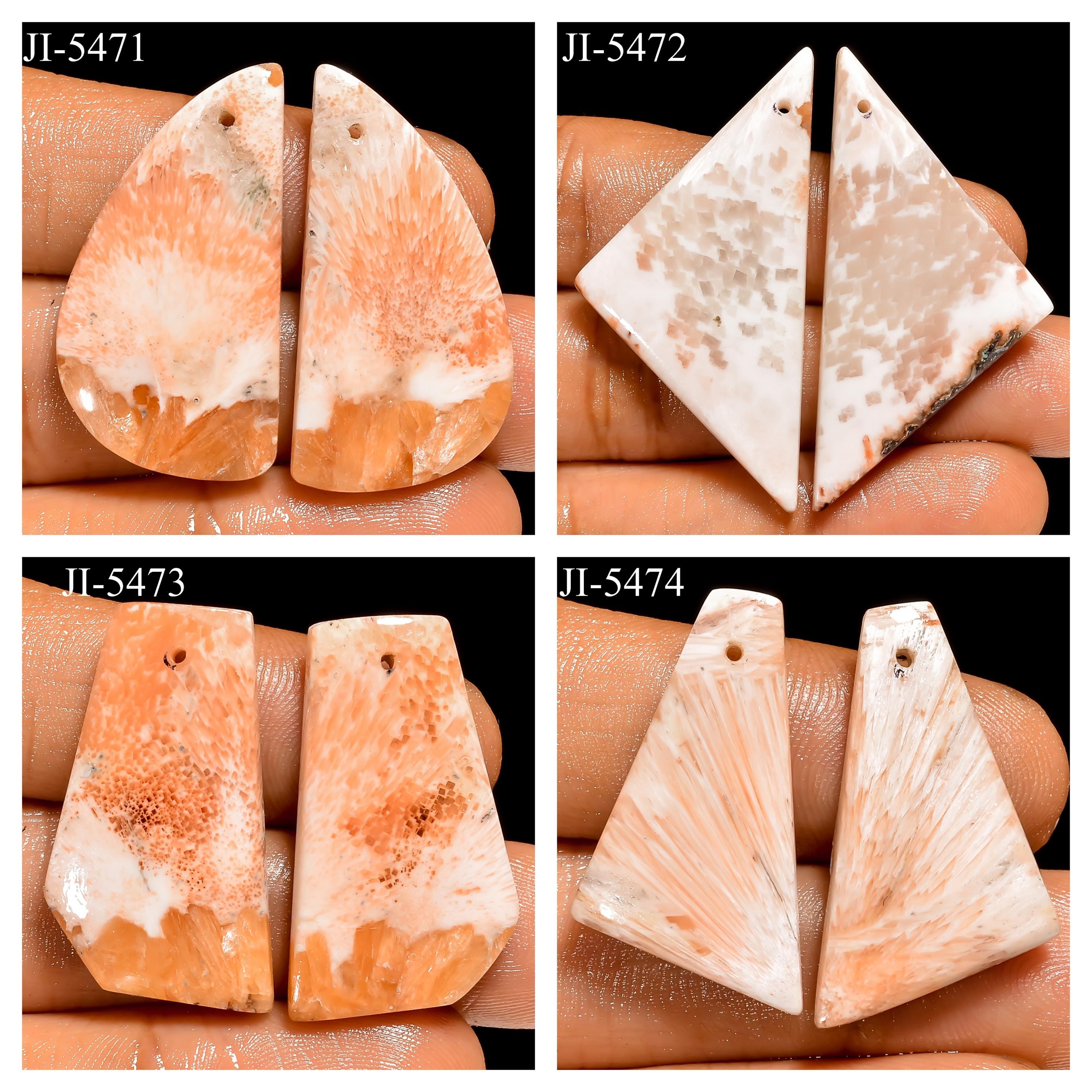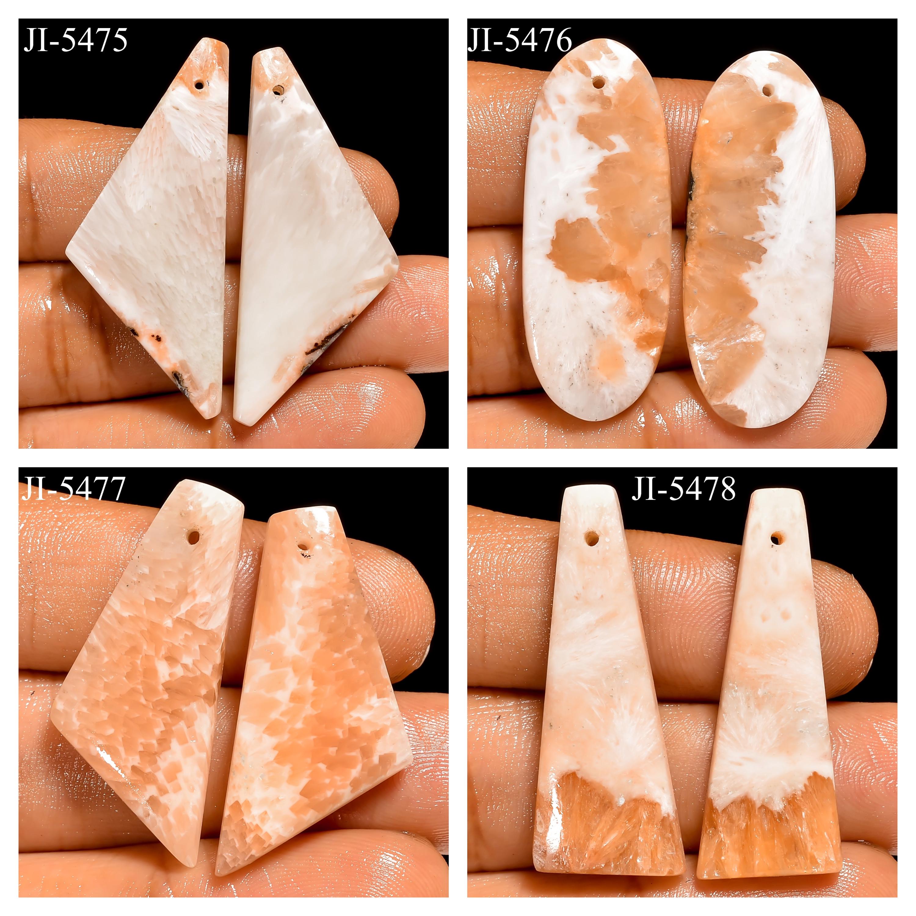 -Scolecite fancy shape drilled cabochon matching pairs-this listing is for a set of two cabochons-stones are flat on the back-Scolecite is a natural stone, no treatment