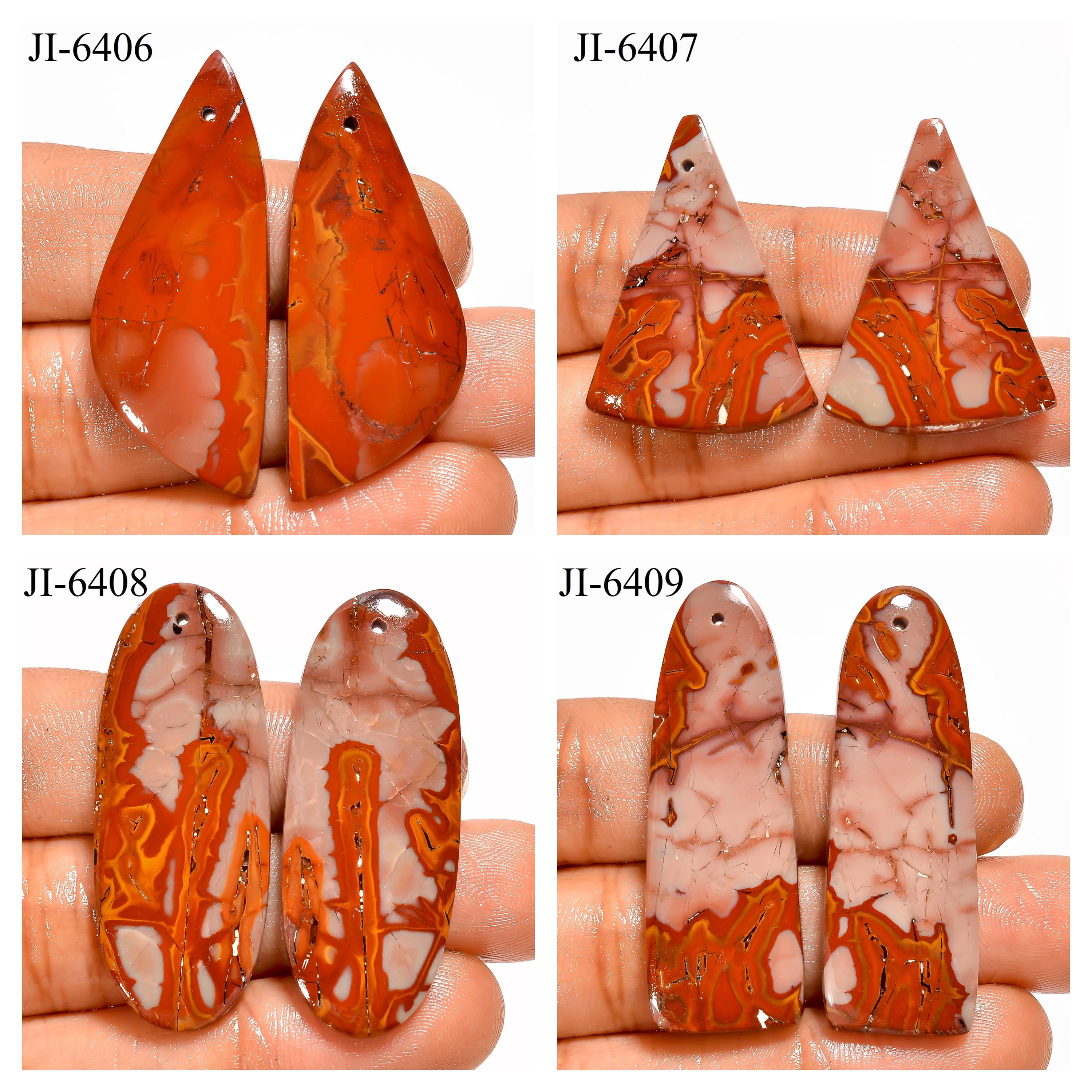 -Noreena Jasper fancy shape drilled cabochon matching pairs-this listing is for a set of two cabochons-stones are flat on the back-Noreena Jasper is a natural stone, no treatment