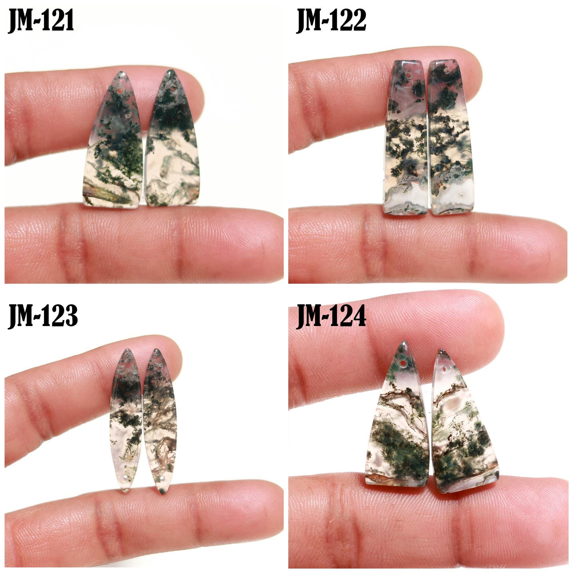 -Moss Agate fancy shape drilled cabochon matching pairs-this listing is for a set of two cabochons-stones are flat on the back-Moss Agate is a natural stone, no treatment