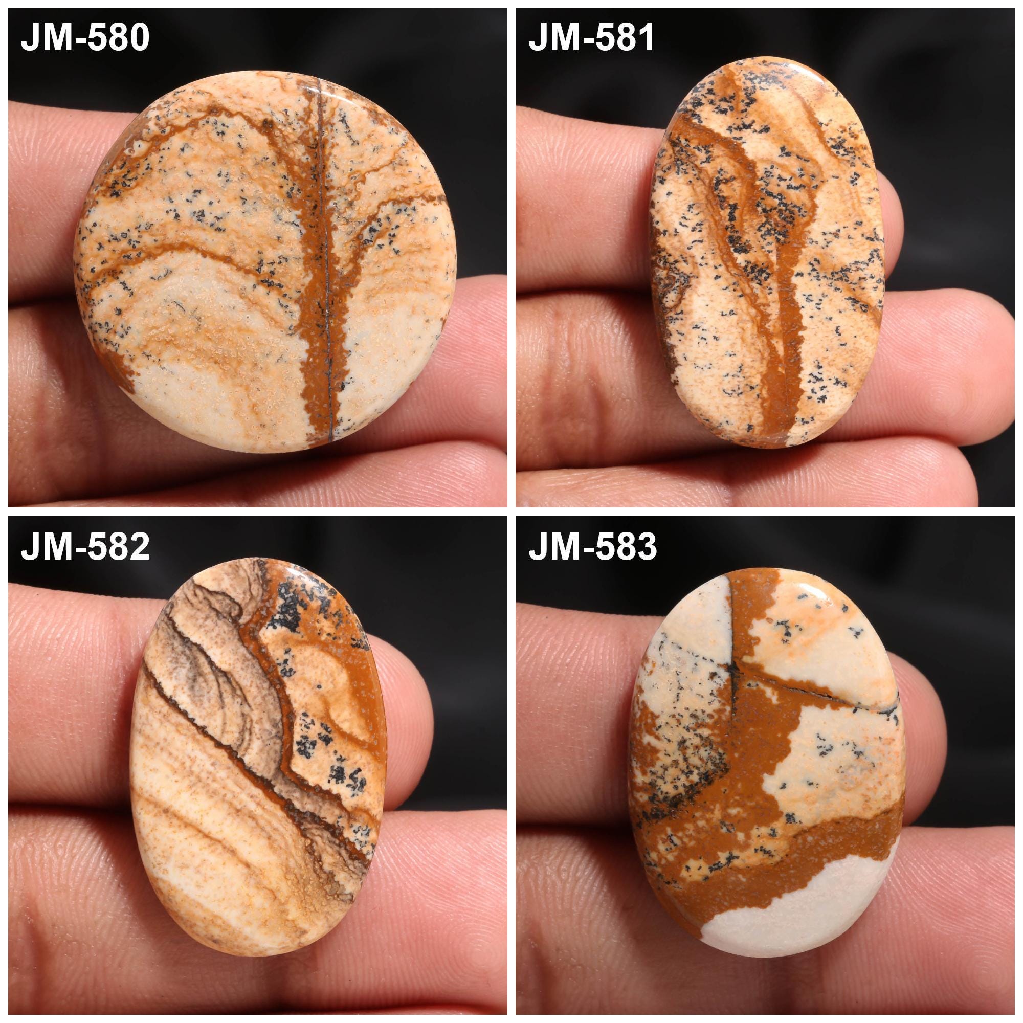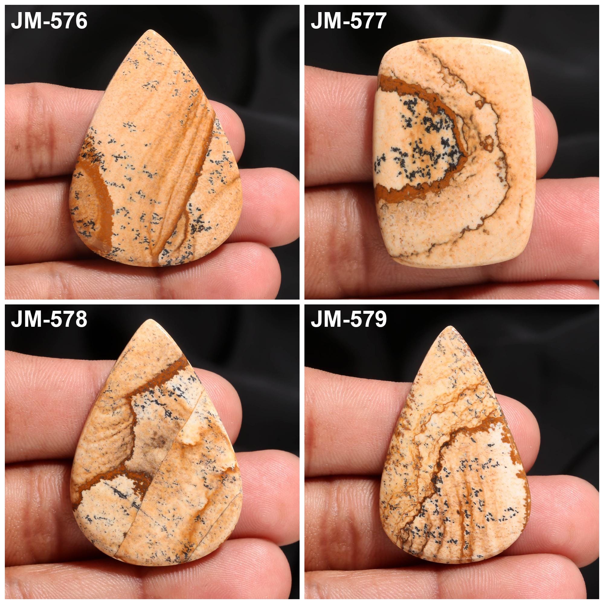 -Picture Jasper fancy shape un-drilled cabochon single pieces-this listing is for one cabochon-stones are flat on the back-Picture Jasper is a natural stone, no treatment-sorry we do not offer drilling service